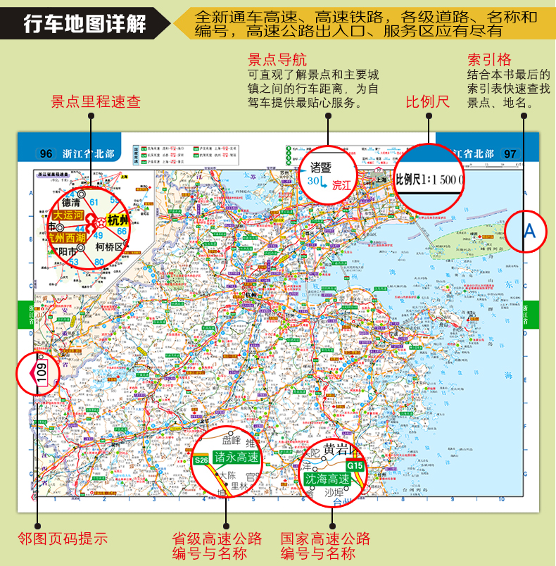 本图集是一本路网地图与旅游资讯完美结合的公路网出行旅游地图集。书中囊括了176条黄金旅游路线; 2100个长盛不衰或新近兴起的旅游热点;200多幅精美图片和157幅专业地图,此外书中景区索引、书后景点和地名索引、地图中的邻图页码指示……都为您查阅地图、查找景点提供了极大的方便。