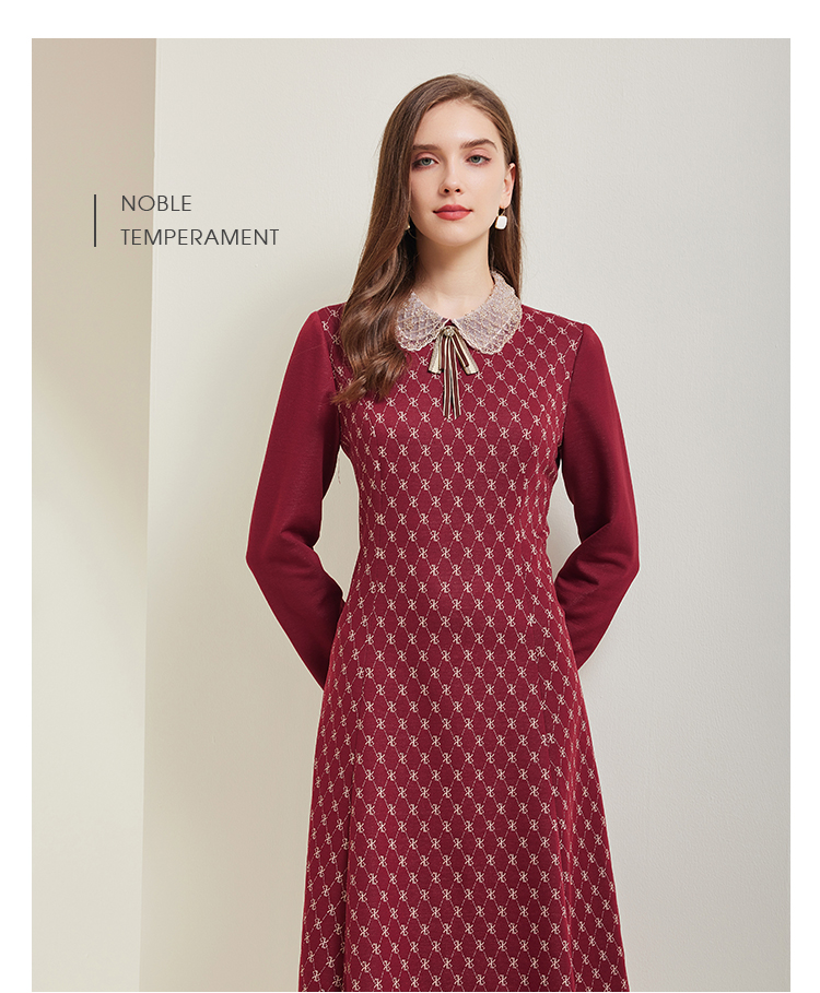 NG818斯尔丽瑟俪2023秋季新款娃娃领减龄高腰节衣裙