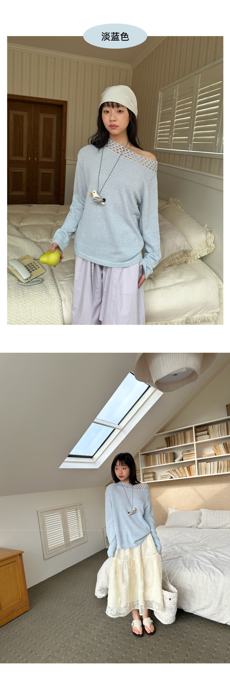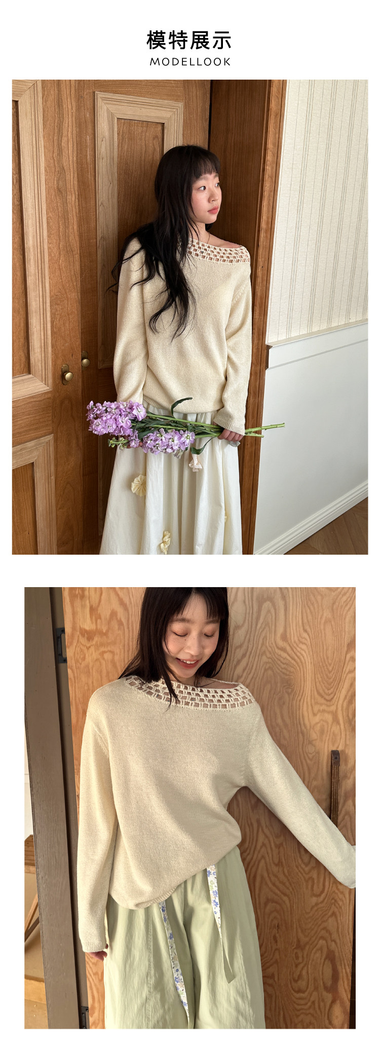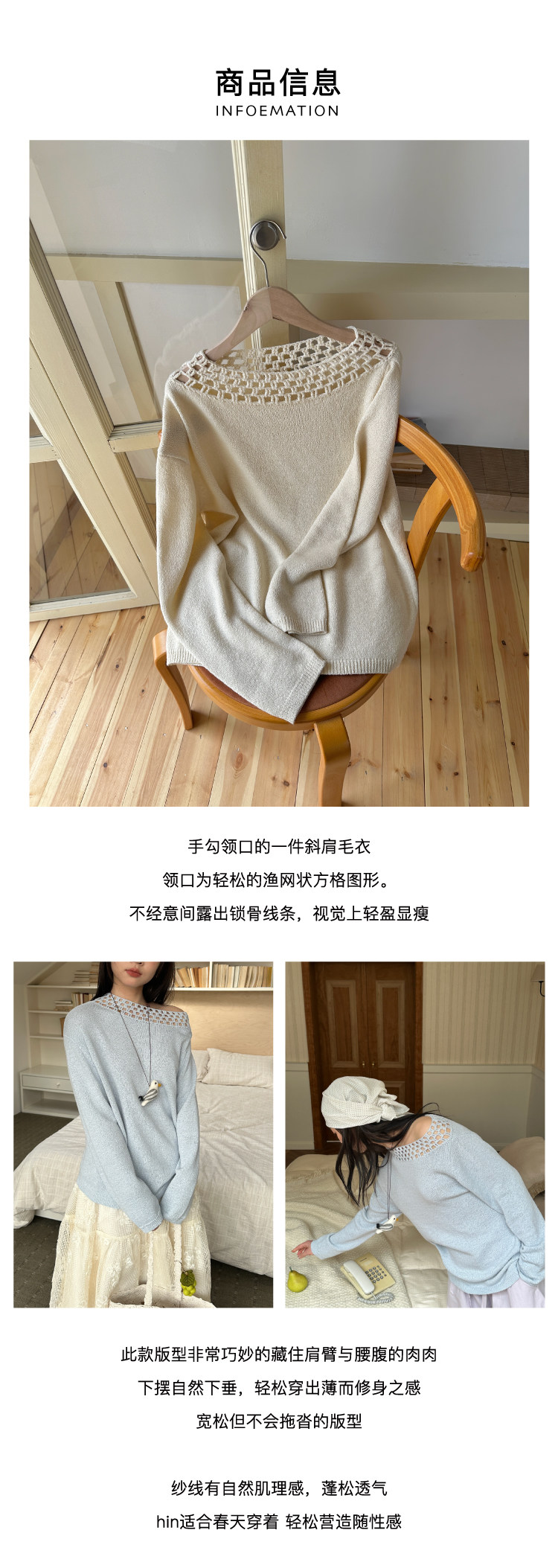 nothe Case布然/NC261814/「海风砂糖」手钩斜肩一字领毛衣