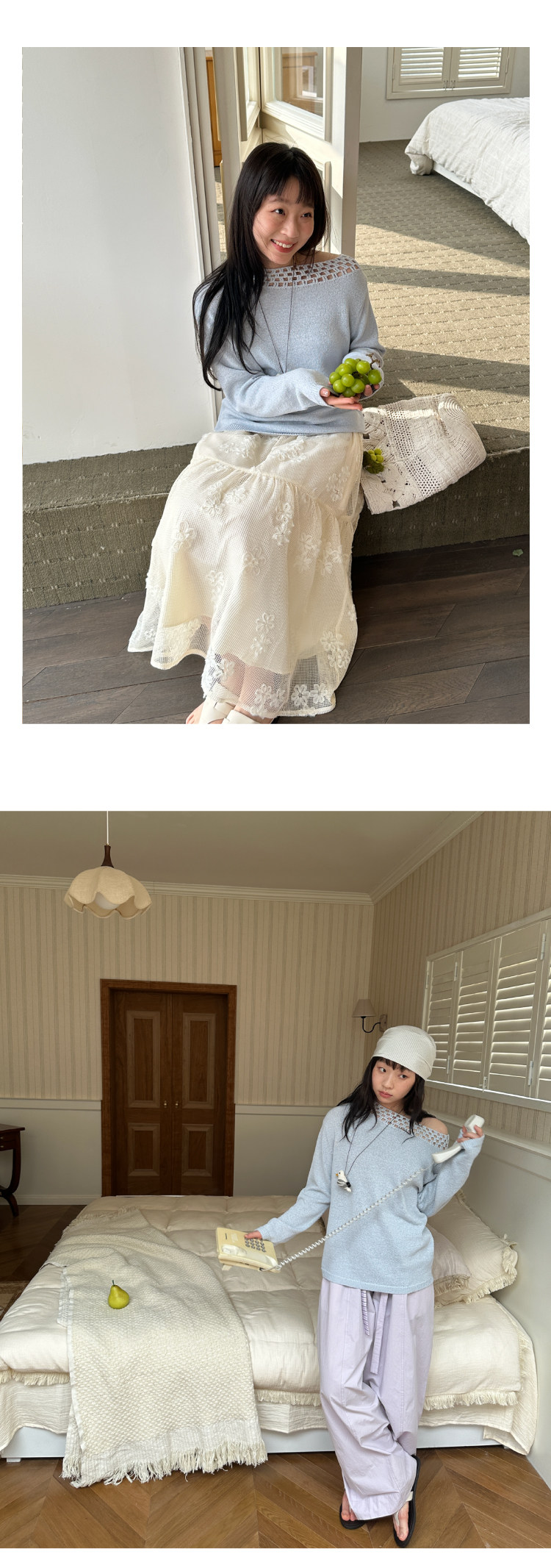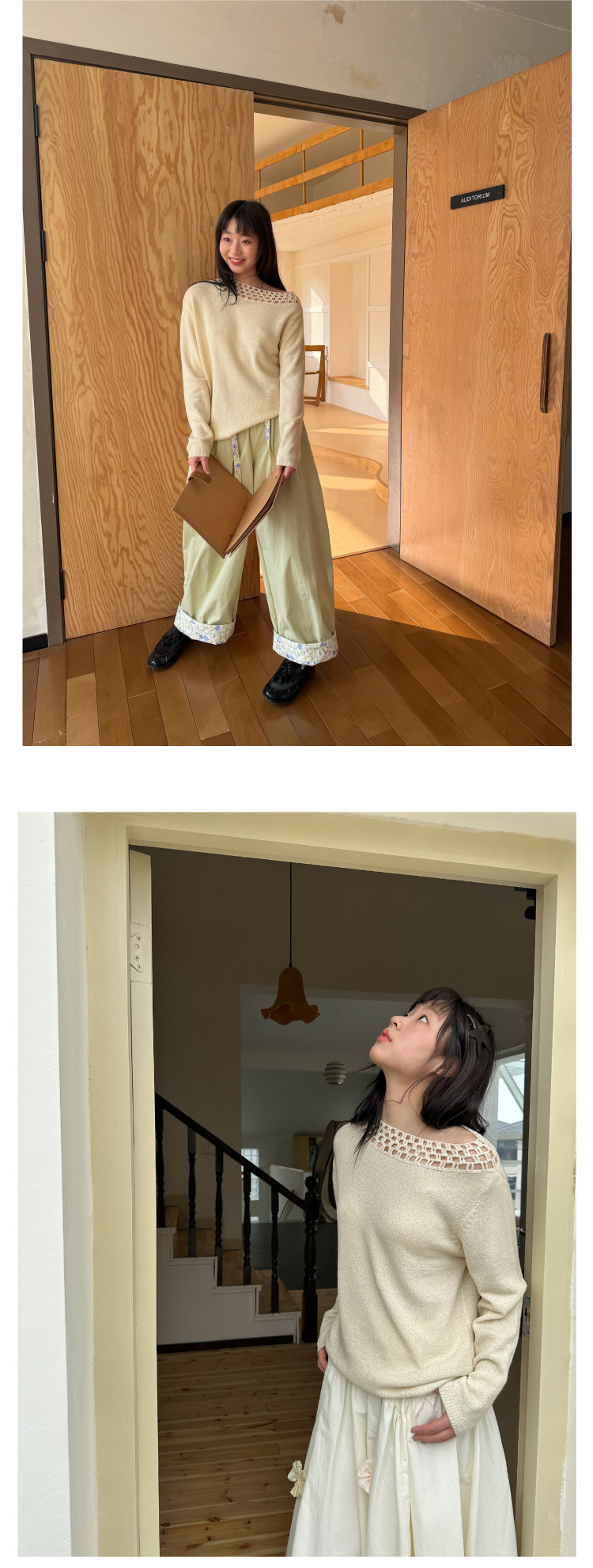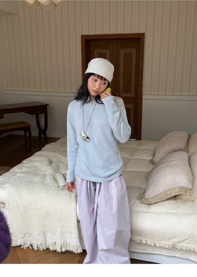 nothe Case布然/NC261814/「海风砂糖」手钩斜肩一字领毛衣