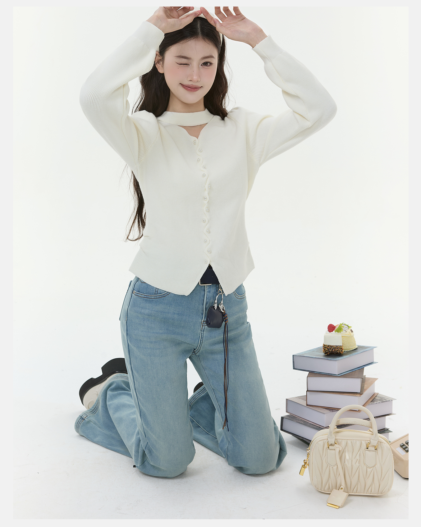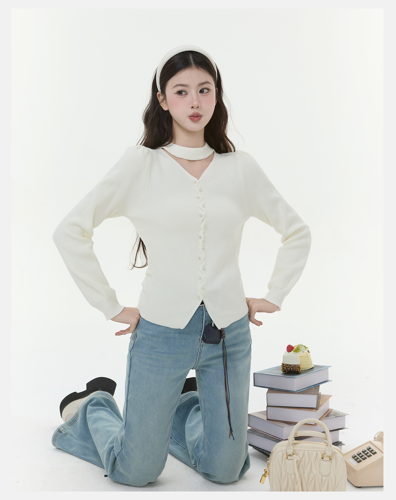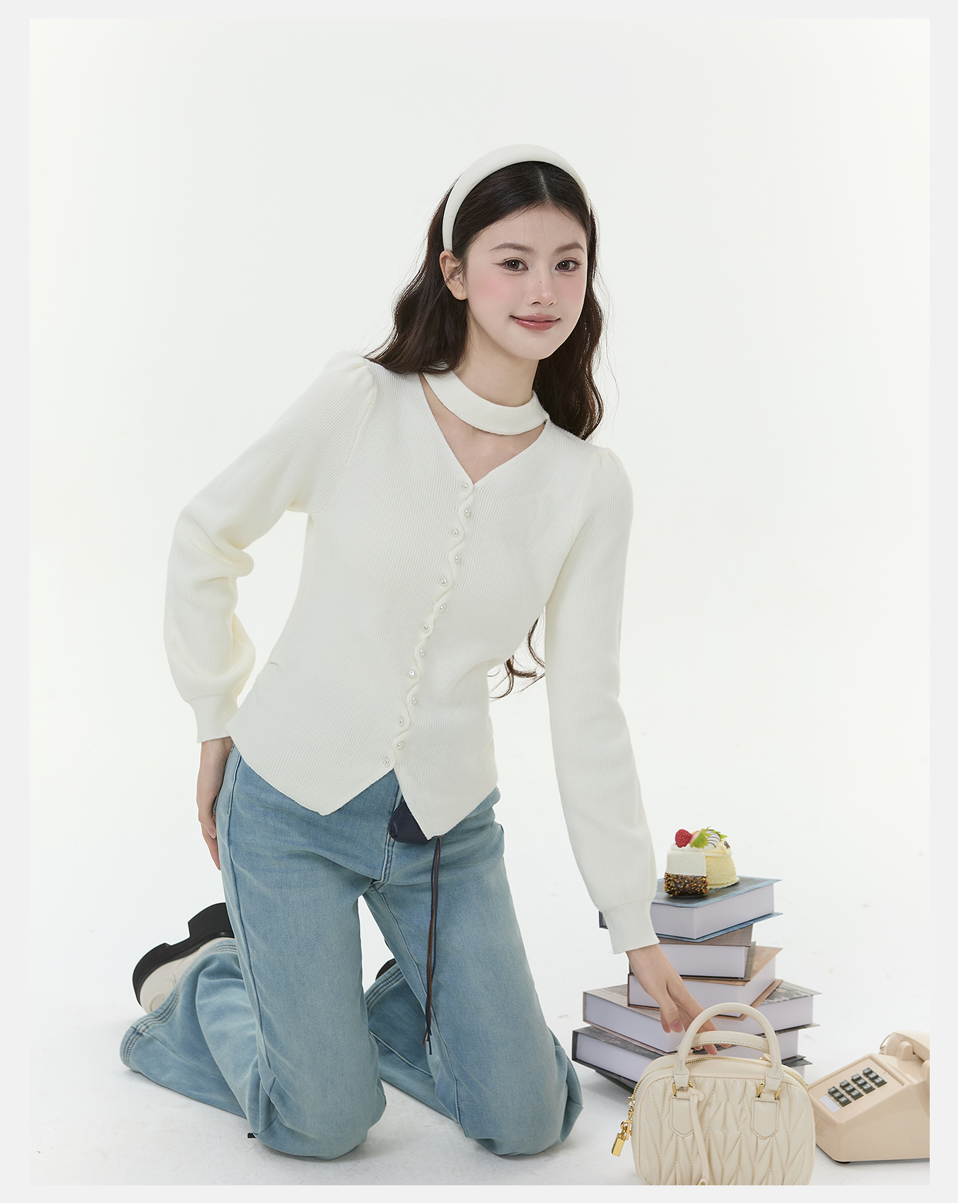 P&X设计师女装2025冬季打底修身毛针织衫短款毛衣825418187 杏色