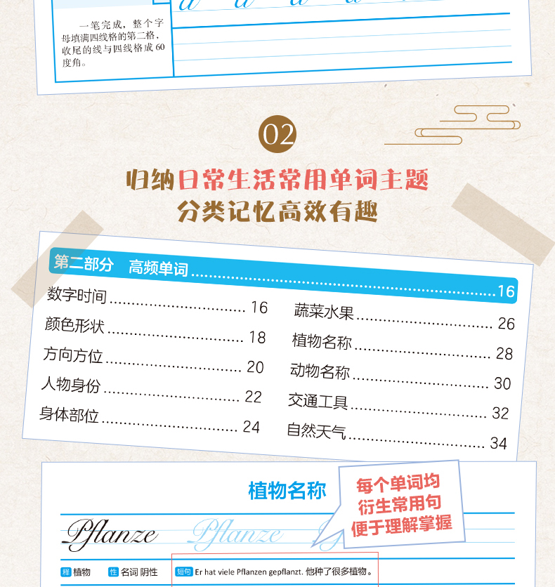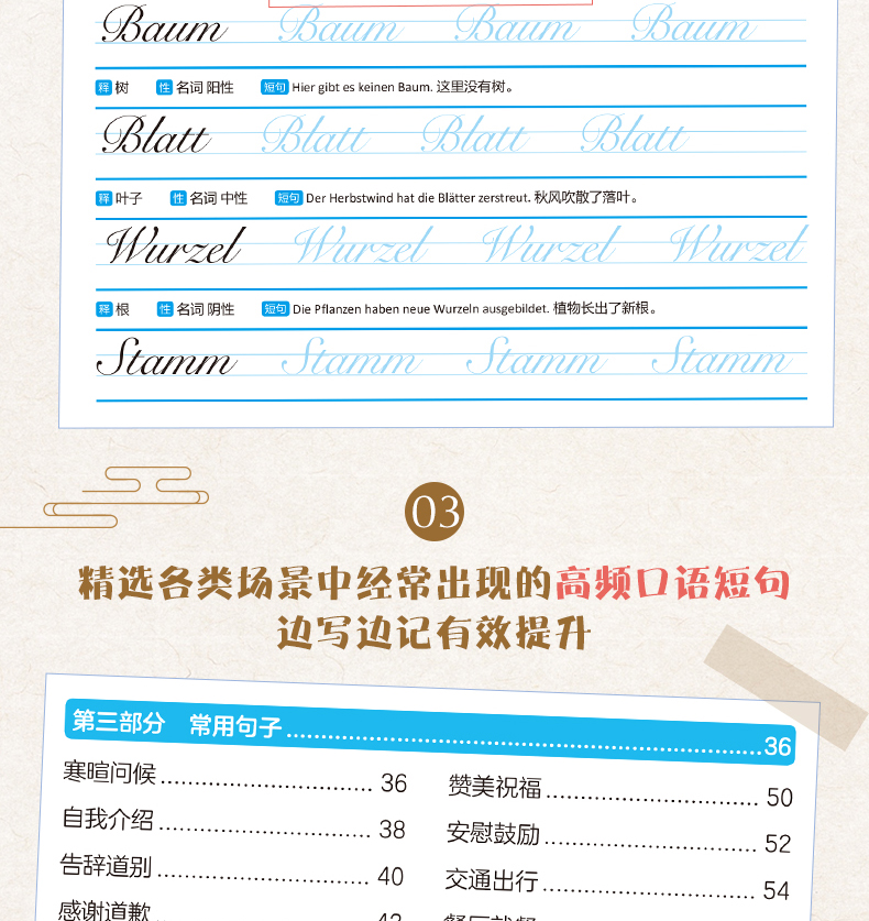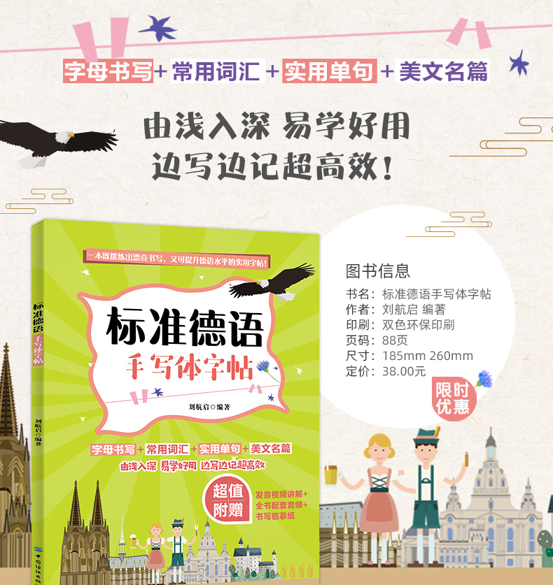 【附音频讲解自学】 标准德语手写体字帖 德语自学书籍 德语实用字帖书籍 德语常用词汇单句字母书写技巧方法书籍 书写临摹技法