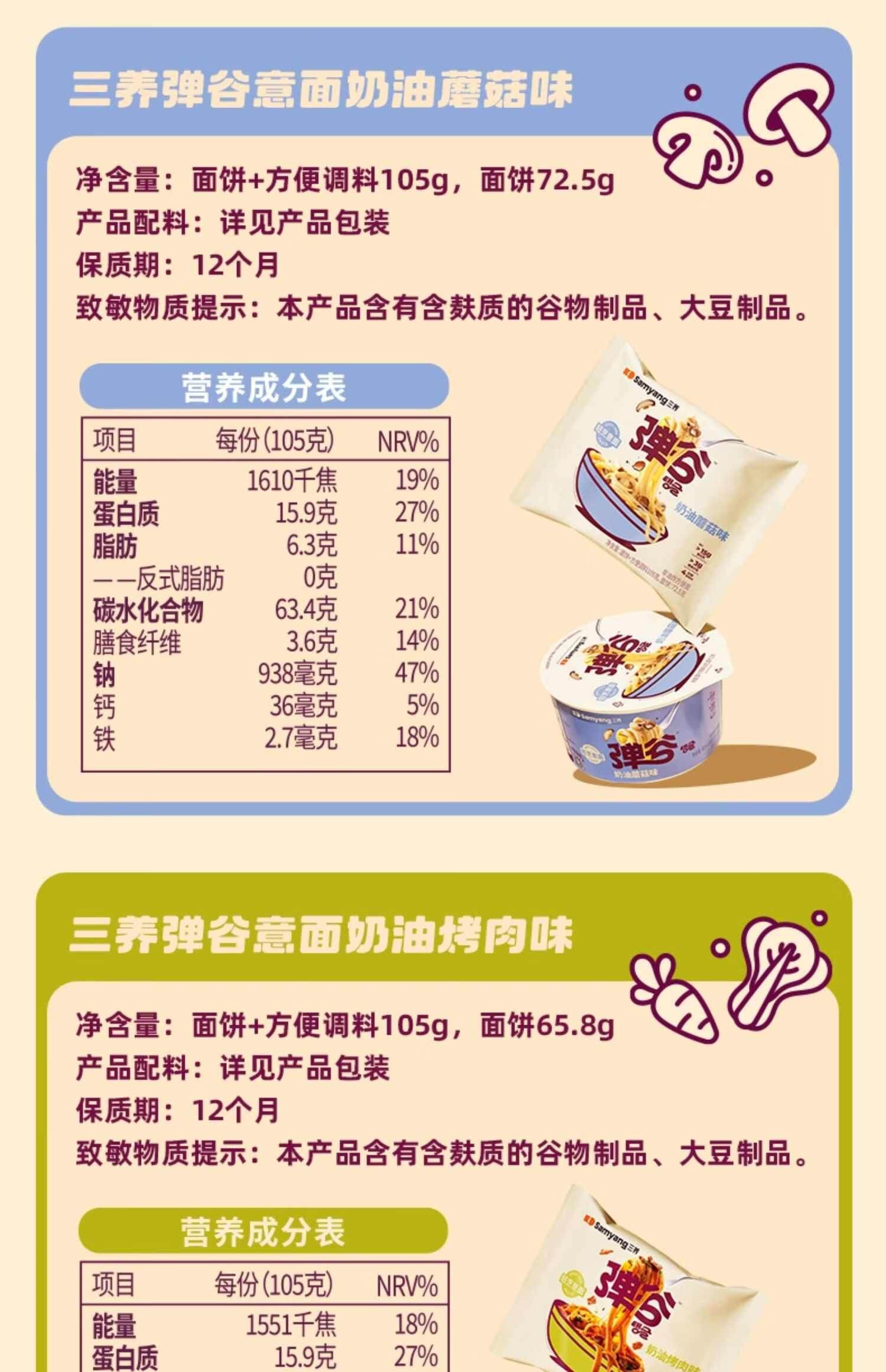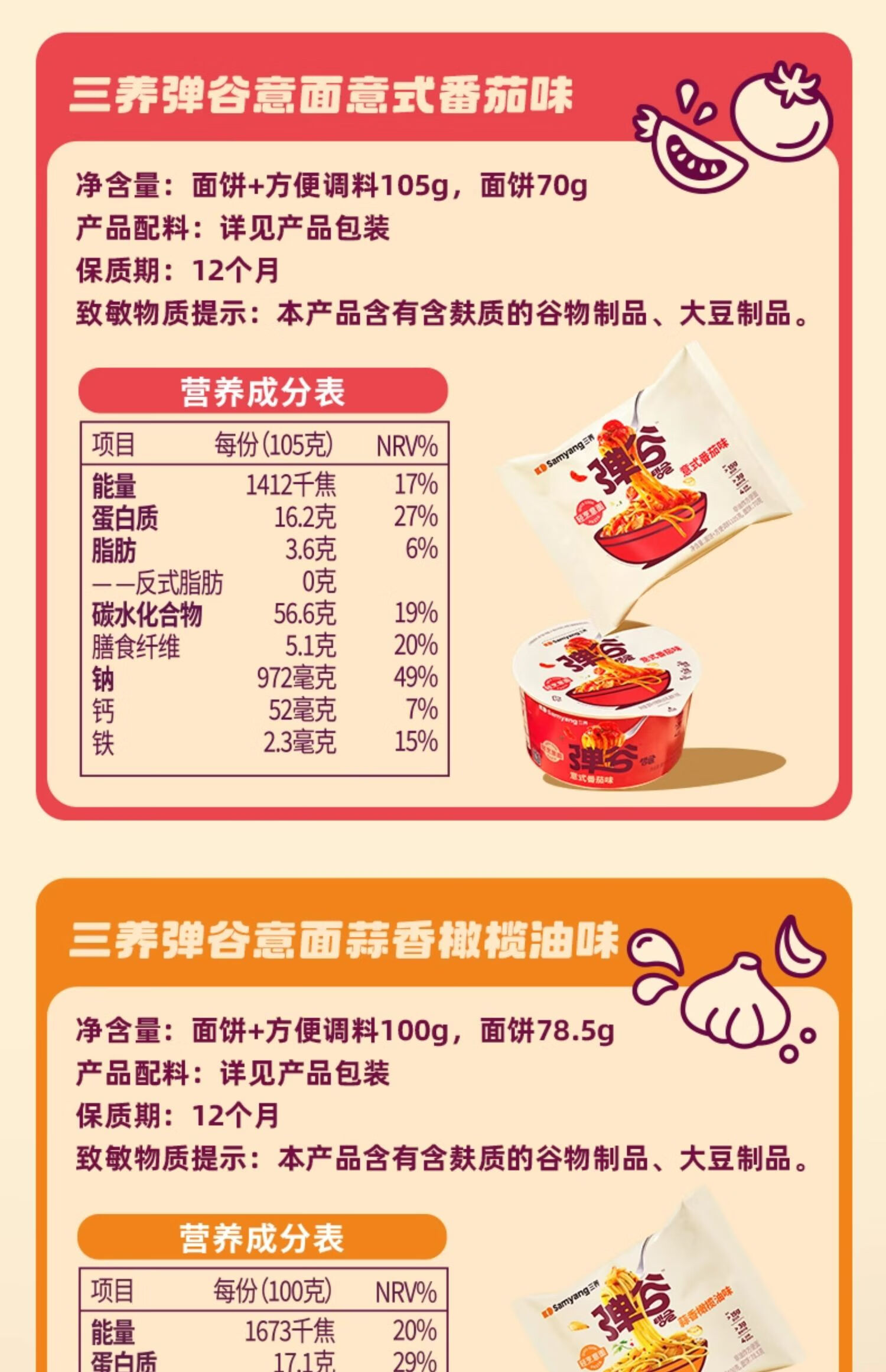 三养弹谷意面105g/份