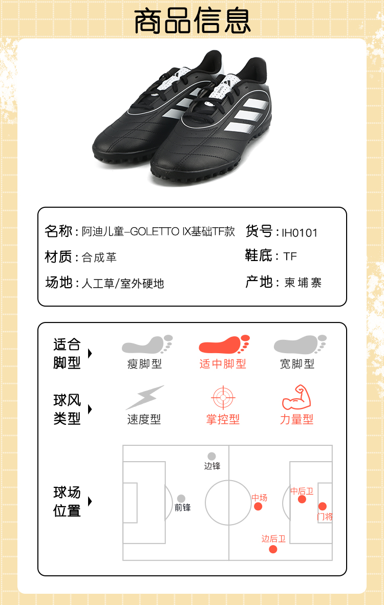 小李子阿迪达斯儿童足球鞋GOLETTO TF碎钉足球训练鞋男女孩IH0101