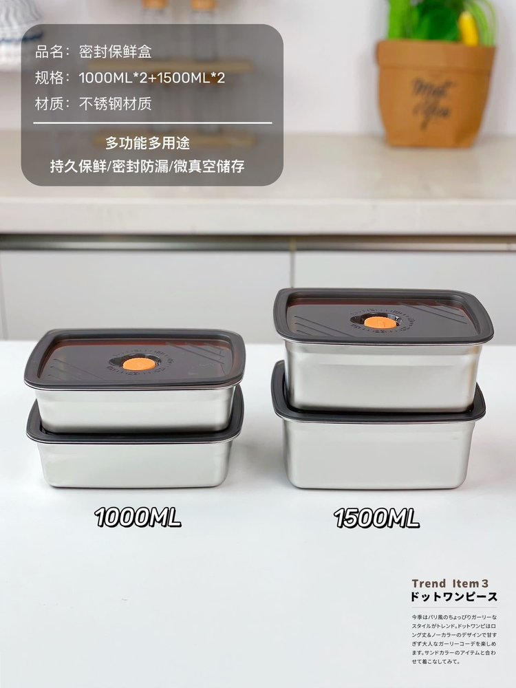 材质:316食品级不锈钢,盖子PP材质规格:1000ml*2+1500ml*2尺寸:1000ml为19*13.5*5.5cm/1500ml为19*13.5*7.5cm含盖重量:1000ml约为145克/个,1500ml约为165克/个颜色:咖色盖子,不锈钢色盒子快递:福建发申通/圆通【发货地】:福建【快递公司】:申通/圆通【加运费地区】:内蒙,青海,宁夏,甘肃+8元/单,北京上海+1【不发货地区】新疆西藏不发 【售后标准】1. 不影响二次销售可7天无理由退换。非质量问题由买家承担来回运费2. 每个工作日下午1点提交之前的订单,一旦提交后,不支持退改。(包括拦截、修改地址、拒收等要求)。3. 因暴力快递造成的外包装瑕疵,不影响使用,不在售后范围内。4. 个人喜好问题,不在售后范围内。5. 快递发出后,不接受任何理由拒收!如快递/产品出现破损情况,需要先签收,同时拍下【实物图和快递面单】,快递单号需清晰可见,并在24小时内提交客服进行处理,过时不予处理。6. 批量处理订单不接受备注。如有特殊需求请联系团长确认是否可行。默认不接受备注,介意勿拍。7. 发货和上传运单号有24-48小时时差,没有运单/单号无物流,不代表没有发货,敬请谅解.