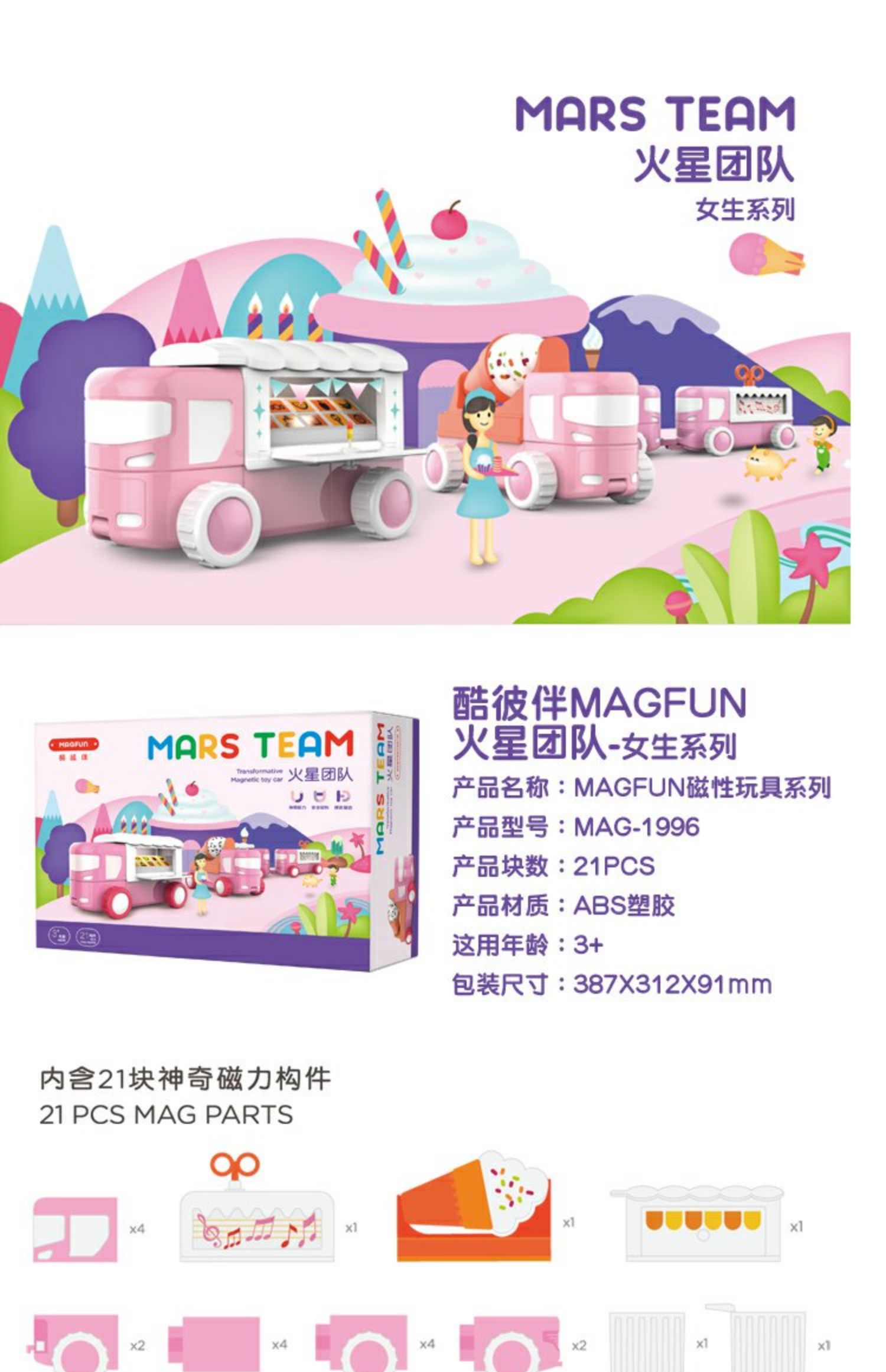 酷彼伴magfun火星团队系列(女生款)MAG-1996磁性玩具仿真模型