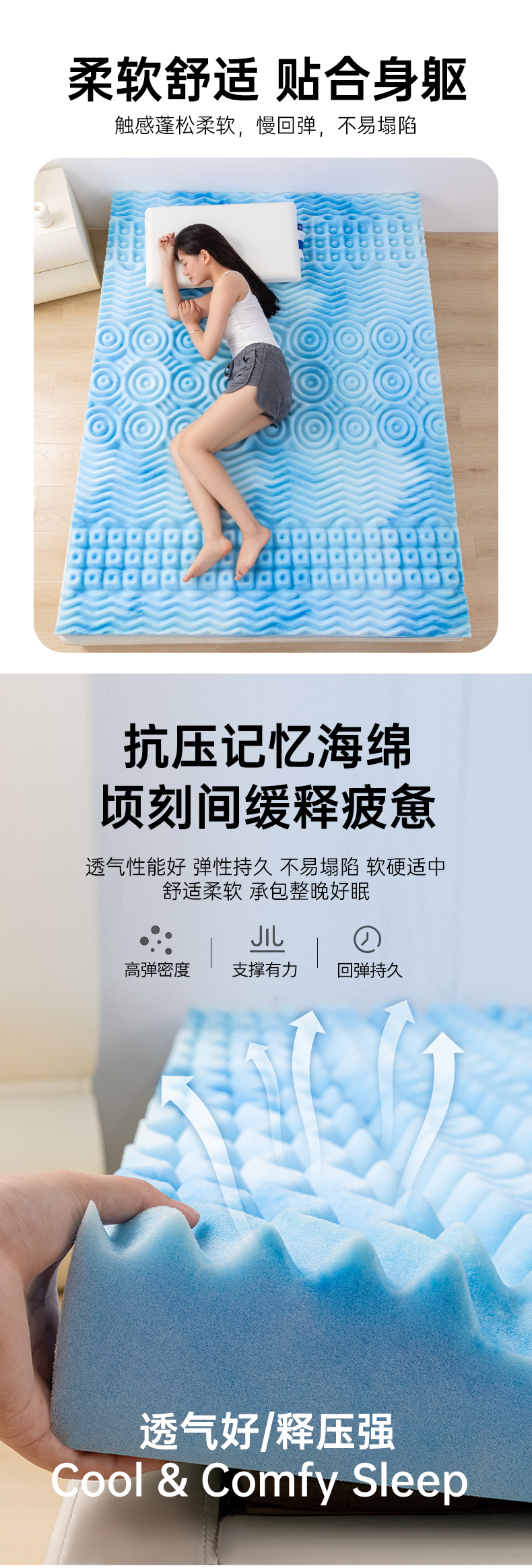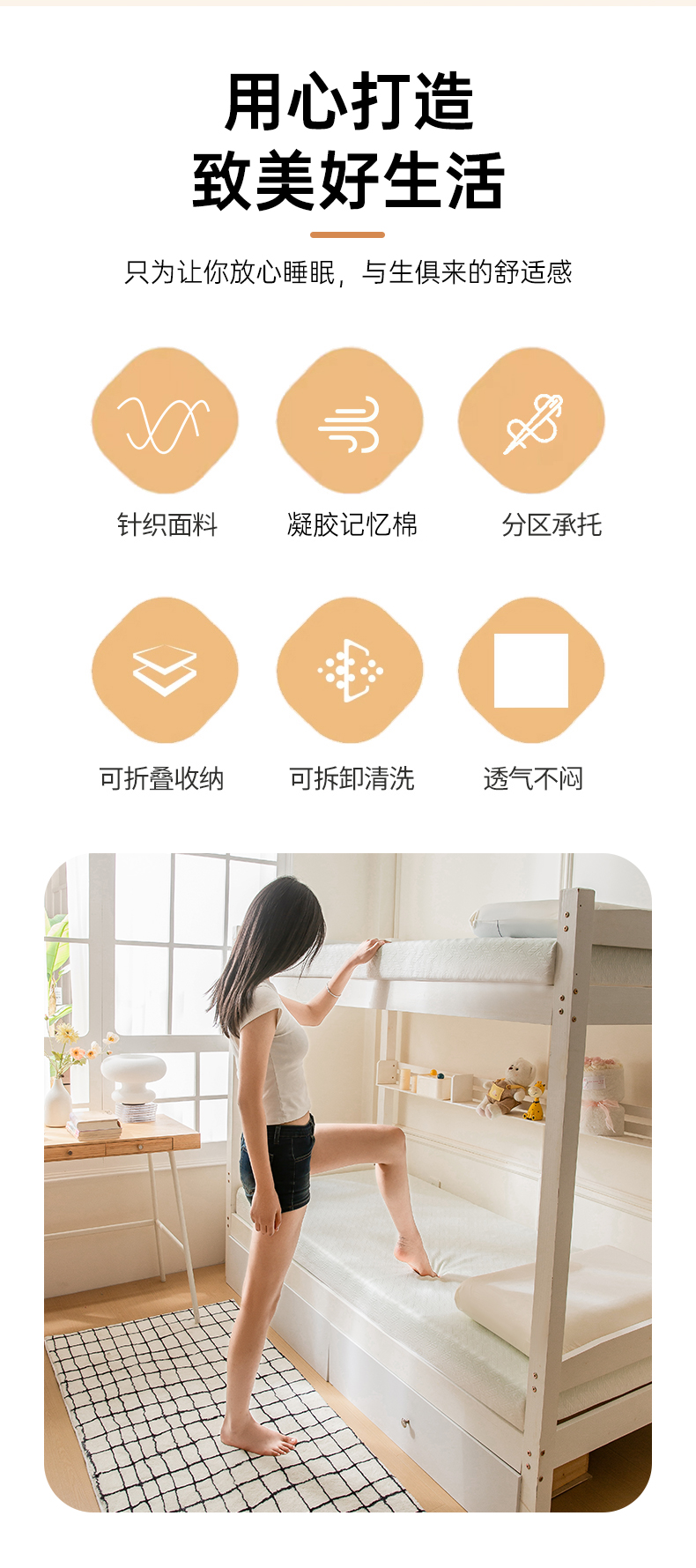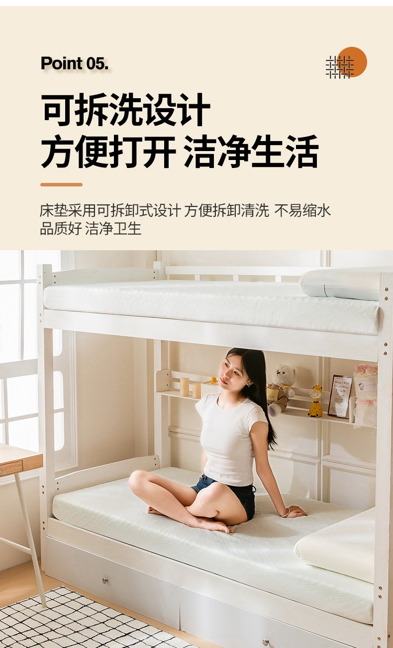 水漾家纺-宿舍单人床可拆卸针织7区抗压护脊记忆棉床垫