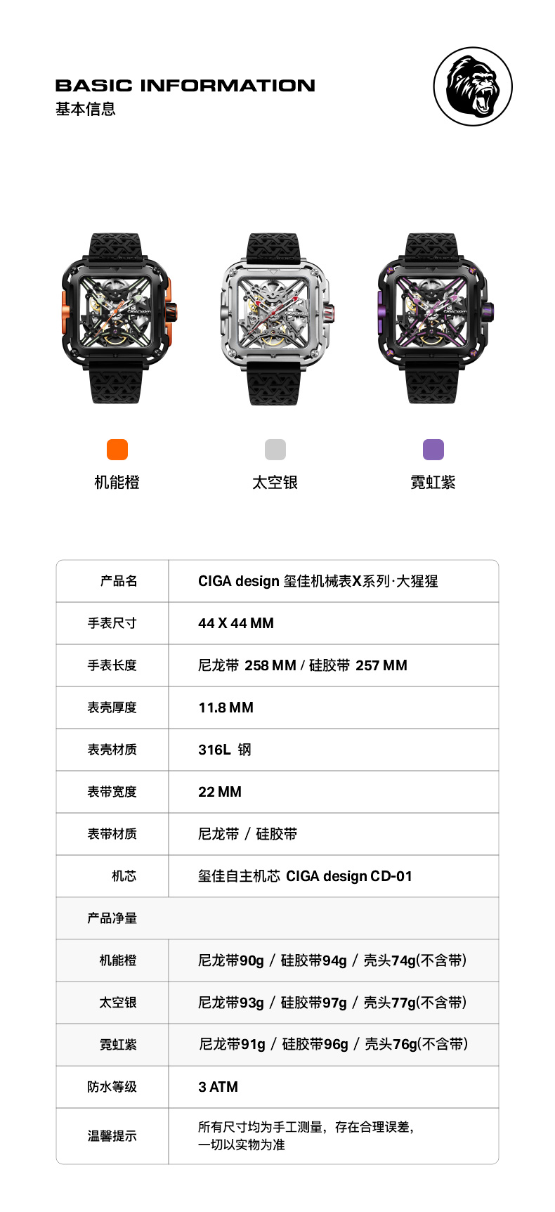 CIGA Design/玺佳 全镂空机械表大猩猩