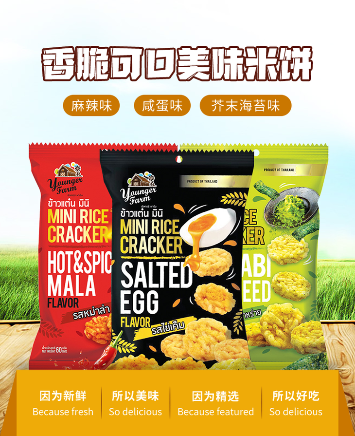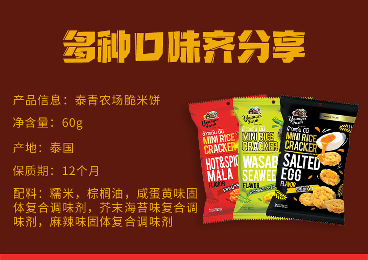 泰国 Younger Farm泰青农场咸蛋芥末香脆米饼网红休闲零食60g