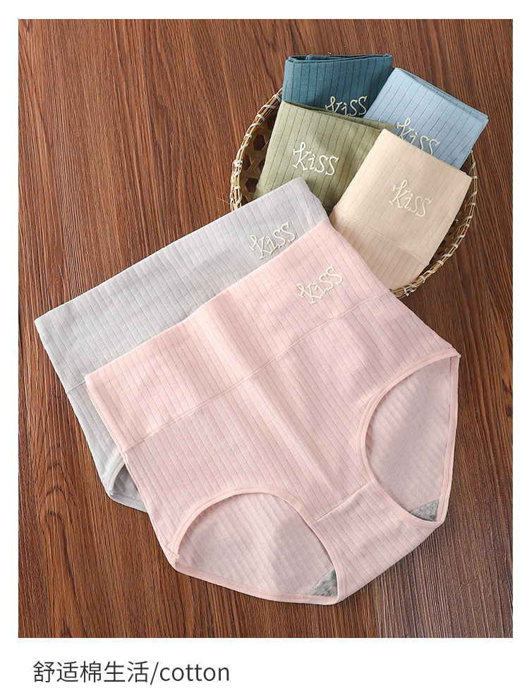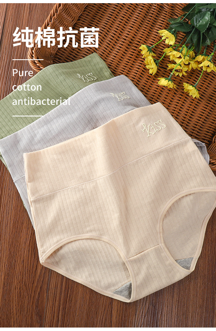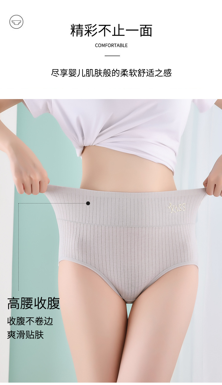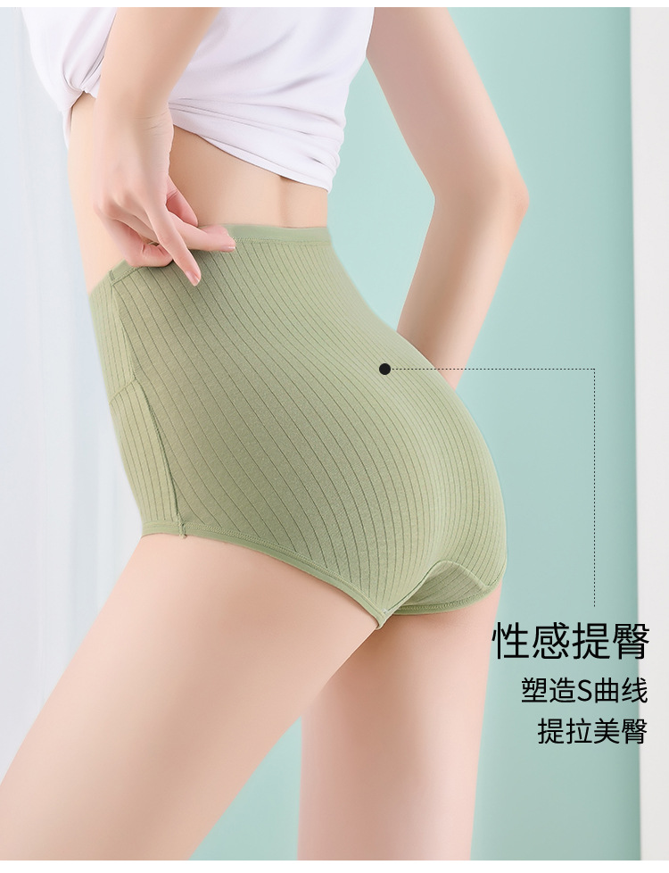 【让肌肤随时随地自由呼吸】纯棉高腰印花女士内裤 收腹提臀抗菌内裤 纯棉条纹高腰女士三角裤