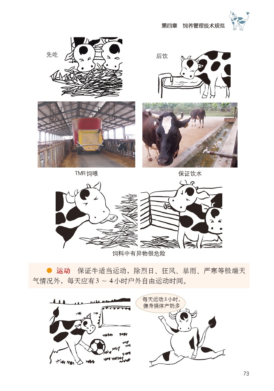 本书主要介绍奶牛标准化规模养殖全过程的关键技术和要点,包括奶牛场选址于设计、环境卫生与生物安全、奶牛的品种与繁殖技术、饲料与日粮配制、奶牛的饲养管理技术规程、奶牛常见疾病的诊断与防治、奶牛场经营管理与乳品加工等内容,通过简练、易懂、富有趣味性的文字,精选简洁、真实的图片近800幅,以彩色图谱的形式,直观表现标准化规模养殖流程,可操作性强,一学就会,给奶牛养殖场及相关技术人员提供简单、实用的技术参考。也可作为扶贫攻坚项目辅助资料。