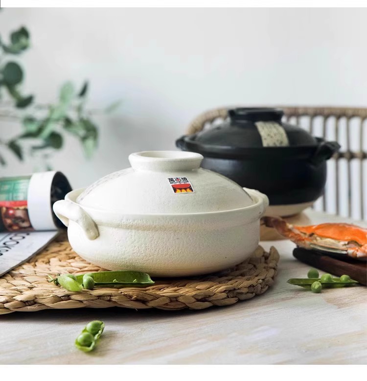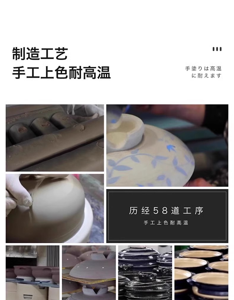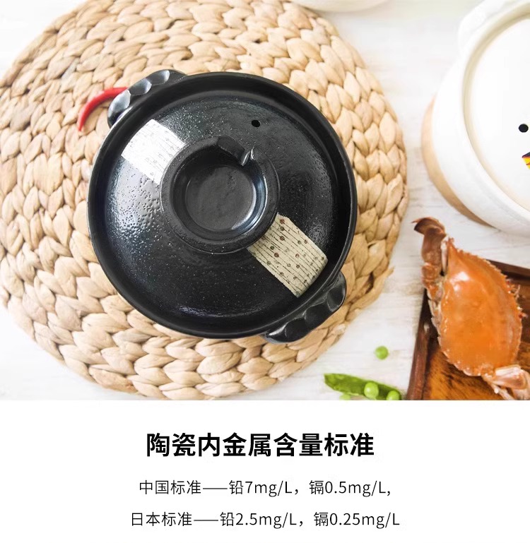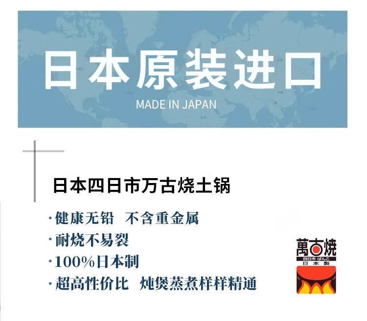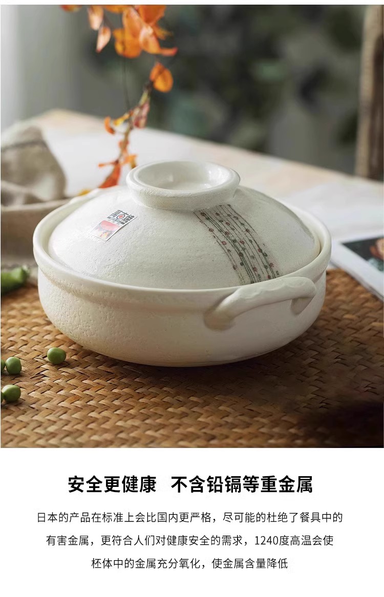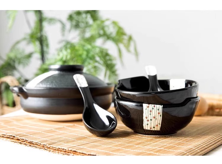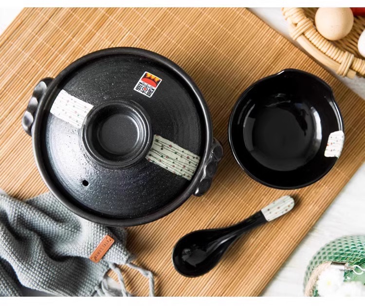 日本进口万古烧砂锅浅口家用煲汤锅炖锅陶瓷锅煮粥黑玉8号砂锅2.8L