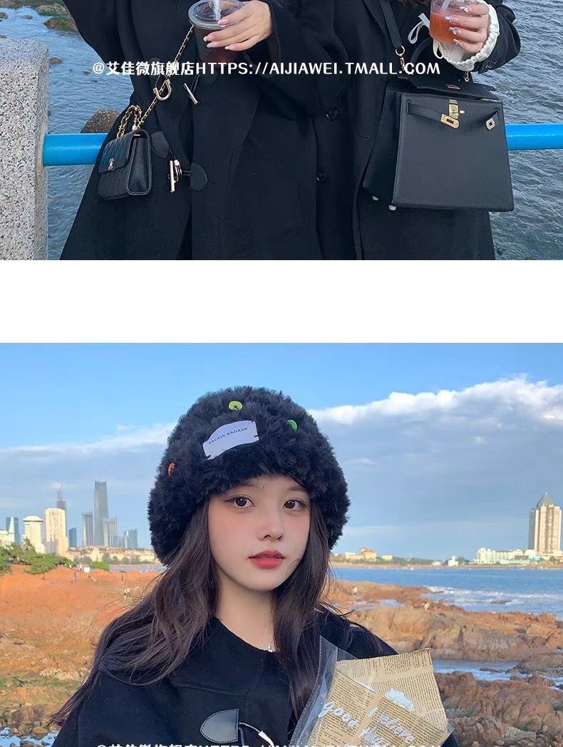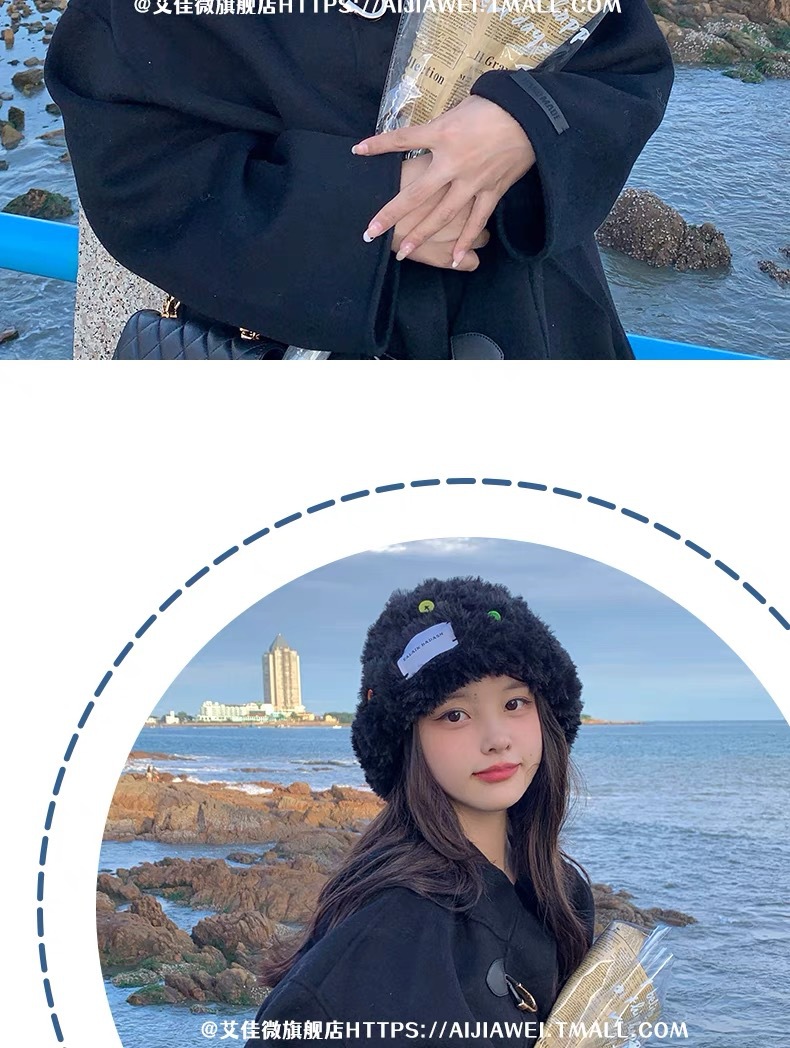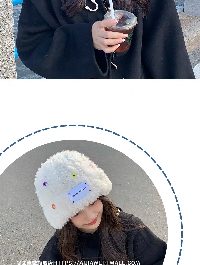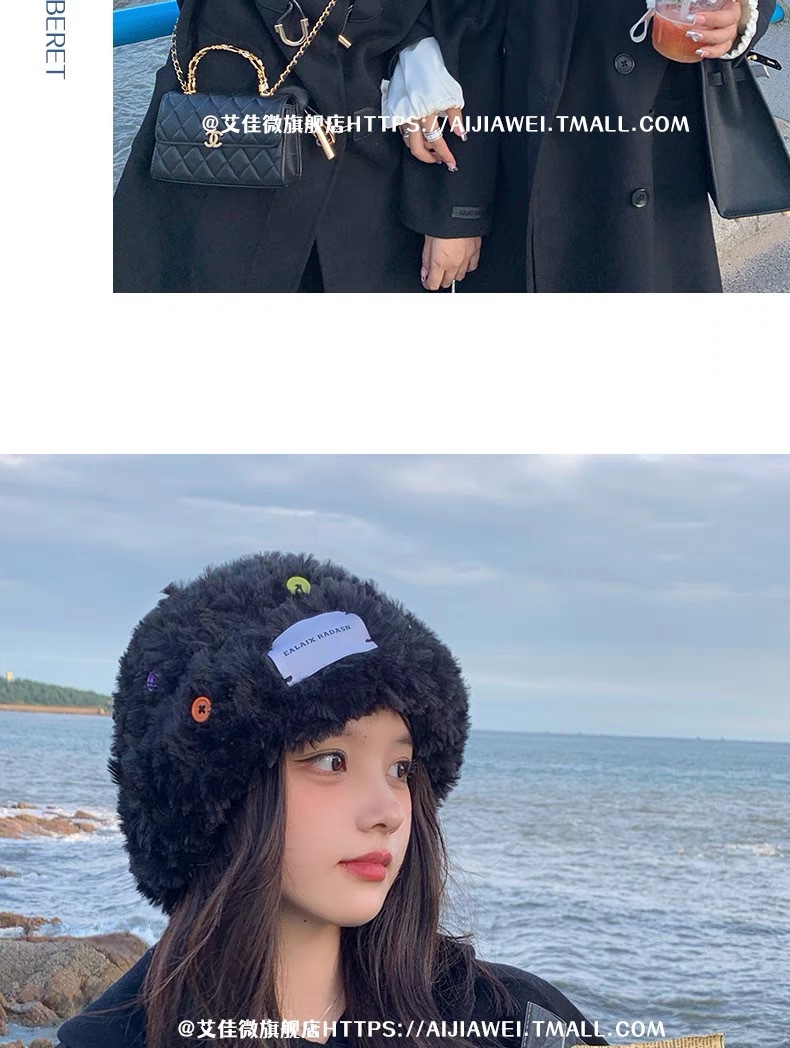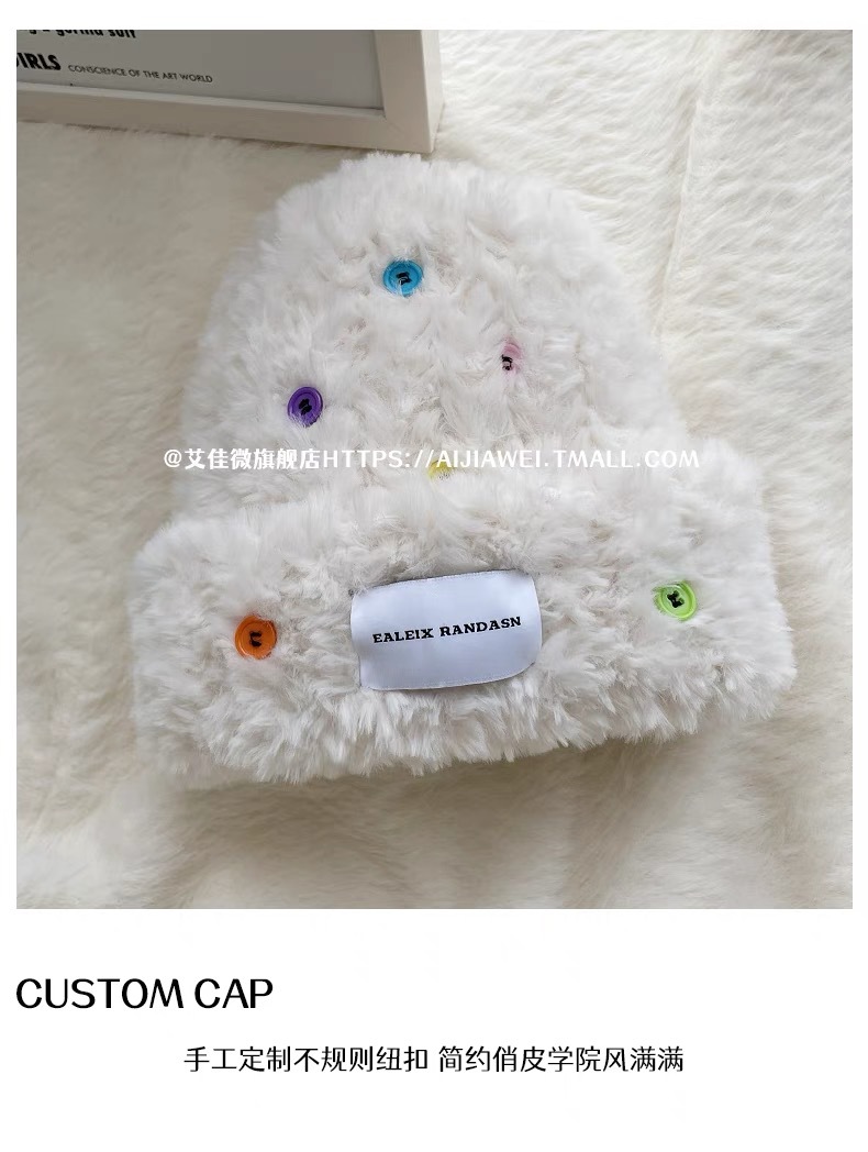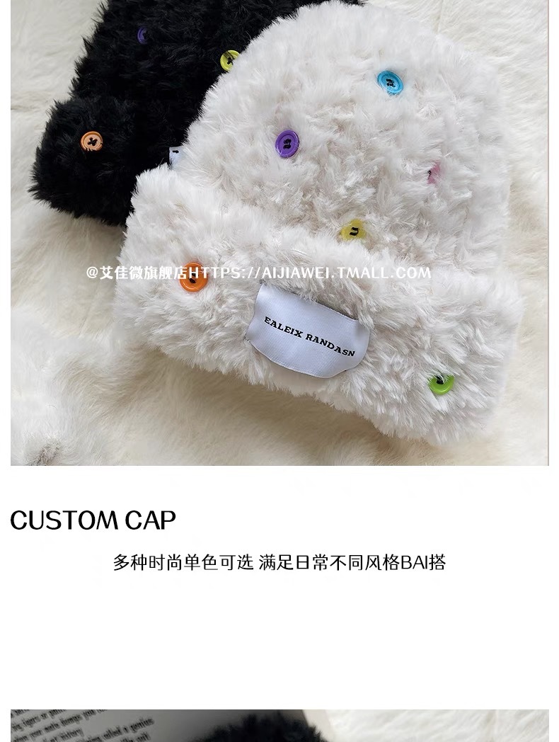「黑白两色!韩版毛绒帽」韩版毛绒加厚针织帽纽扣点缀保暖帽可爱显脸小毛线帽冬季配饰