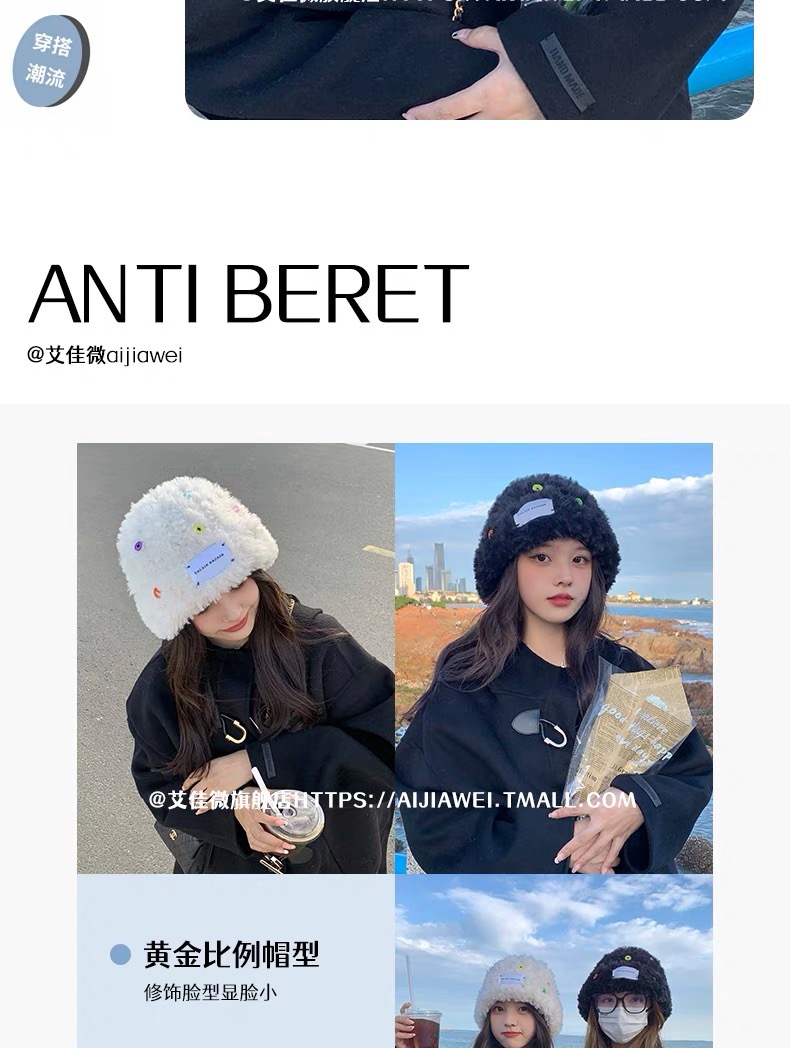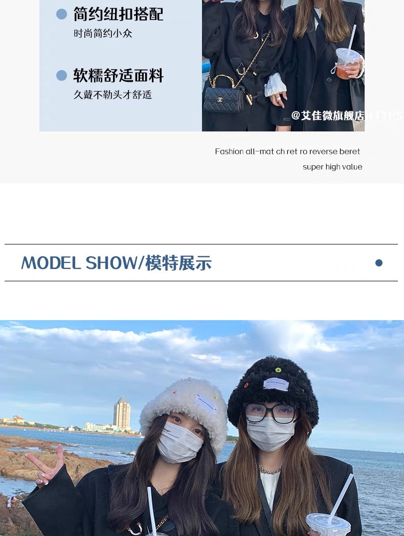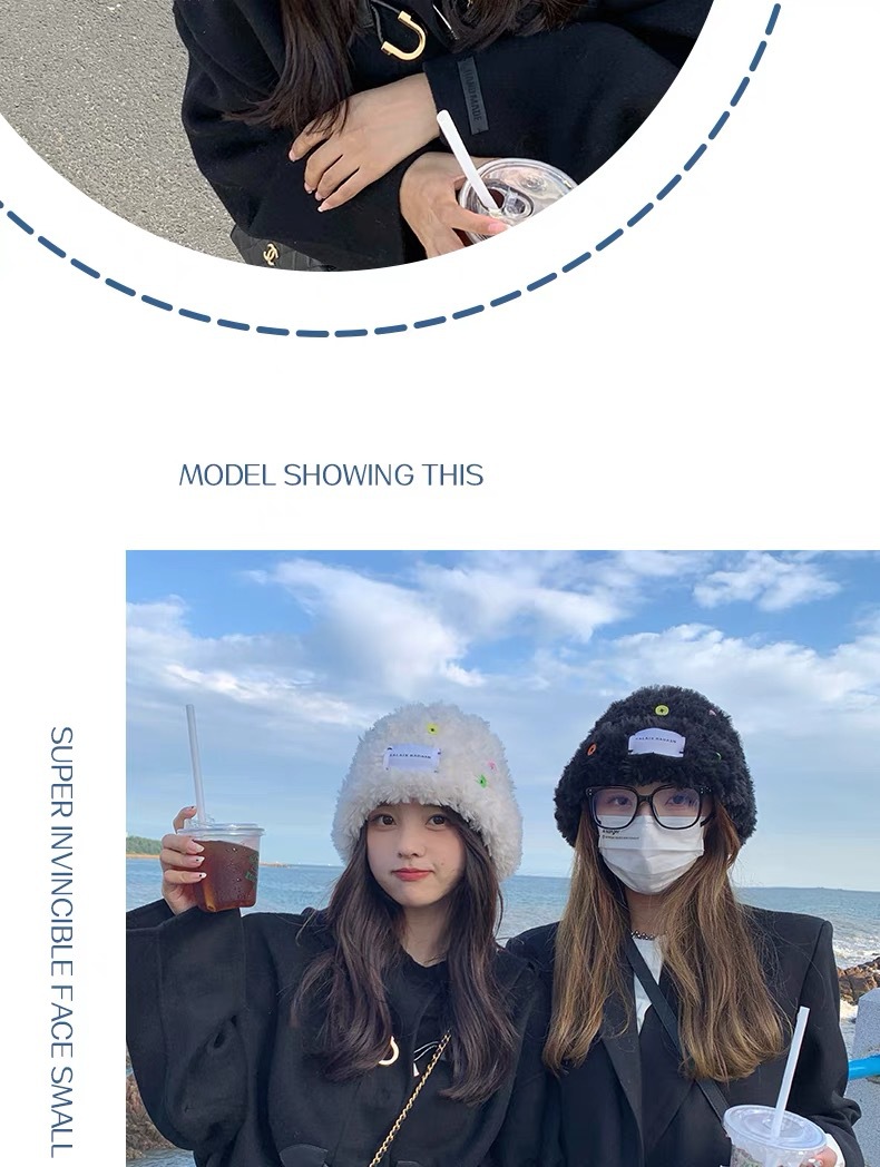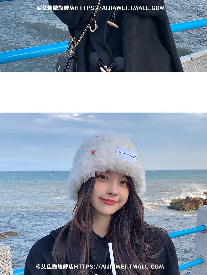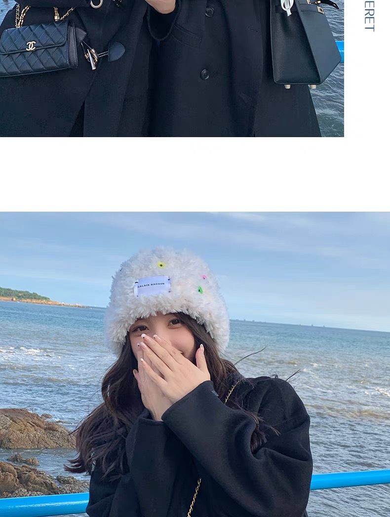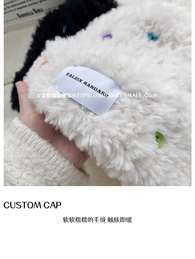 「黑白两色!韩版毛绒帽」韩版毛绒加厚针织帽纽扣点缀保暖帽可爱显脸小毛线帽冬季配饰