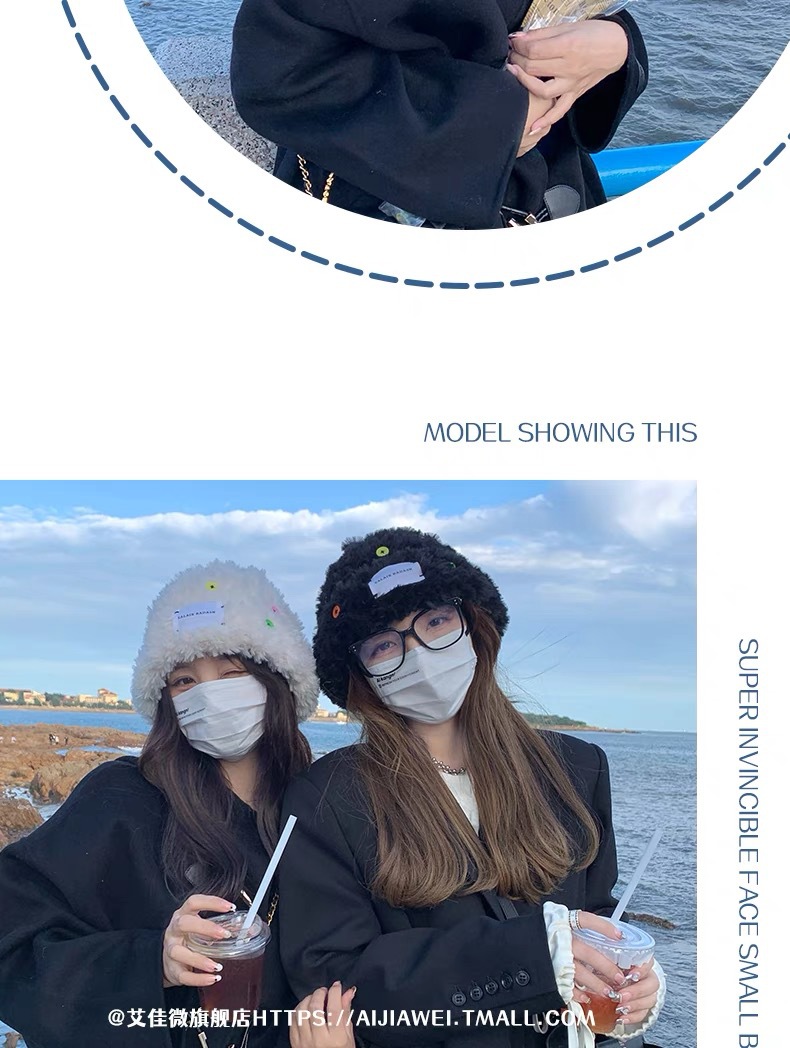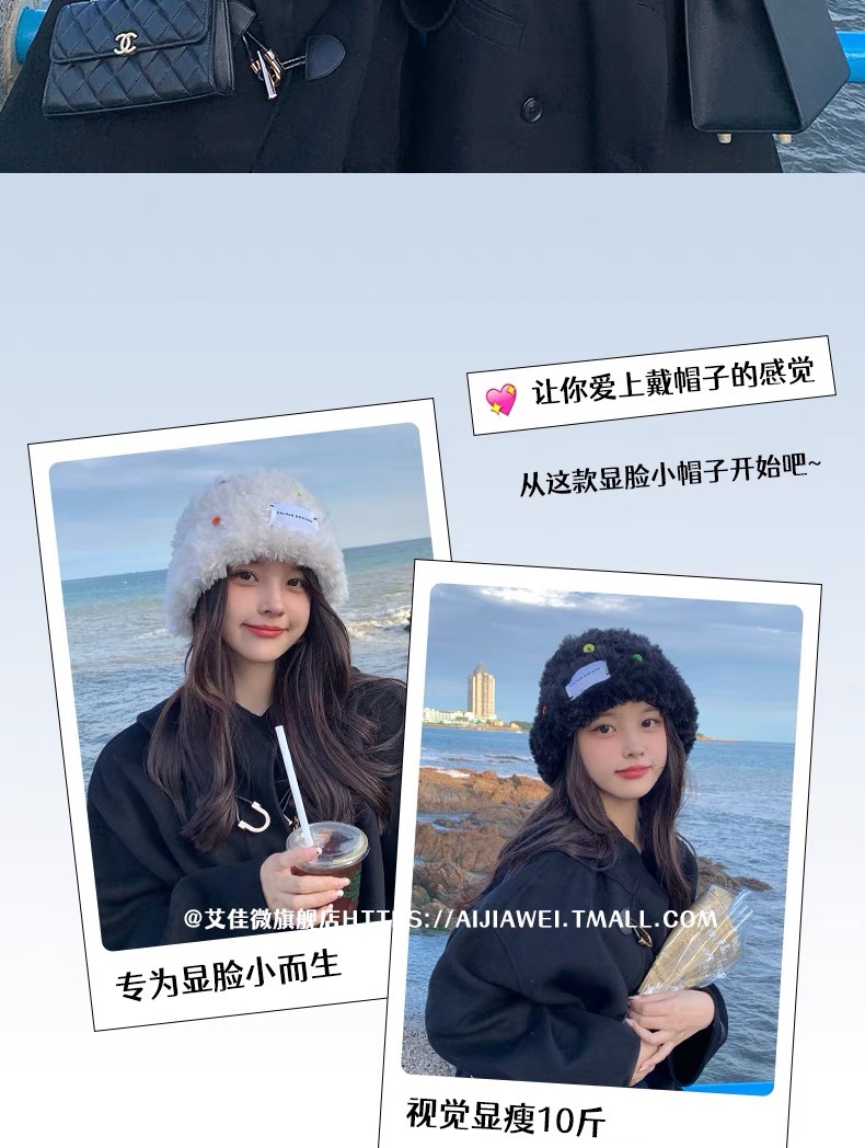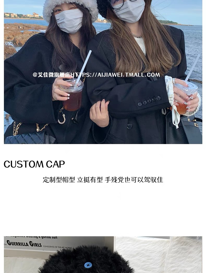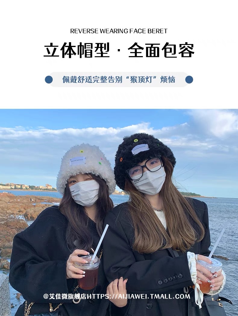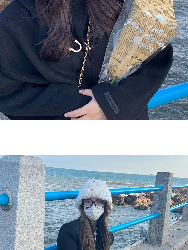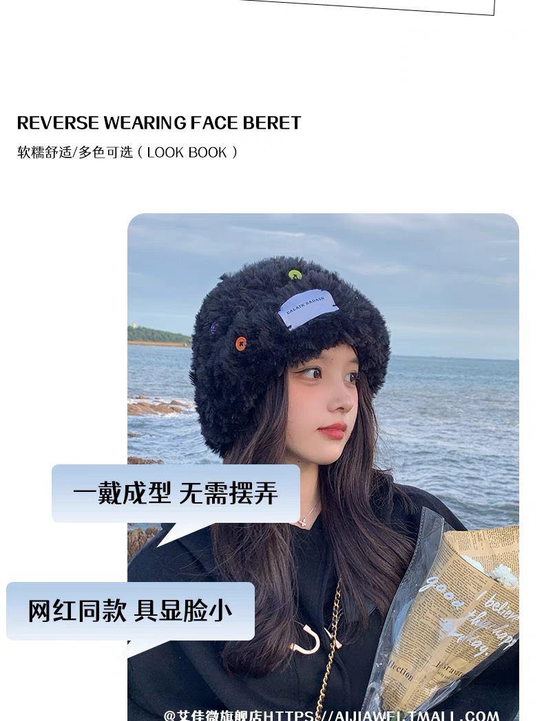 「黑白两色!韩版毛绒帽」韩版毛绒加厚针织帽纽扣点缀保暖帽可爱显脸小毛线帽冬季配饰