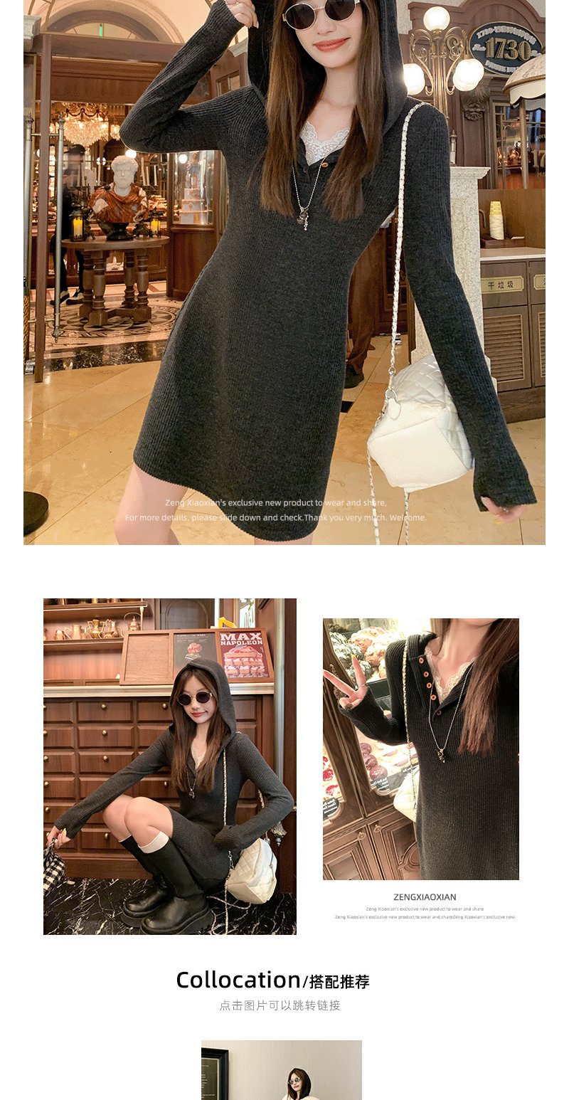 <曾小咸推荐>2.9现货秒杀 !微信超特价!连帽蕾丝边针织连衣裙 日常229.99 立减140 秒杀89.99!!