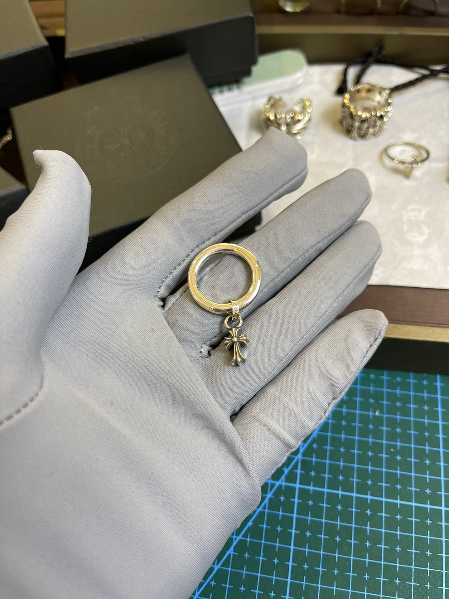 克罗心圆环十字架戒指