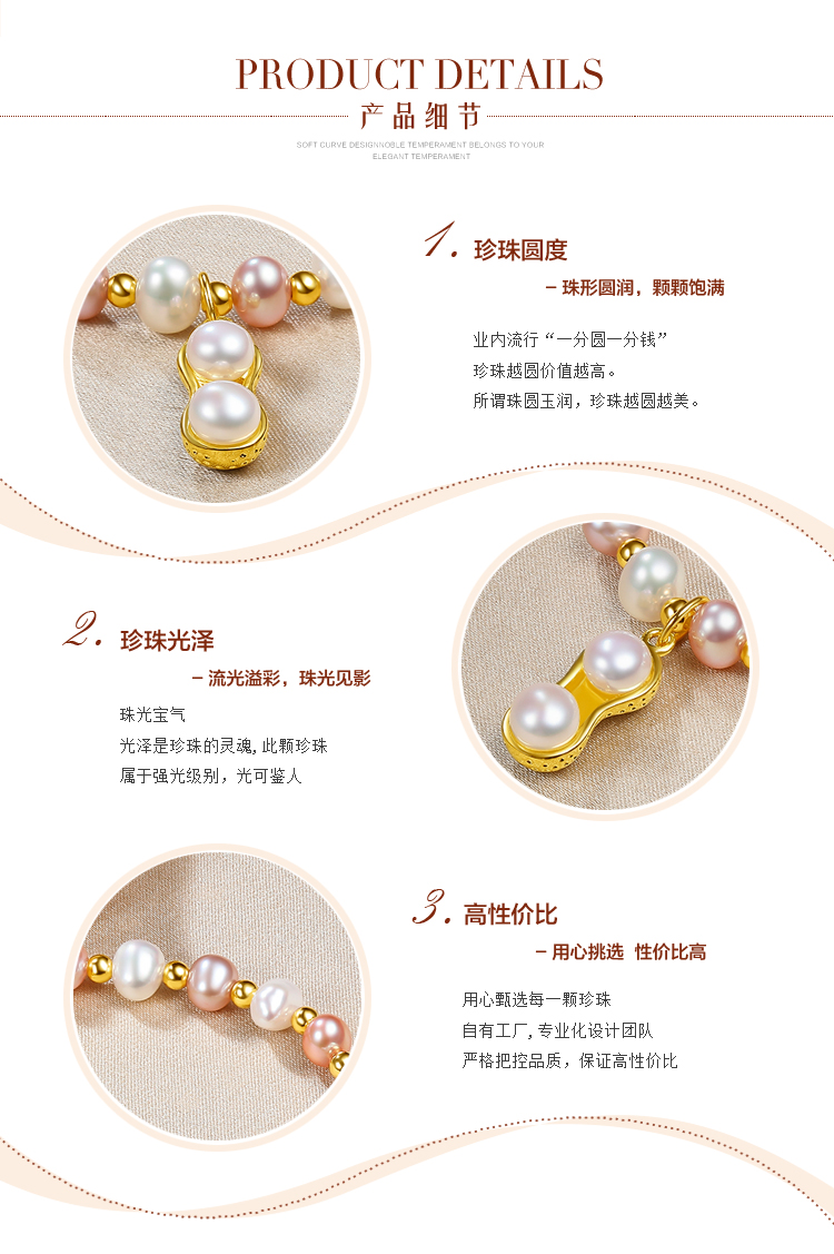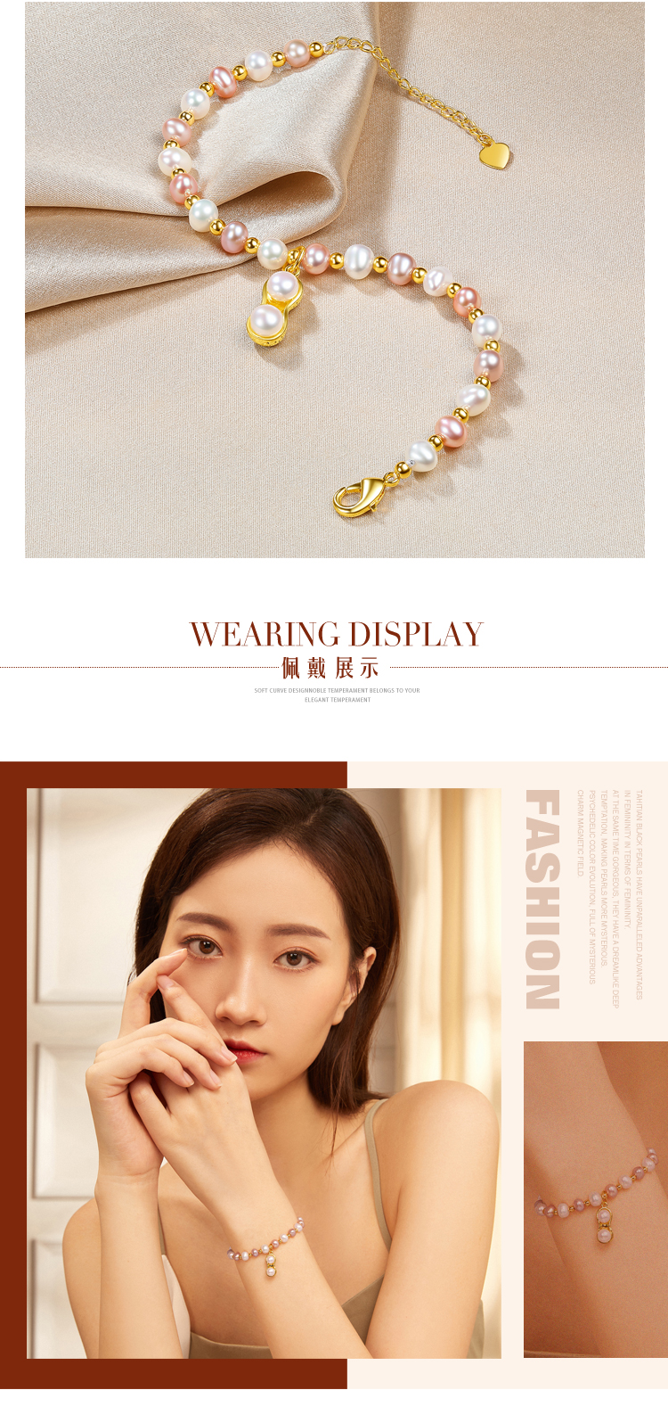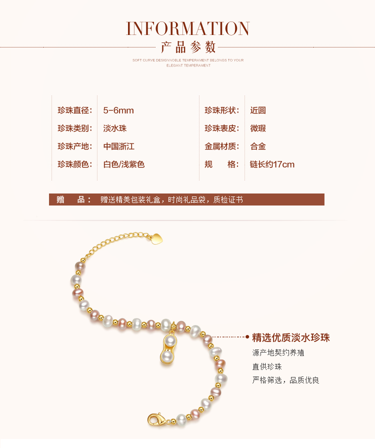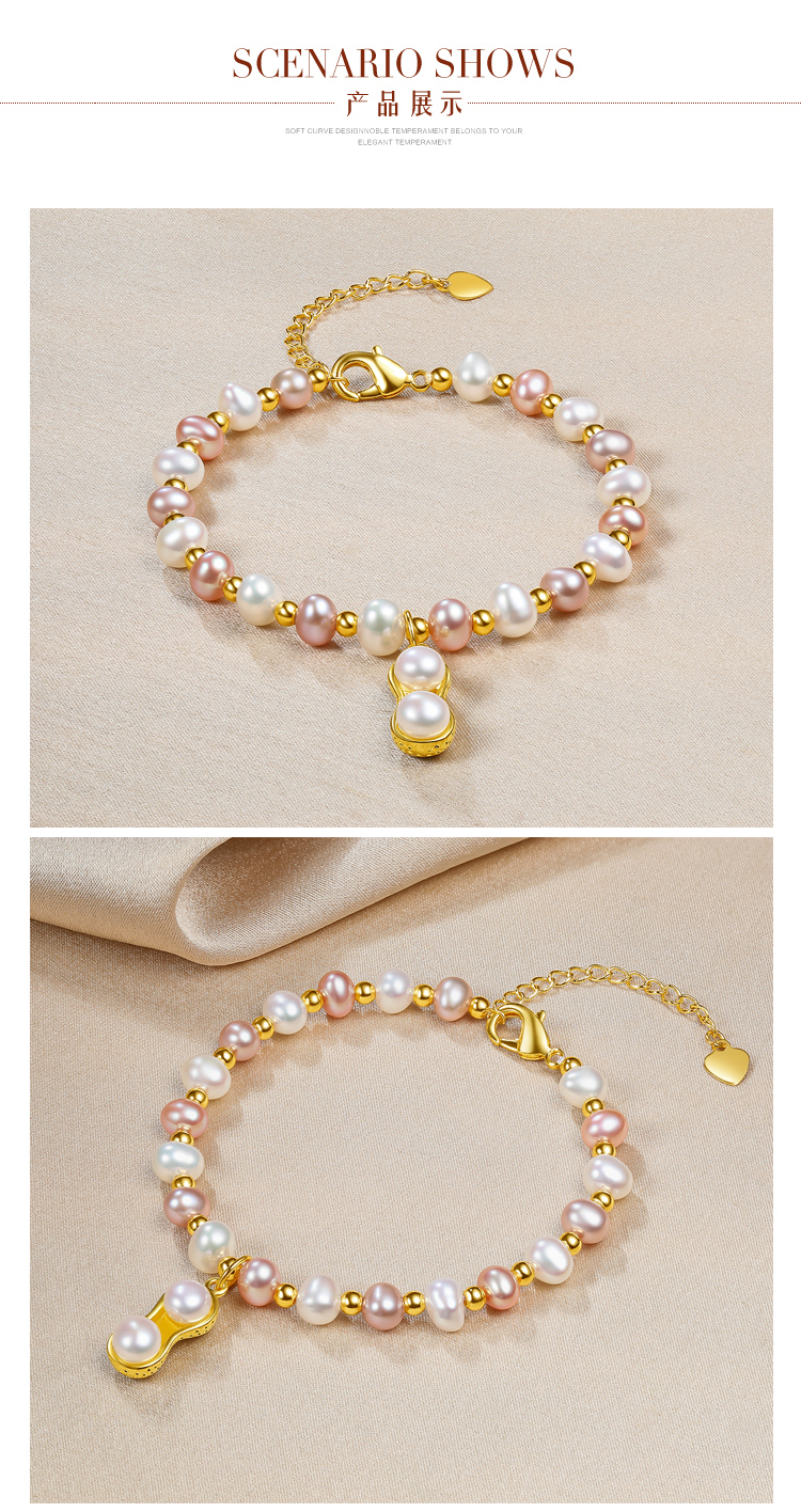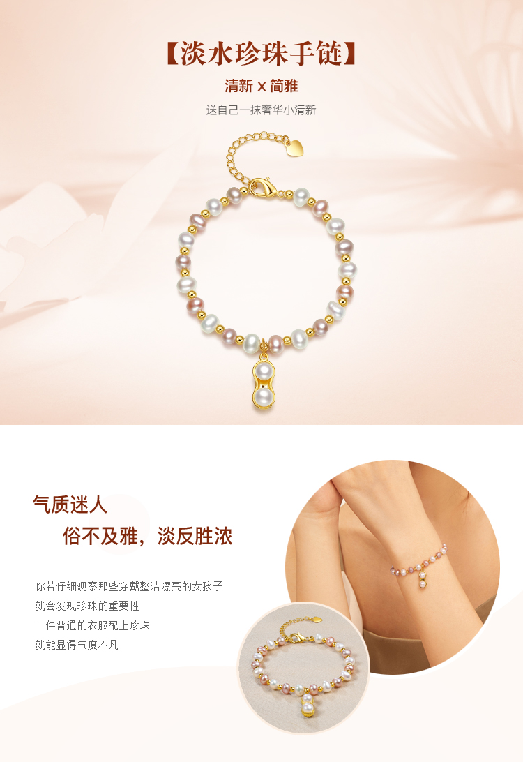 ALLOVE合金小花生时尚淡水珍珠手链,清新简雅