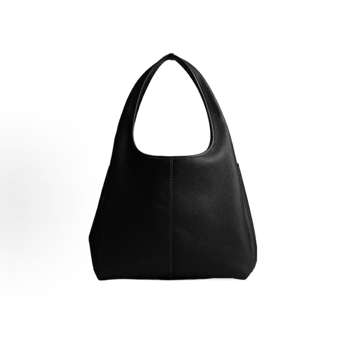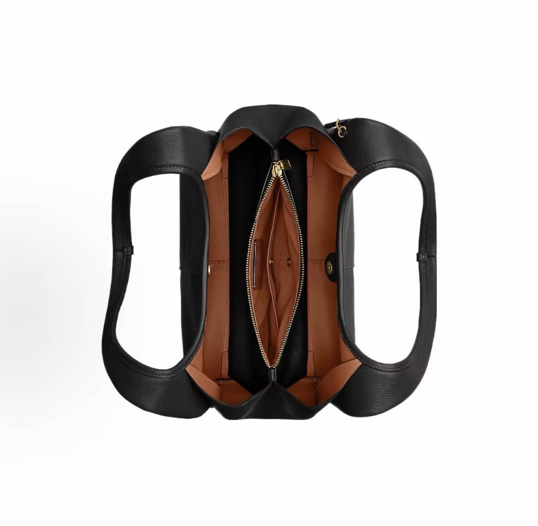 COACH 蔻驰 Lana 34 手提单肩包(黑色款),荔枝纹皮革柔软,标志性金色小C扣点缀包身,利落的轮廓搭配撞色明线,大容量设计,能轻松容纳电脑、文件及日常随身物品。尺寸33.7cm*19.7cm*26cm,内部配备拉链暗袋与夹层拉链袋,收纳分区清晰,按扣开合设计,取放便捷,不可调节拆卸的单肩肩带,贴合肩部弧度,久背不累。手工制作工艺,车缝刺绣马车标与皮签牌彰显品牌匠心;附赠原装防尘袋,收纳与保养更省心。