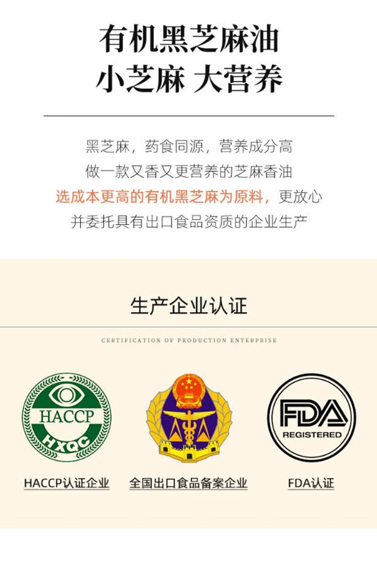 正耕 有机黑芝麻油250ml
