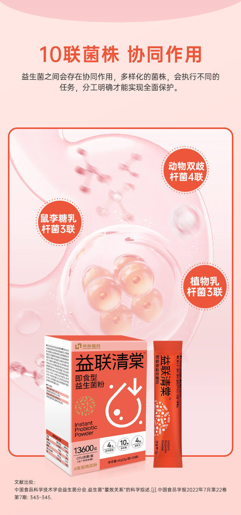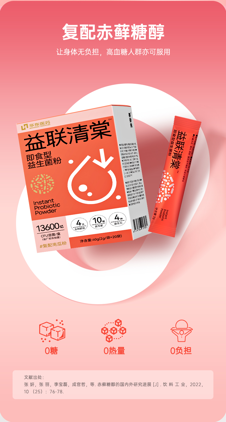 【医药分销专属】益联清棠即食型益生菌粉2g*20袋 作用肠道 延缓糖吸收