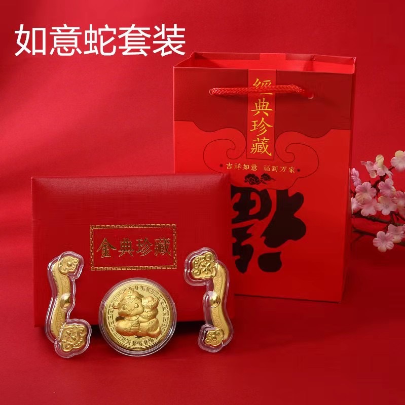 【29.9抢❗️蛇如意三件套礼盒】蛇年仿金箔开运金币,高颜值招财纪念币蛇如意,摆件伴手礼商务活动礼品QQ新年礼盒年货礼盒