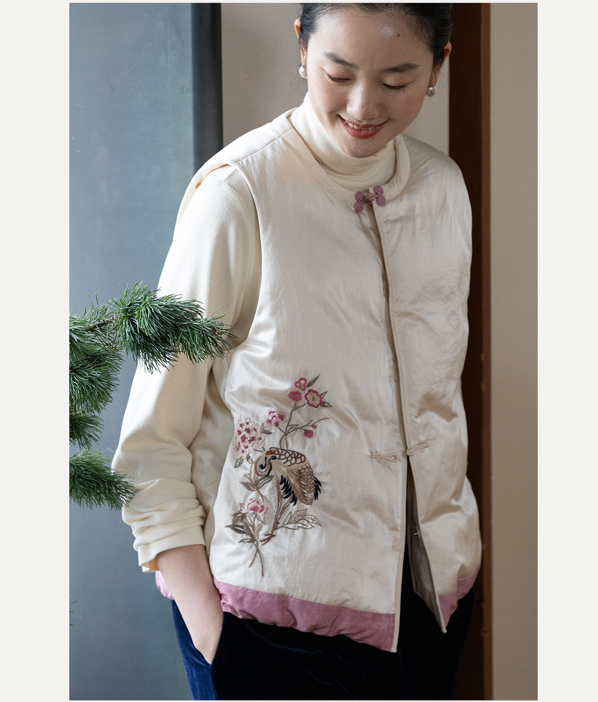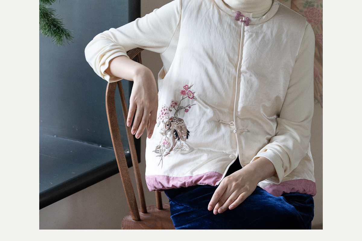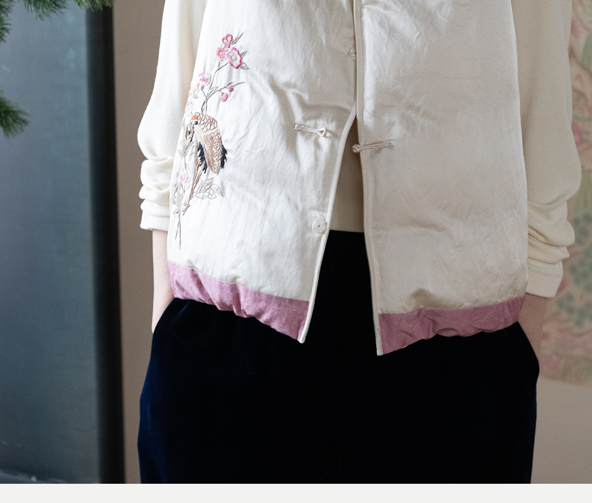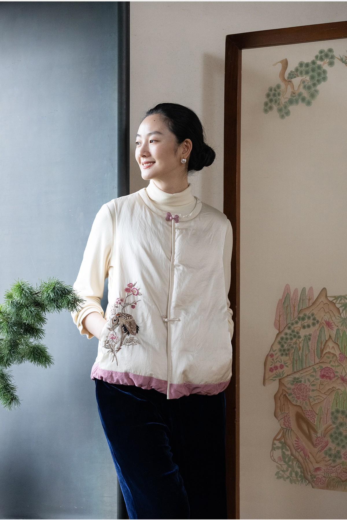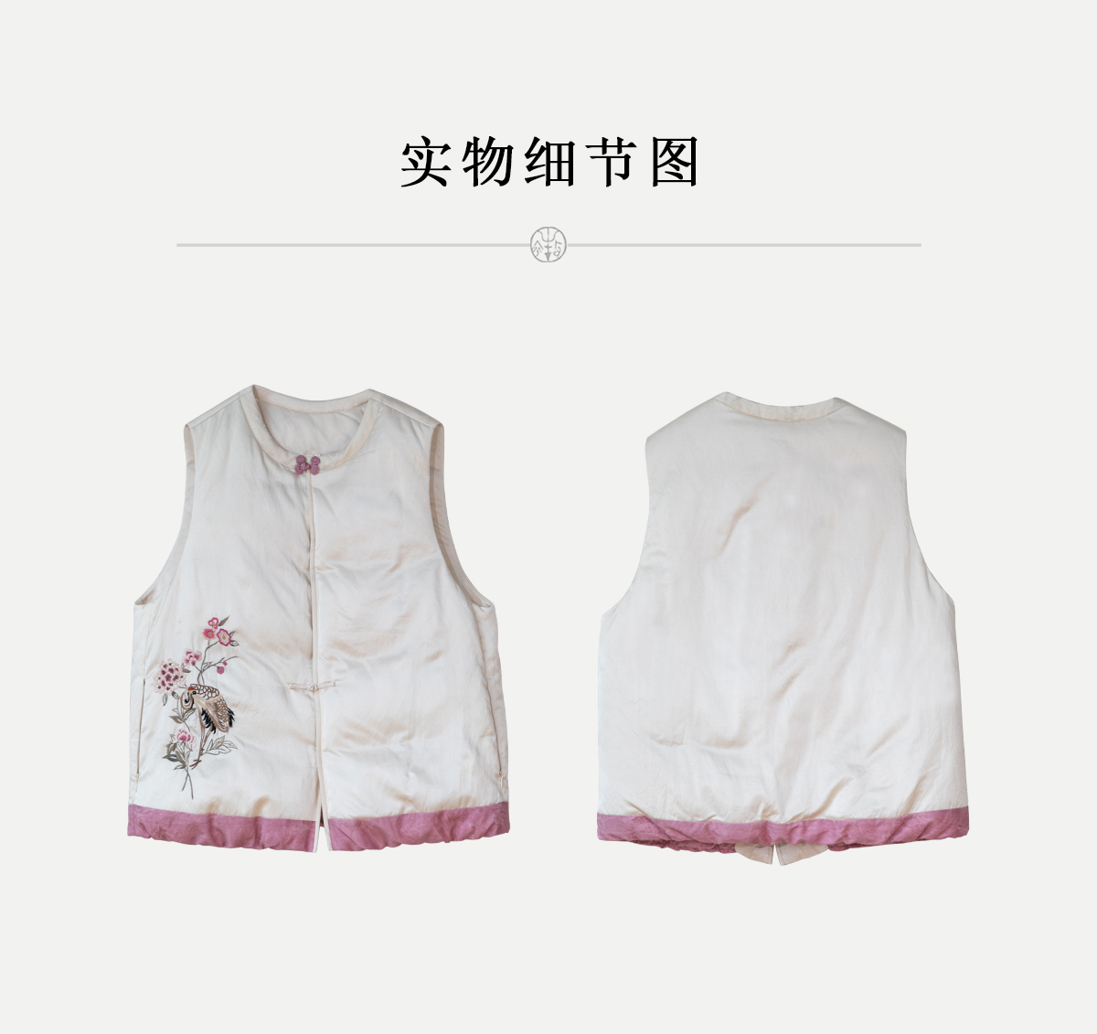 牧衣游原创 丝棉手工刺绣95级高蓬松红嘴雁绒短羽绒马夹冬季 哩舍
