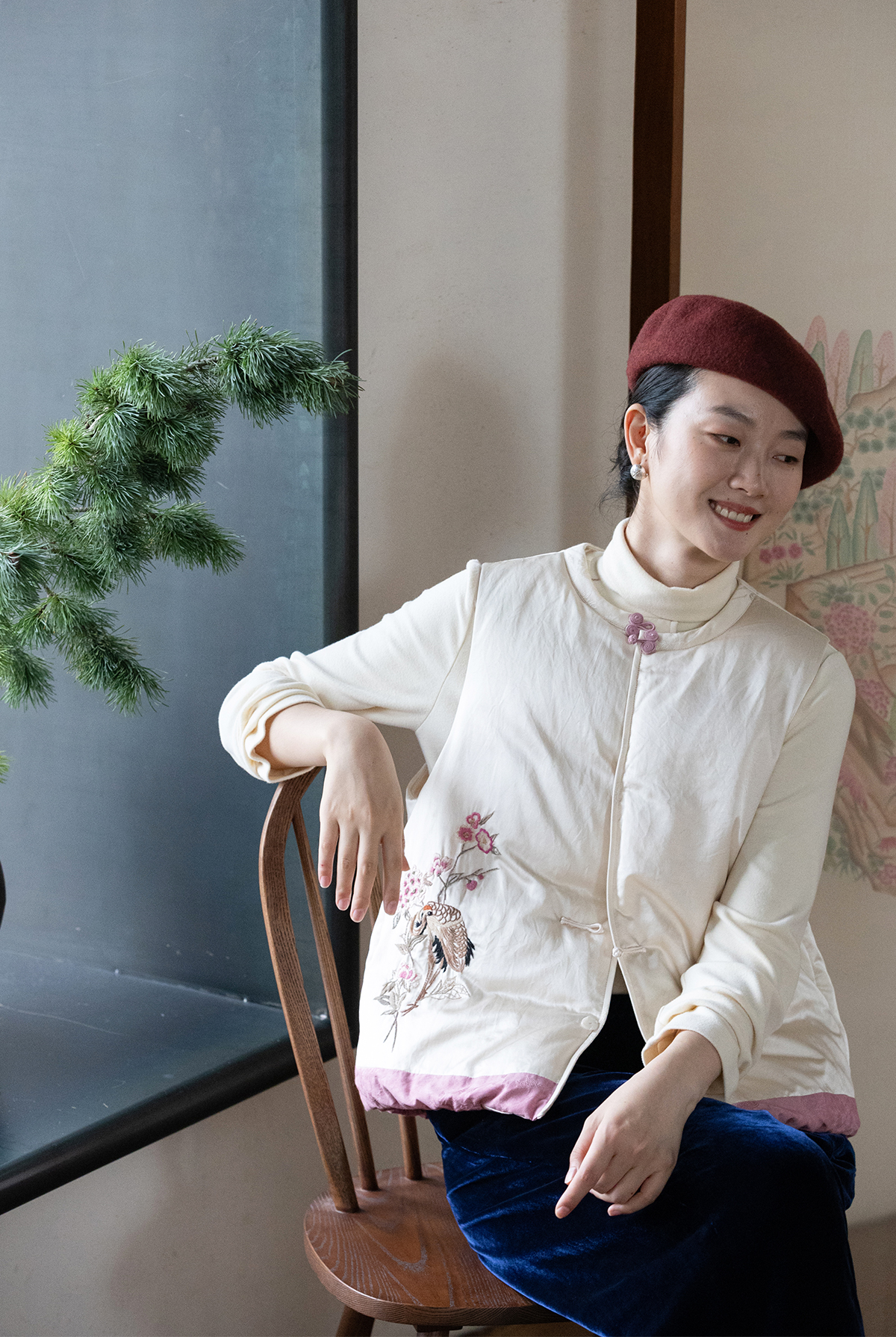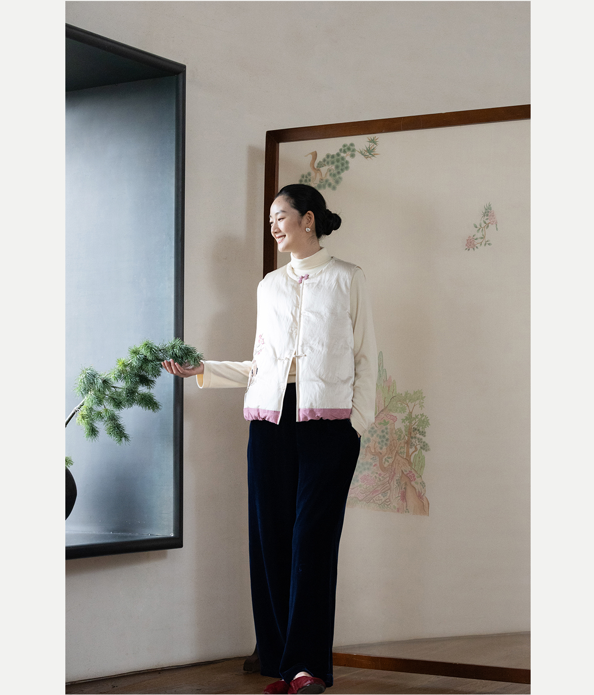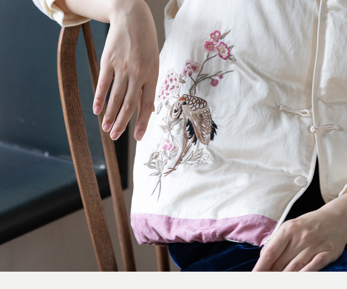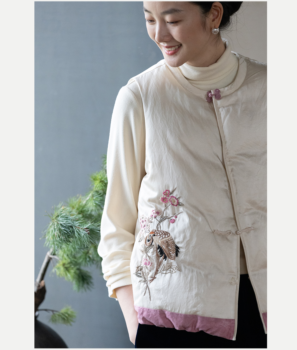 牧衣游原创 丝棉手工刺绣95级高蓬松红嘴雁绒短羽绒马夹冬季 哩舍