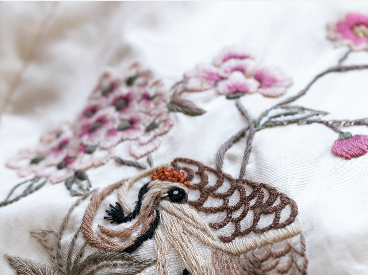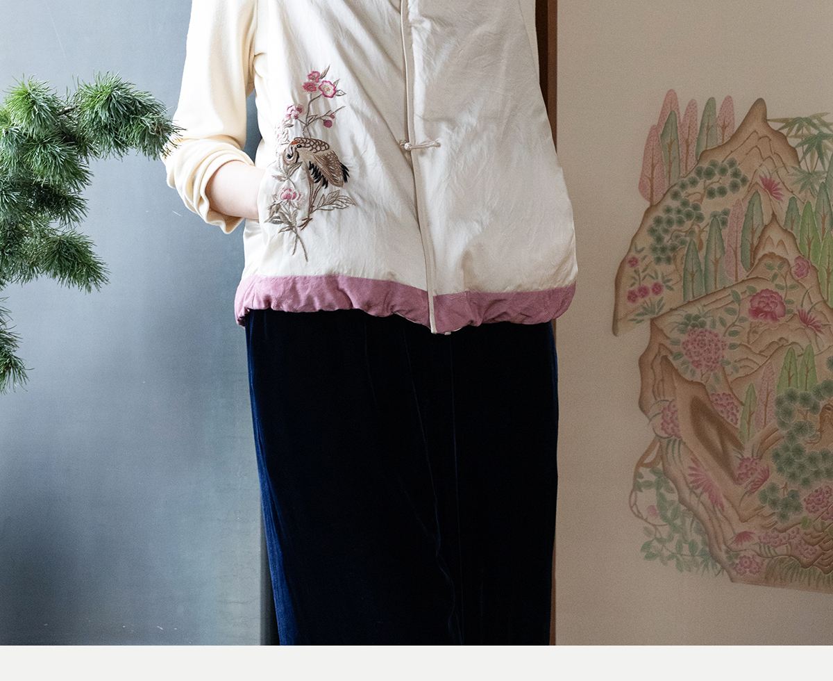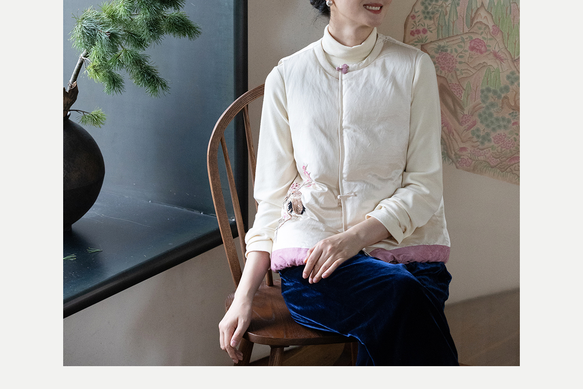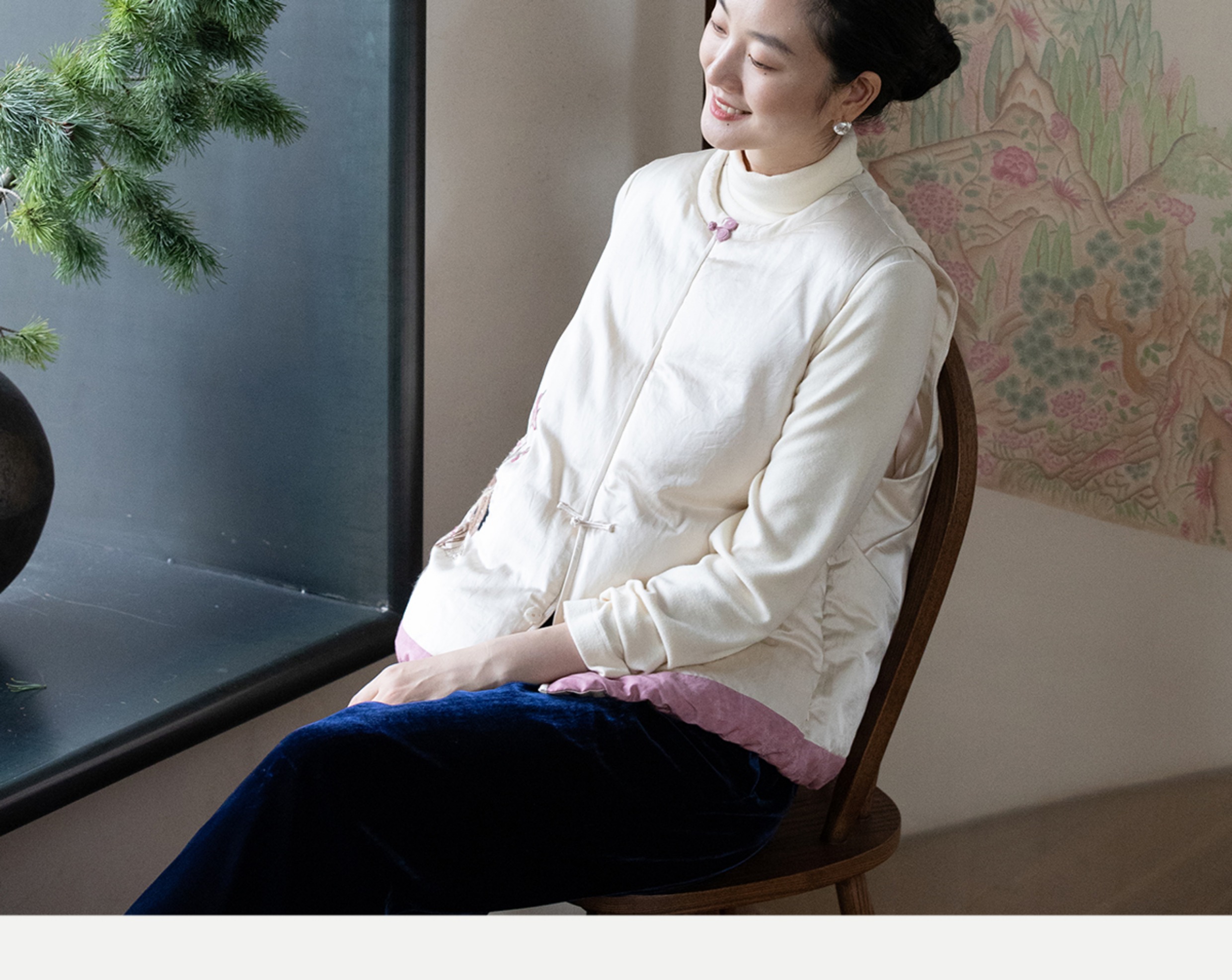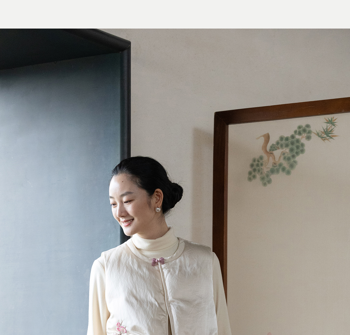 牧衣游原创 丝棉手工刺绣95级高蓬松红嘴雁绒短羽绒马夹冬季 哩舍