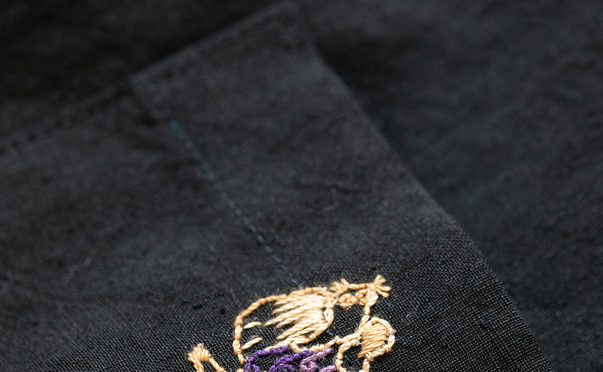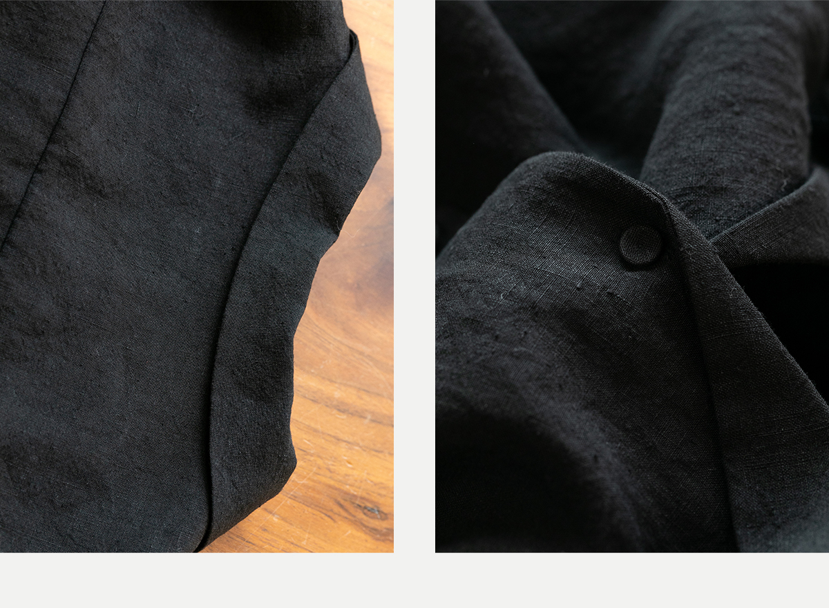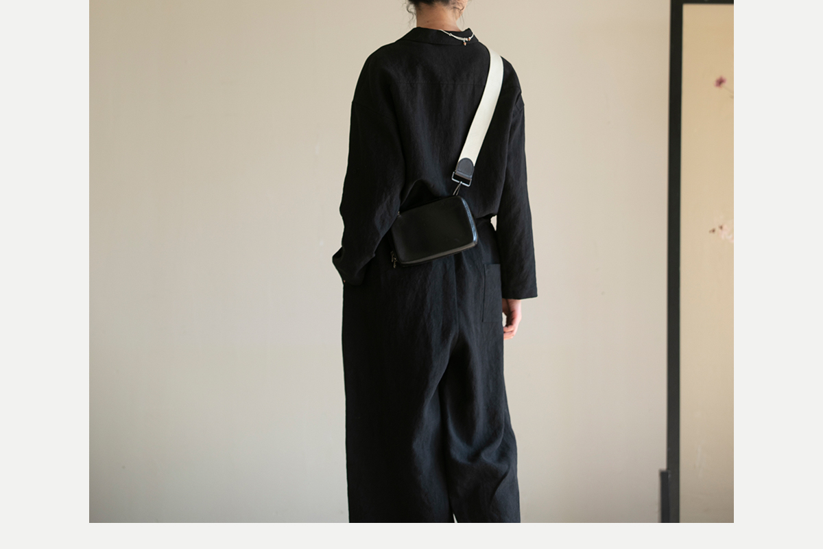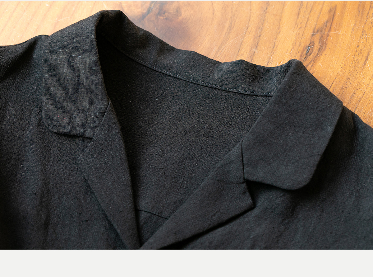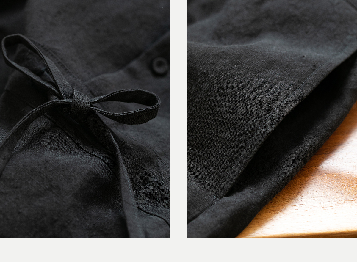 牧衣游原创 刺绣麻料素色连体裤女新款宽松黑色显瘦休闲裤 半冬雨