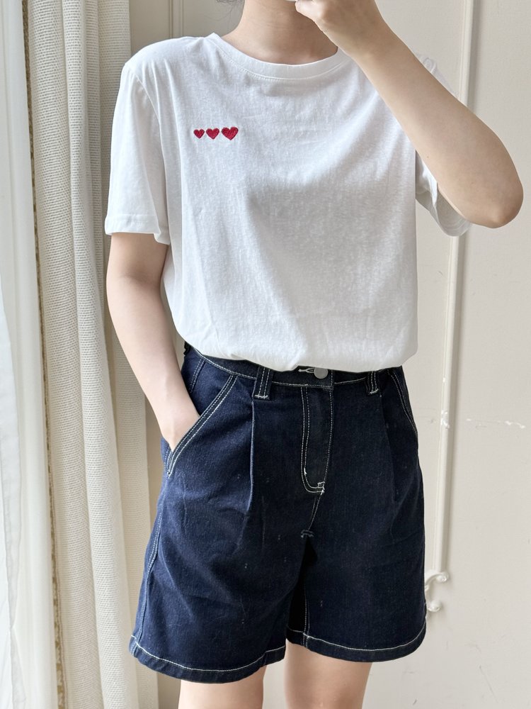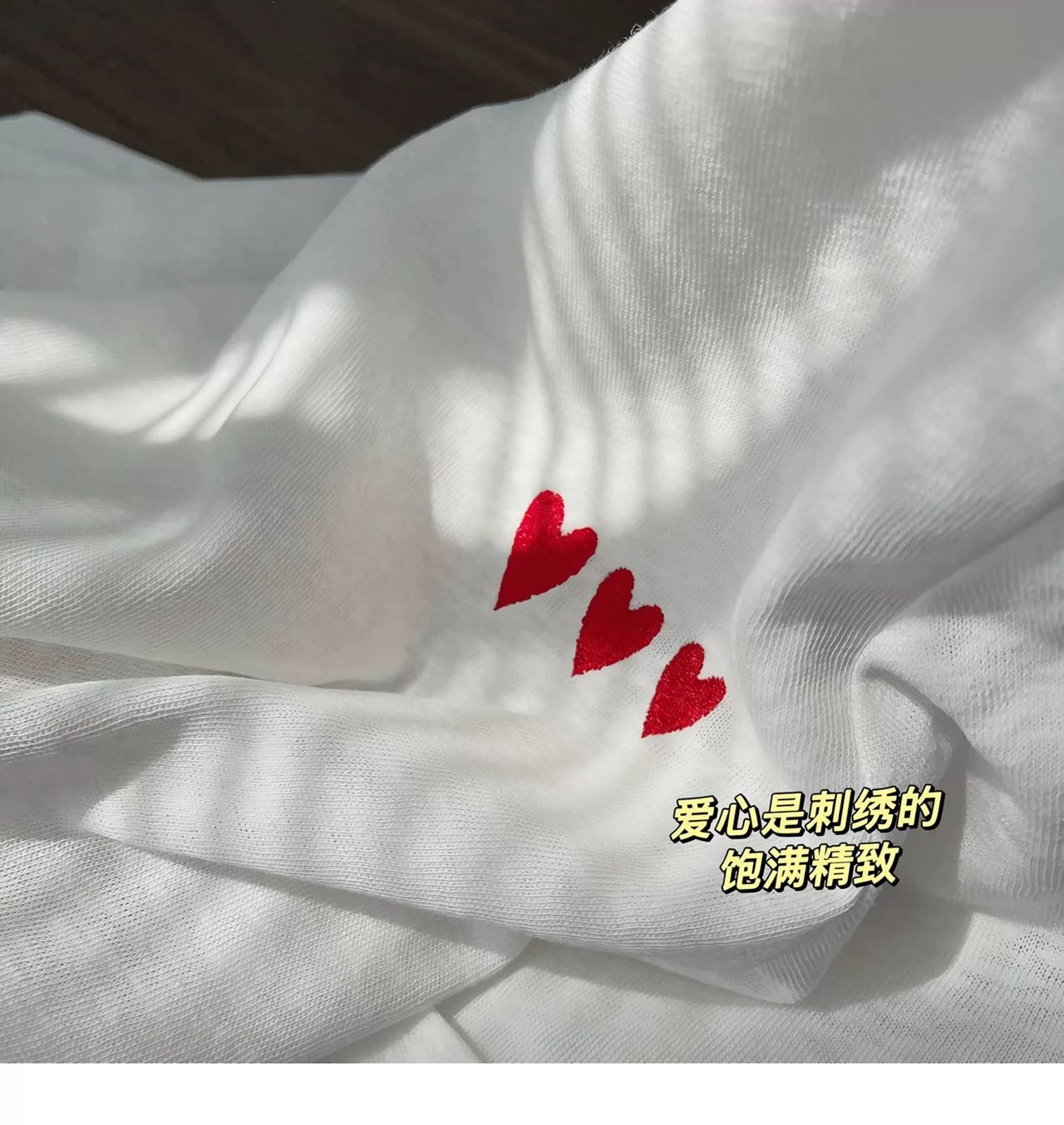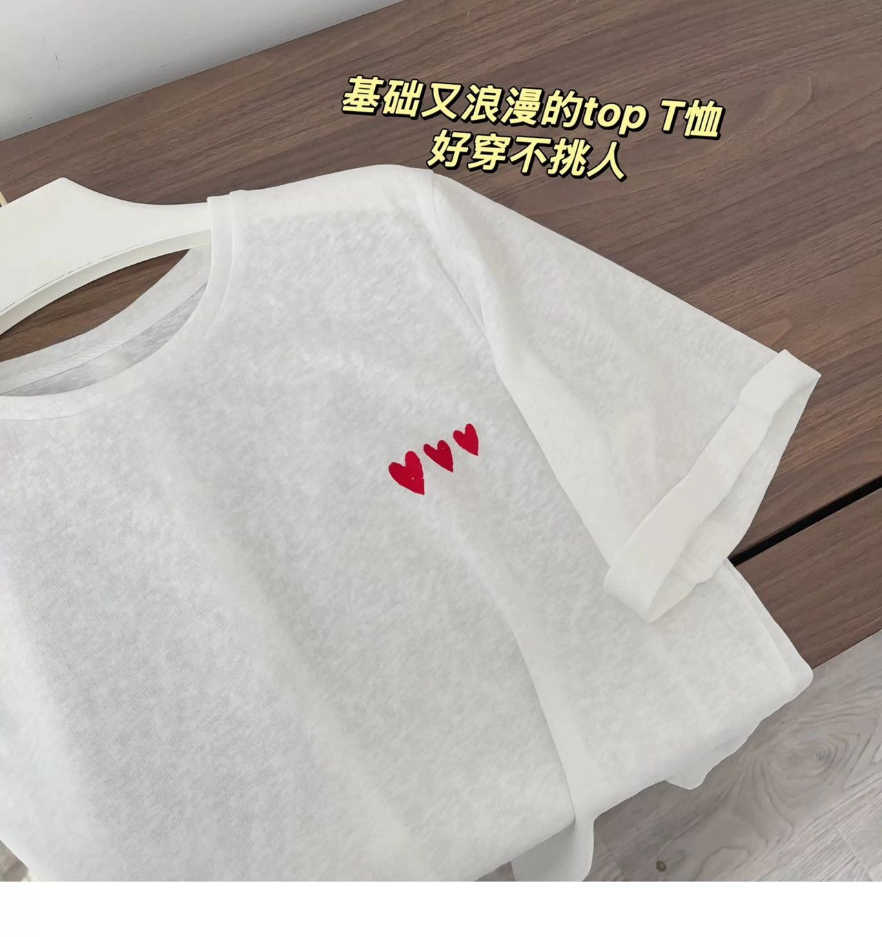 【觅槿法式刺绣爱心T恤】明星都爱穿的超绝基础款短袖T 基础款 穿多少年都不过时 搭配牛仔裤/半裙都绝美