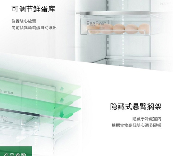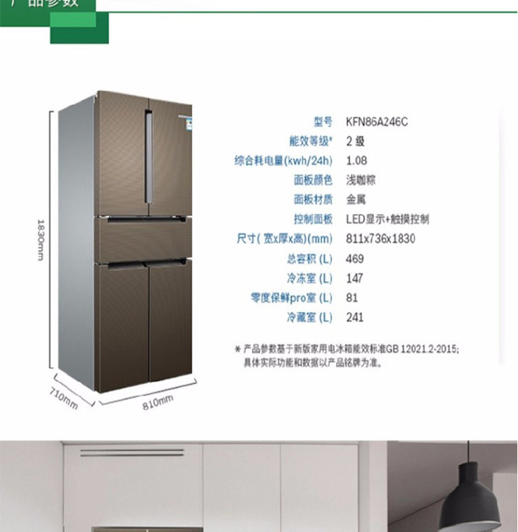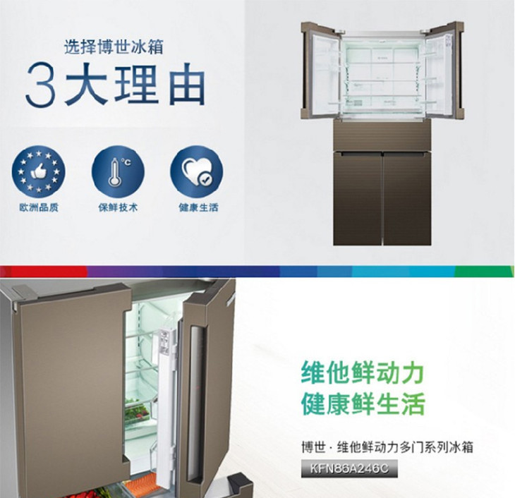 博世(Bosch)469升无霜零度中字门五门多门保鲜冰箱 BCD-469W(KFN86A246C)