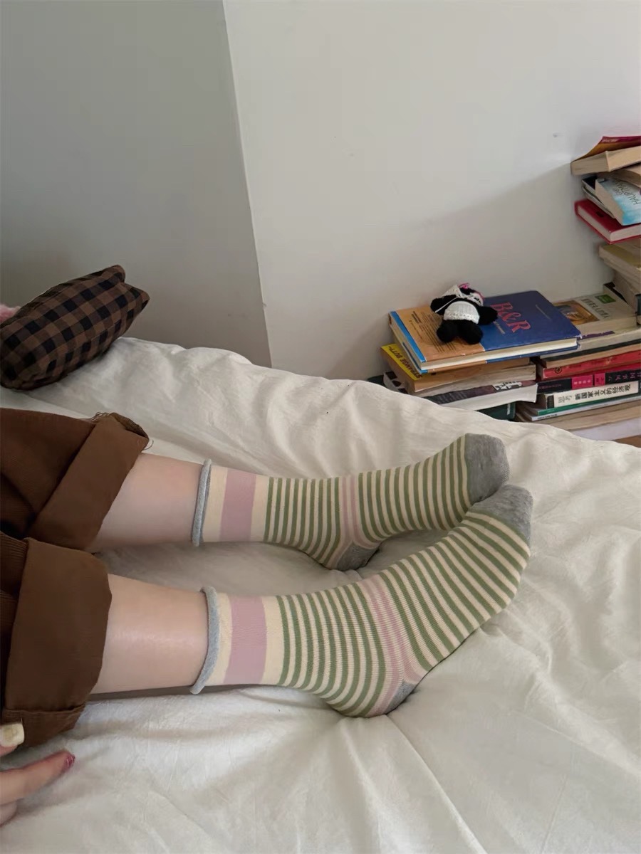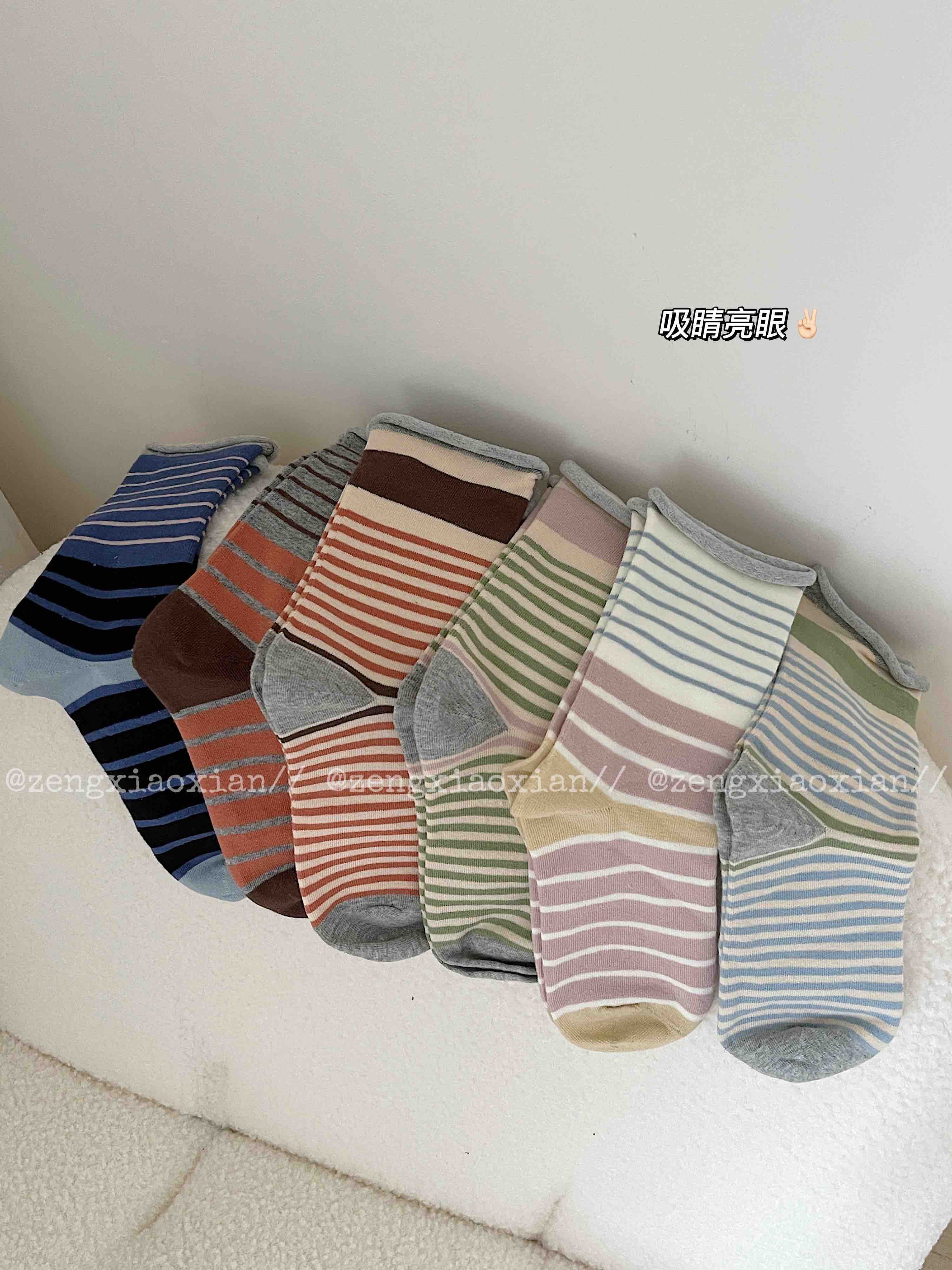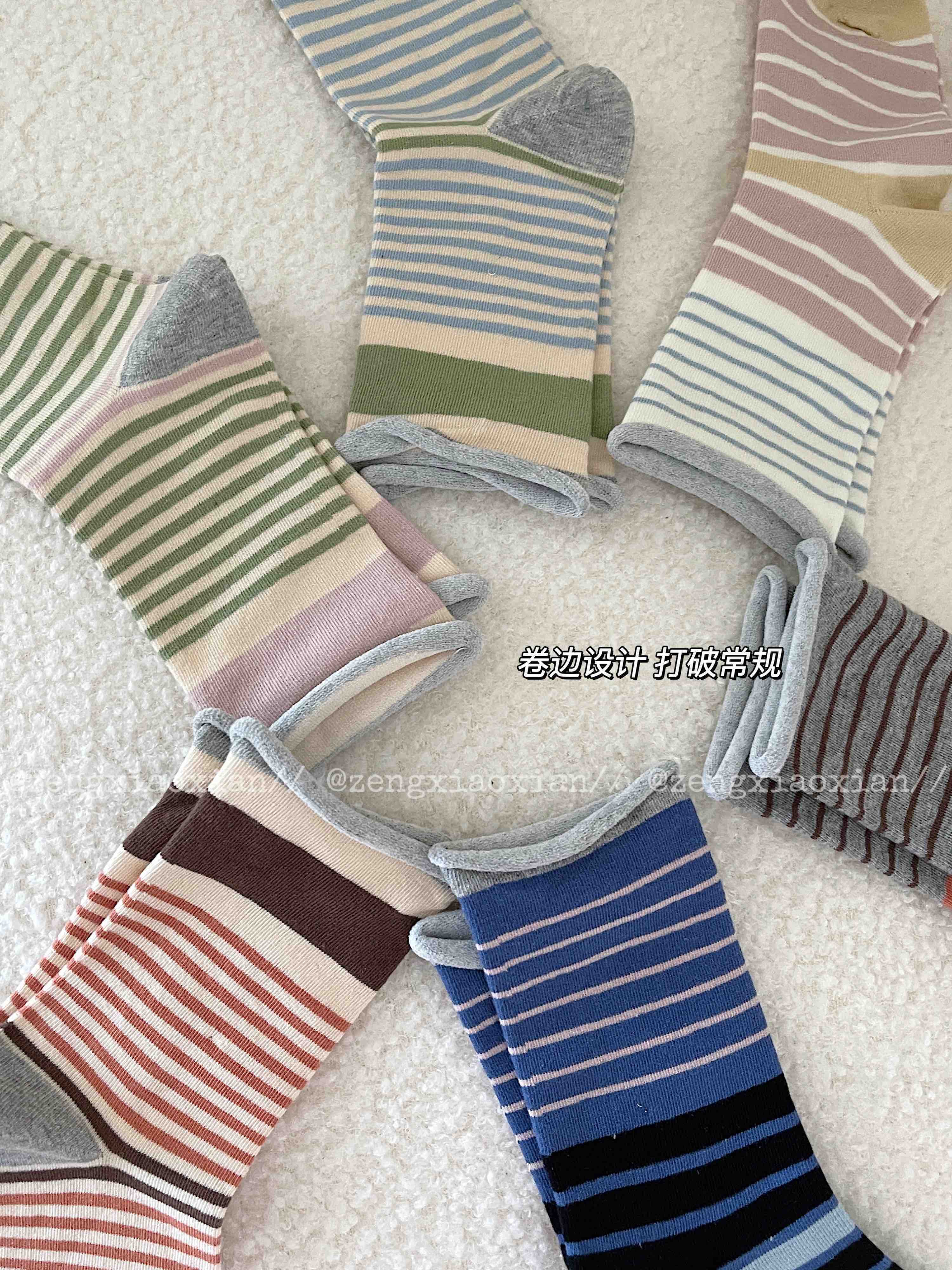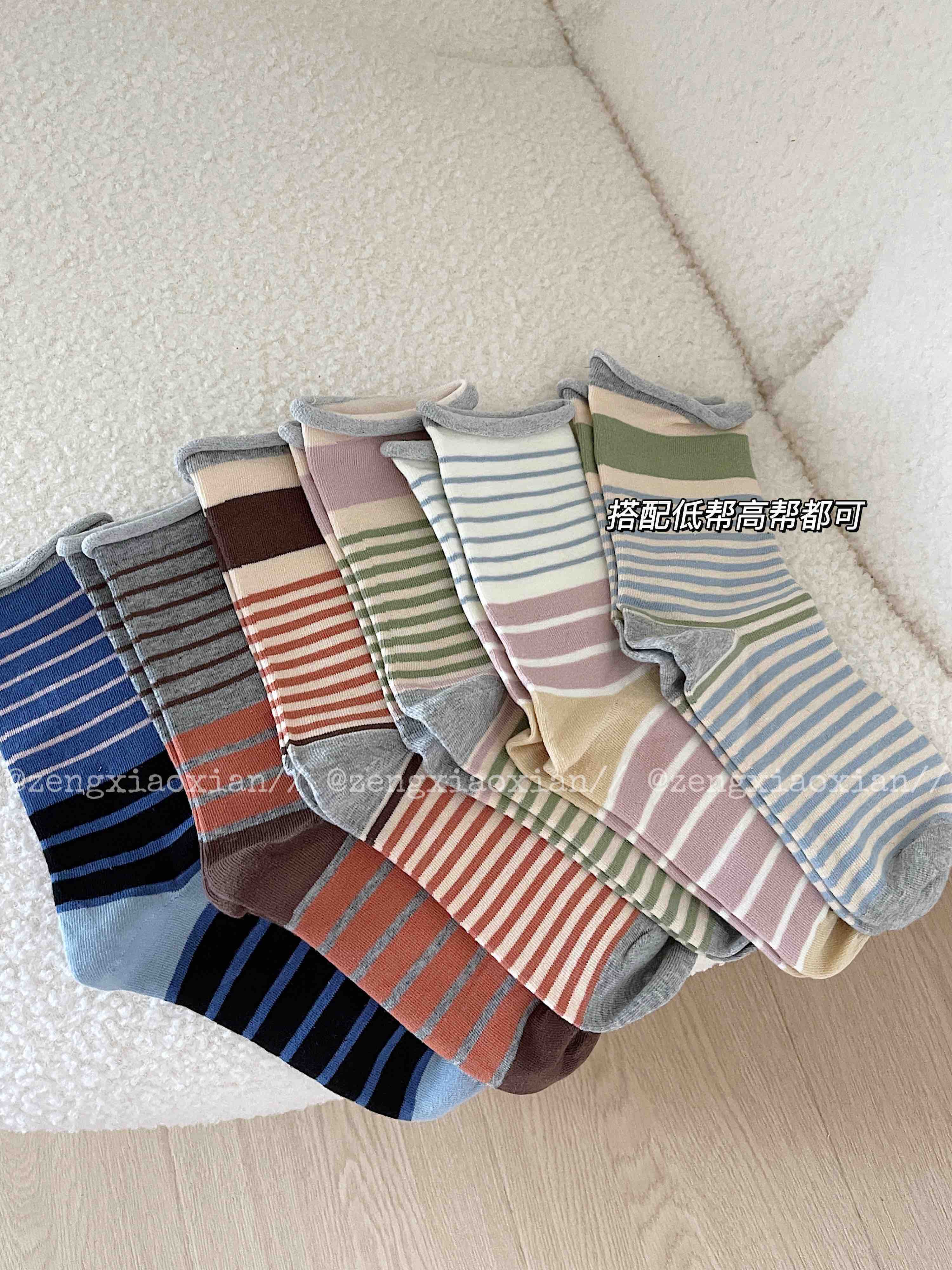 <曾小咸推荐> 卷边条纹ins风无骨堆堆袜