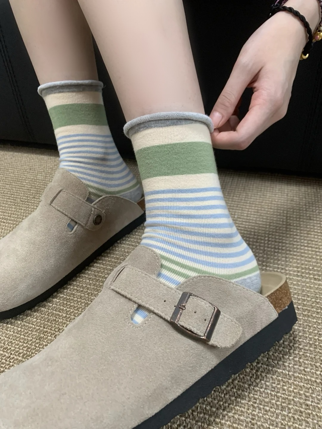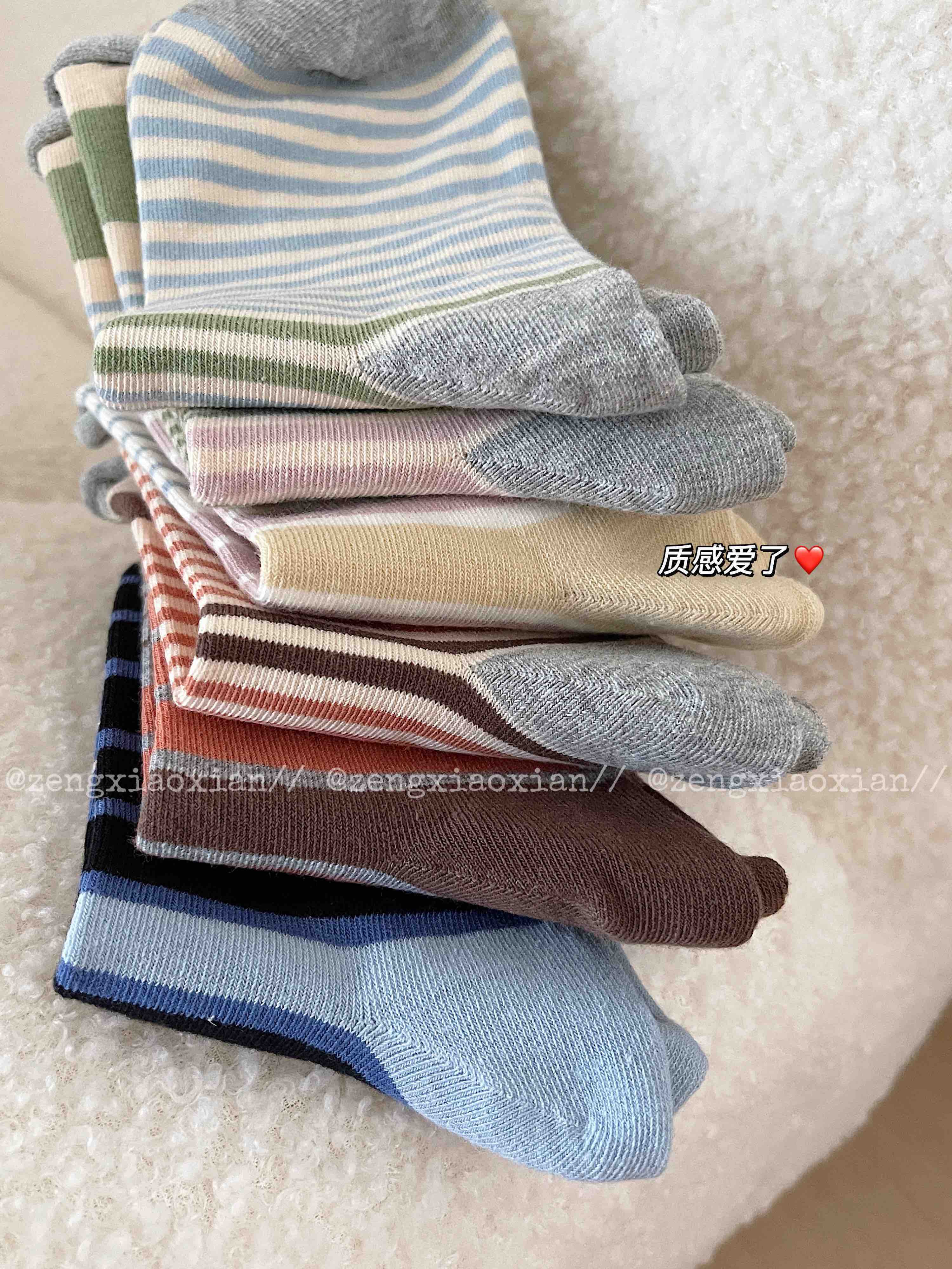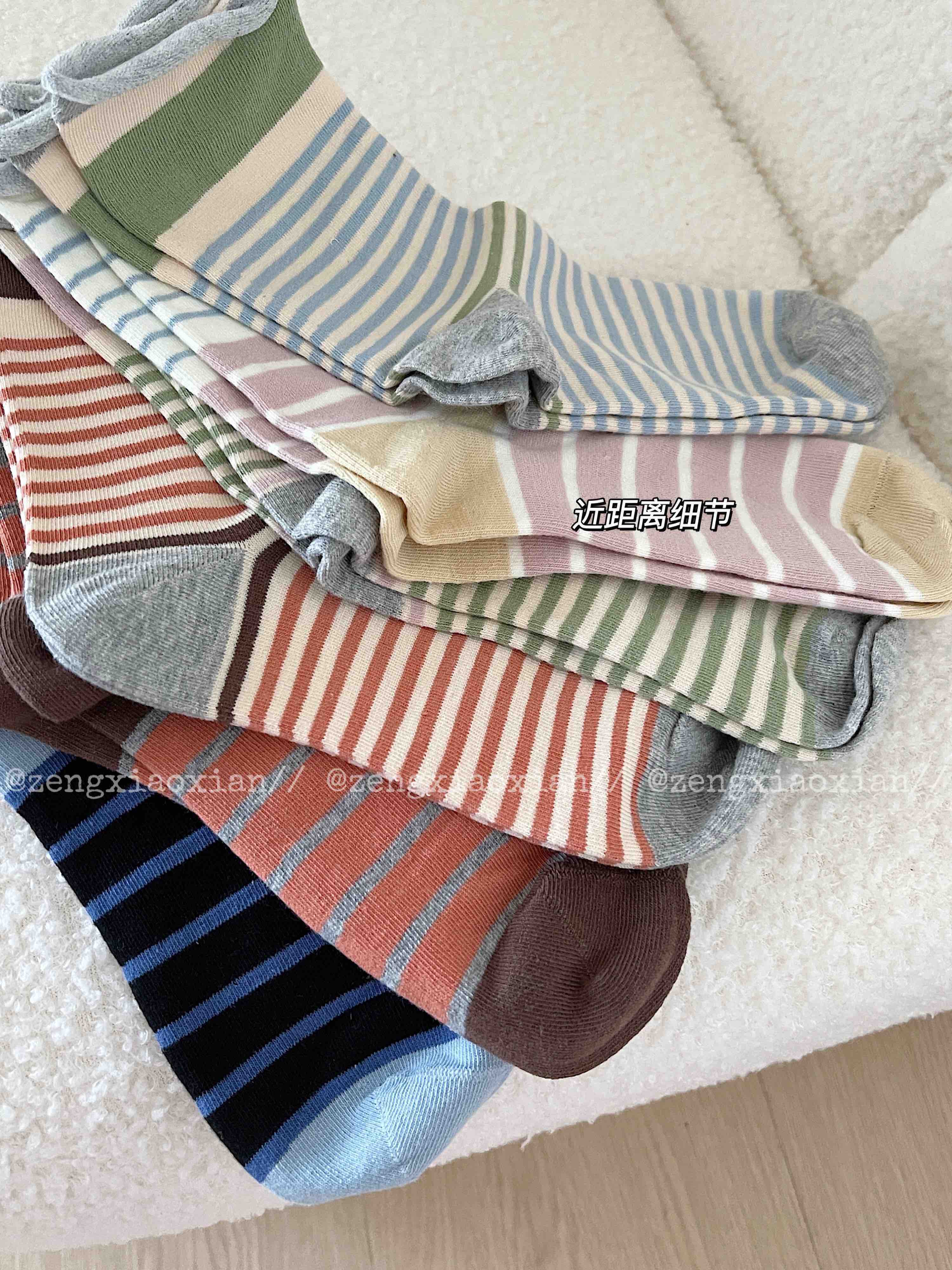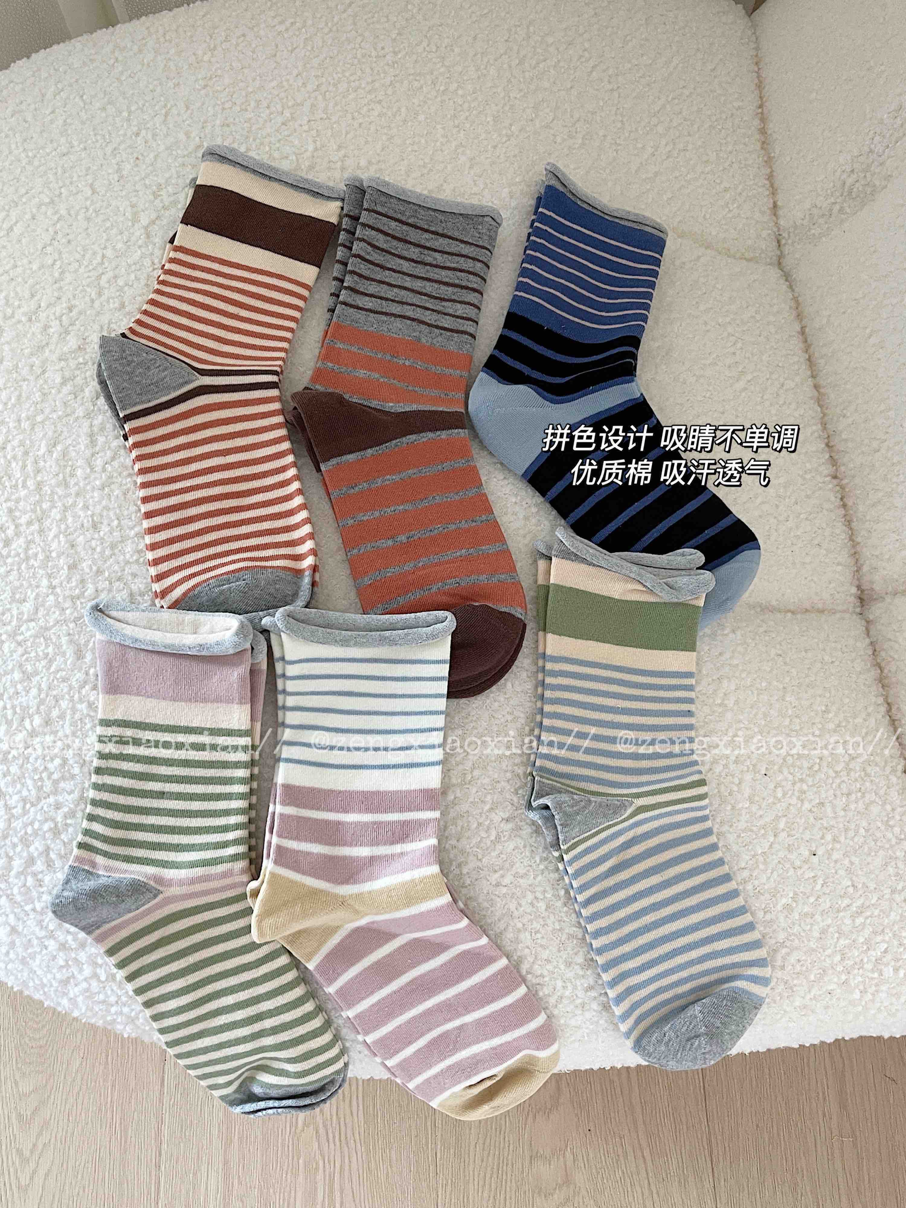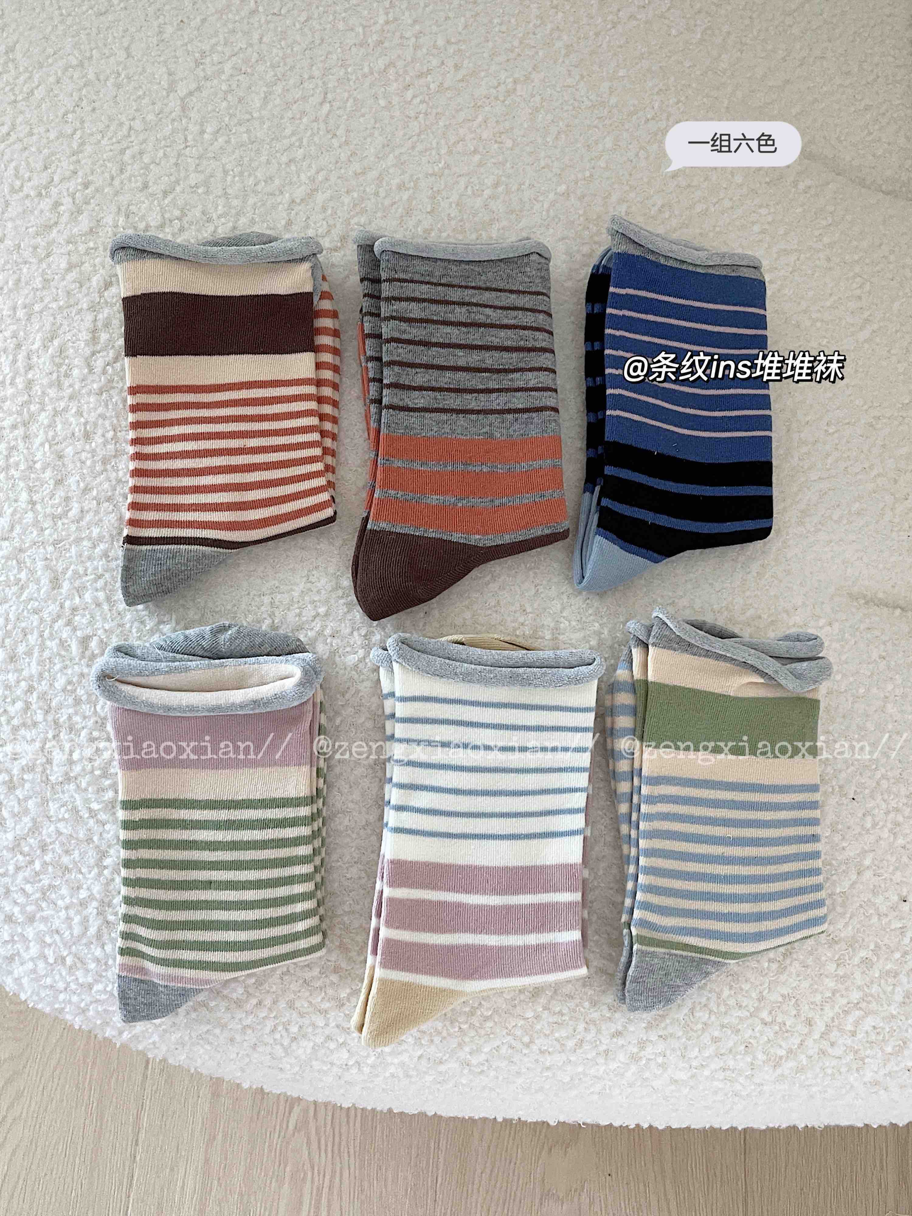 <曾小咸推荐> 卷边条纹ins风无骨堆堆袜