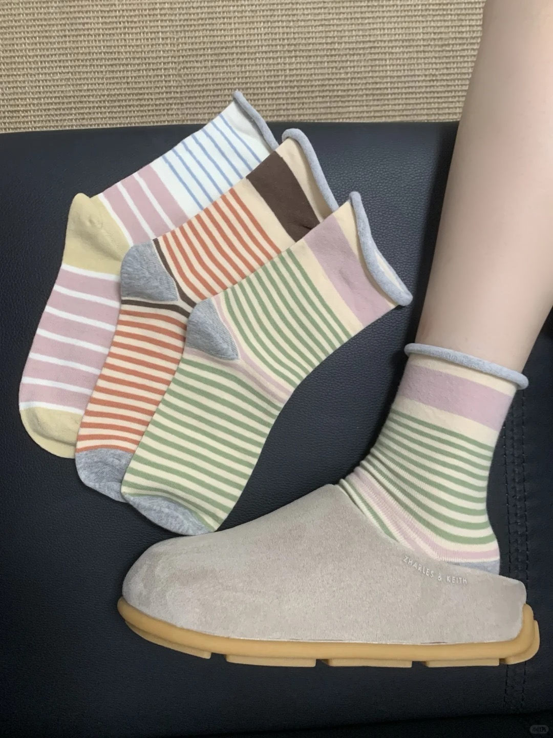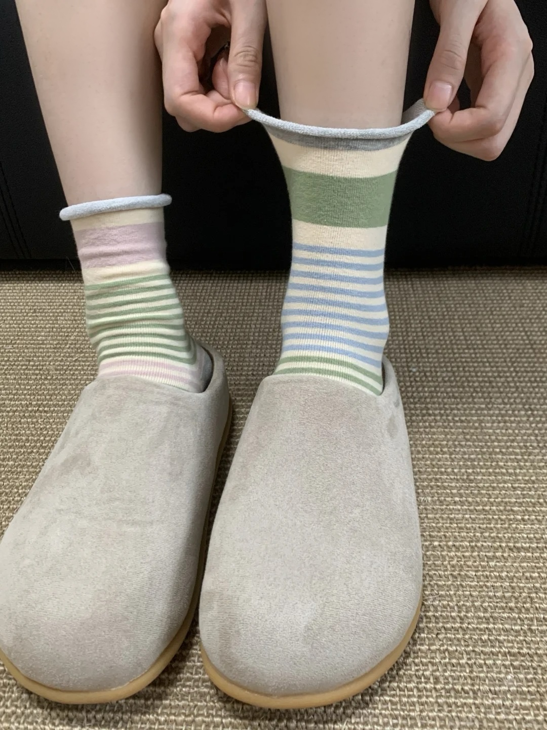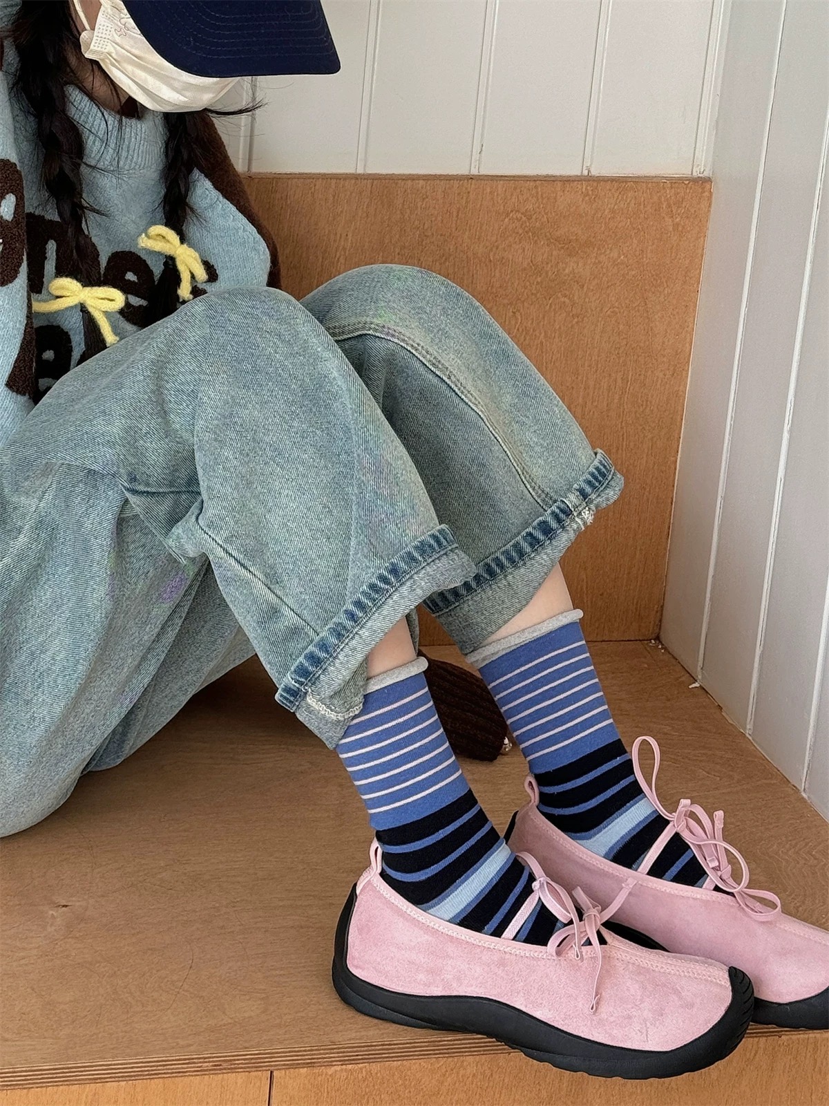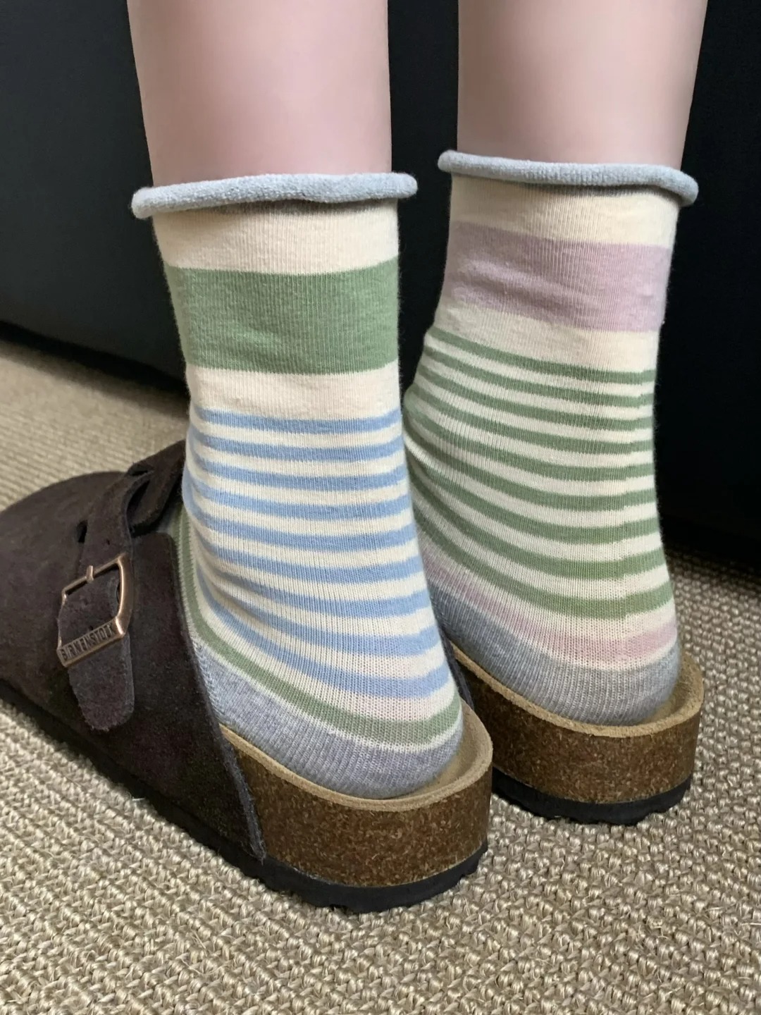 <曾小咸推荐> 卷边条纹ins风无骨堆堆袜
