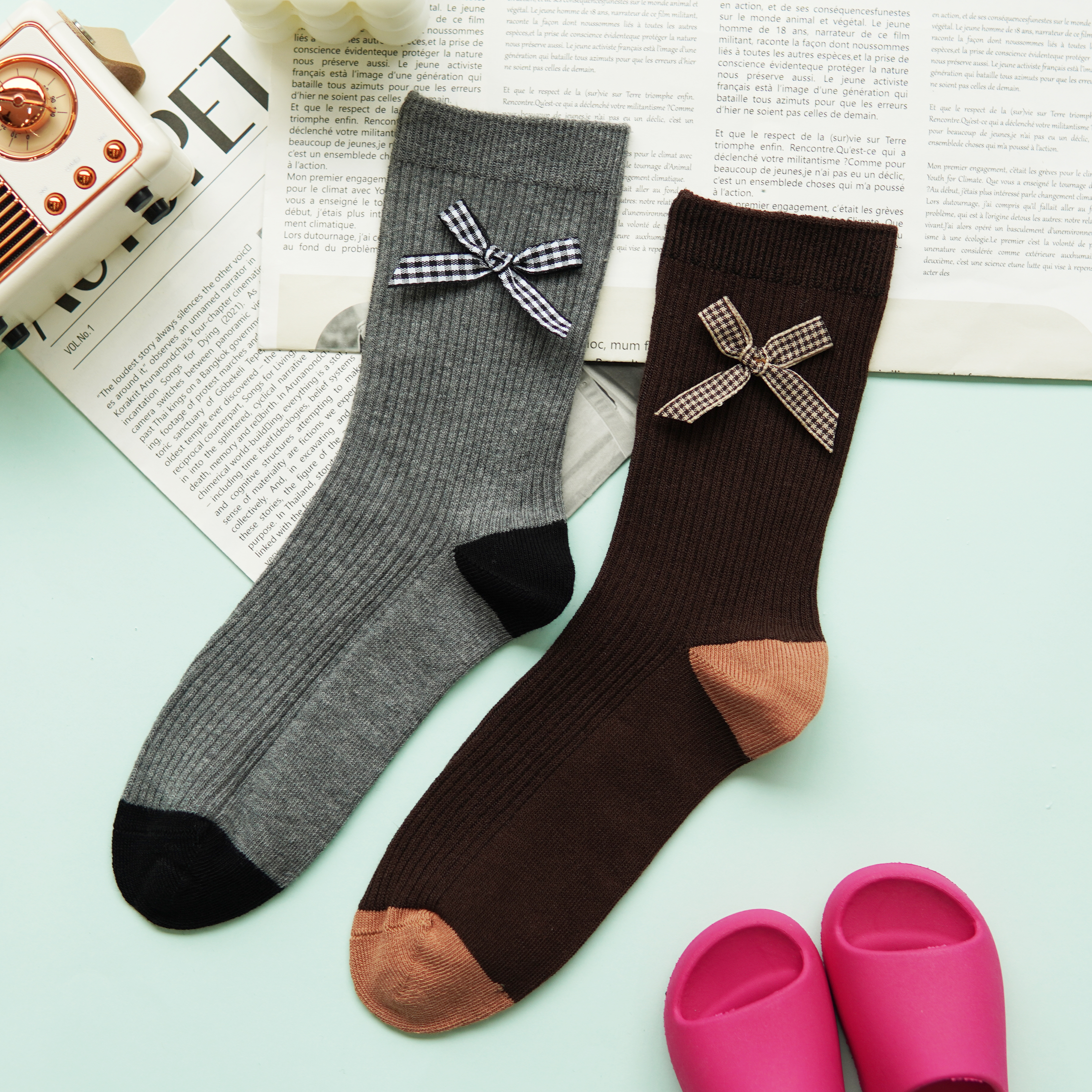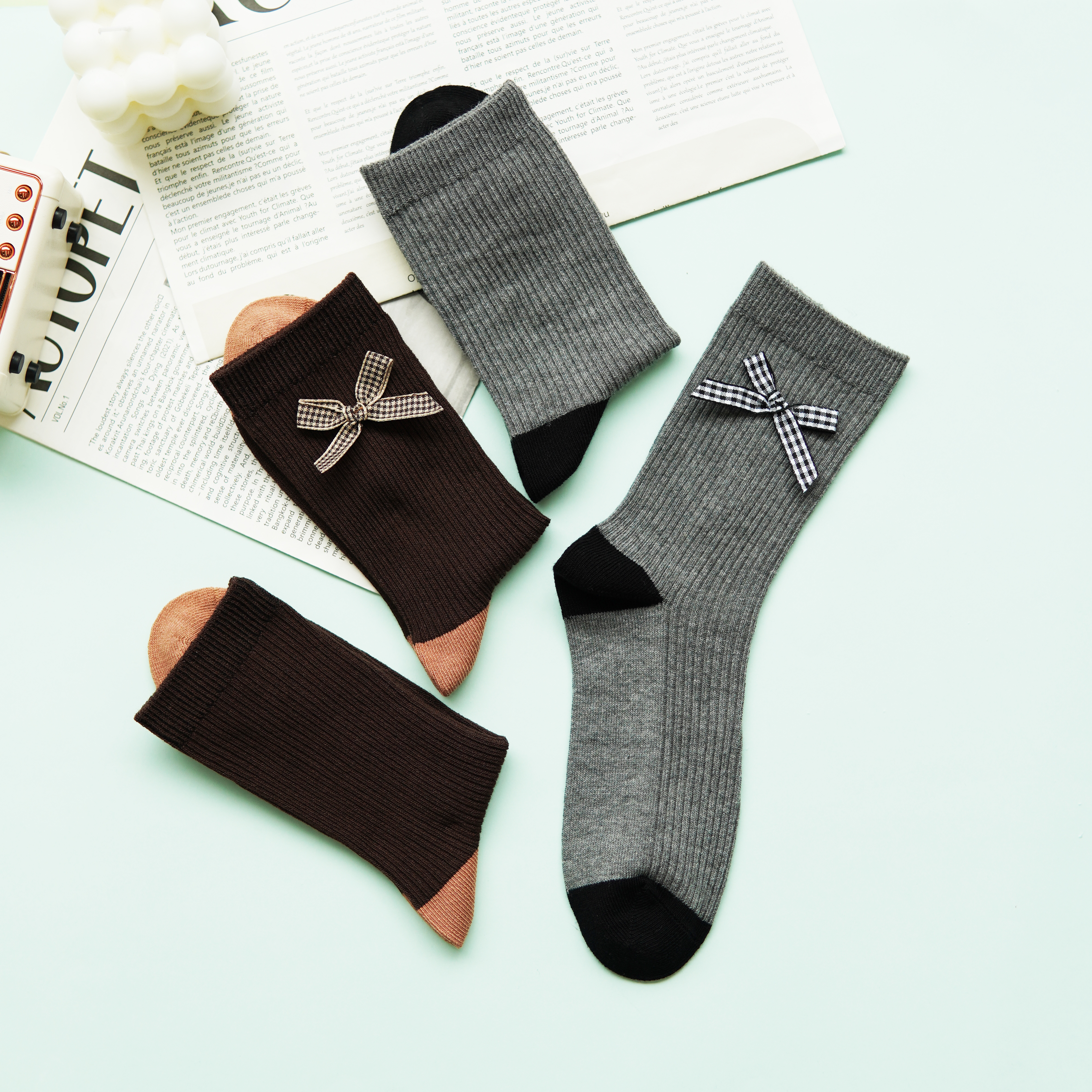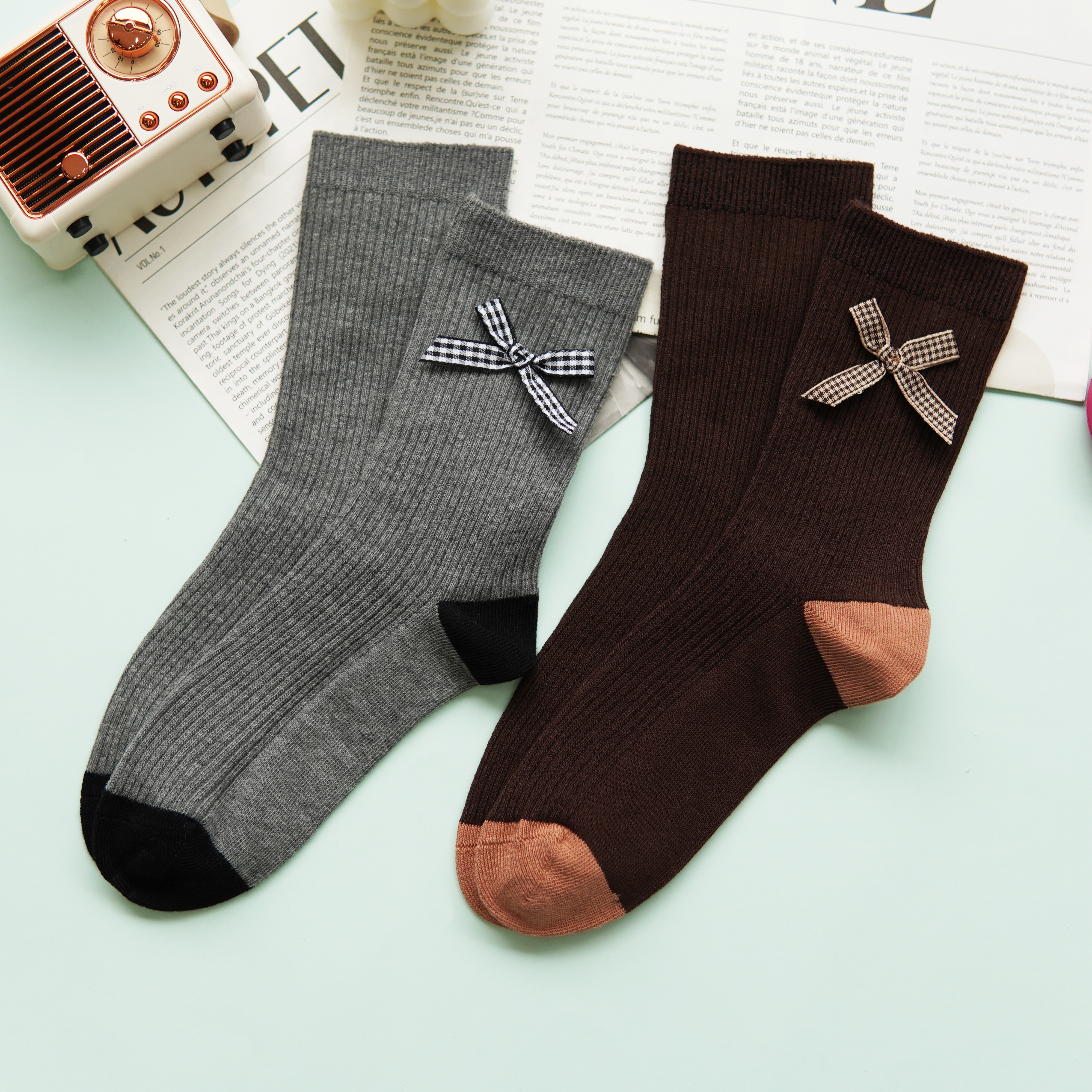 【59元3双】女士时尚袜蝴蝶结中长筒袜子女棉袜【1双装 2522502】