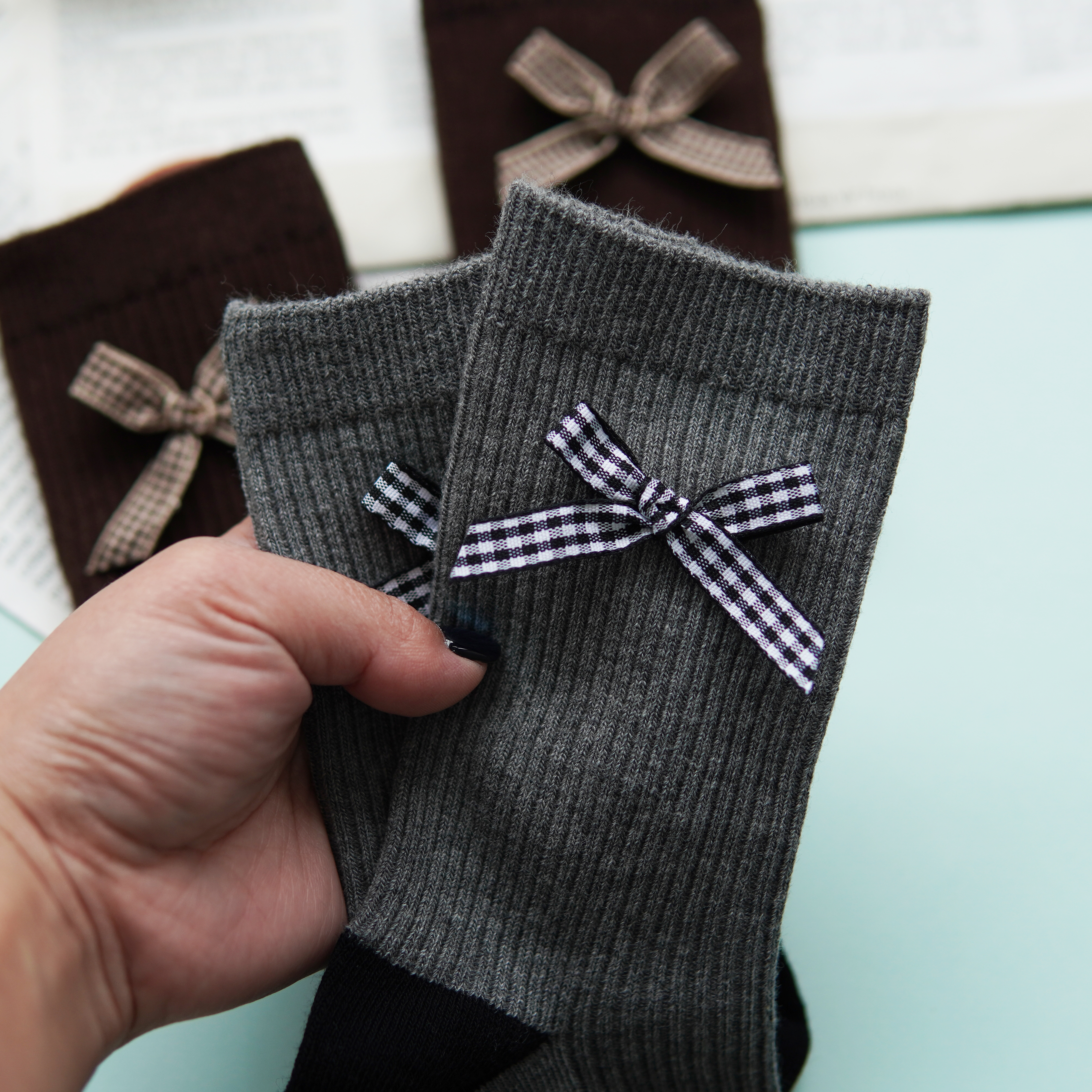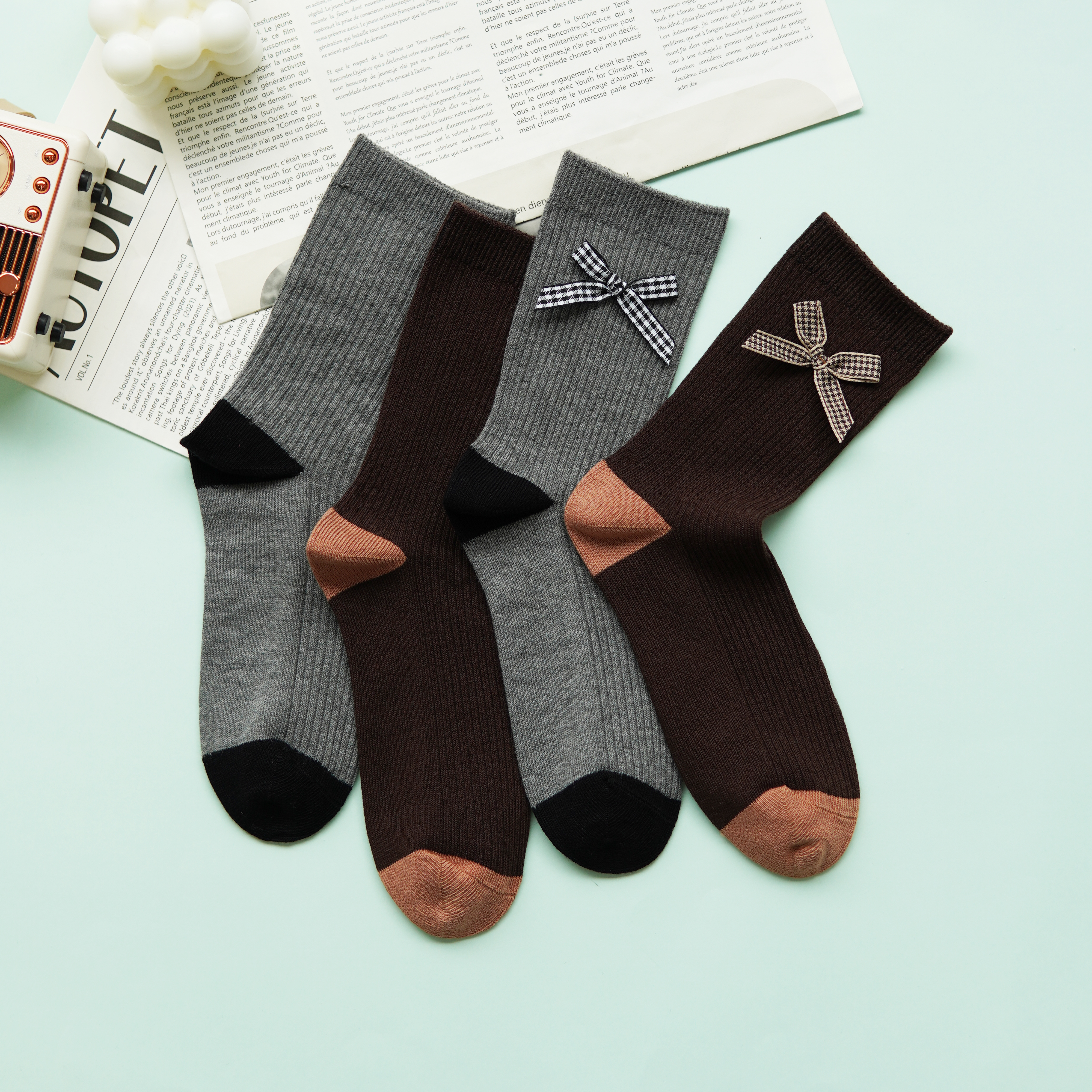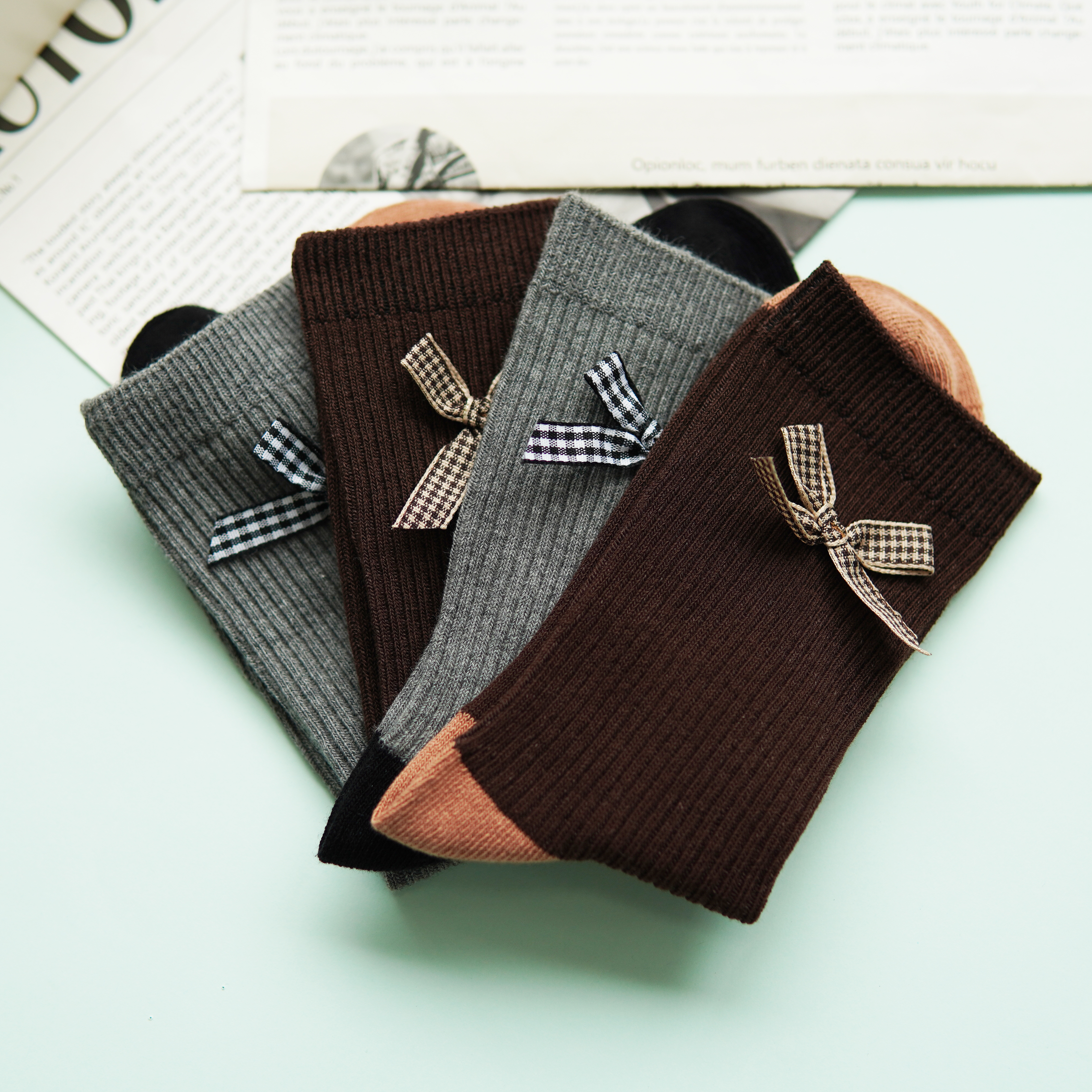 【59元3双】女士时尚袜蝴蝶结中长筒袜子女棉袜【1双装 2522502】