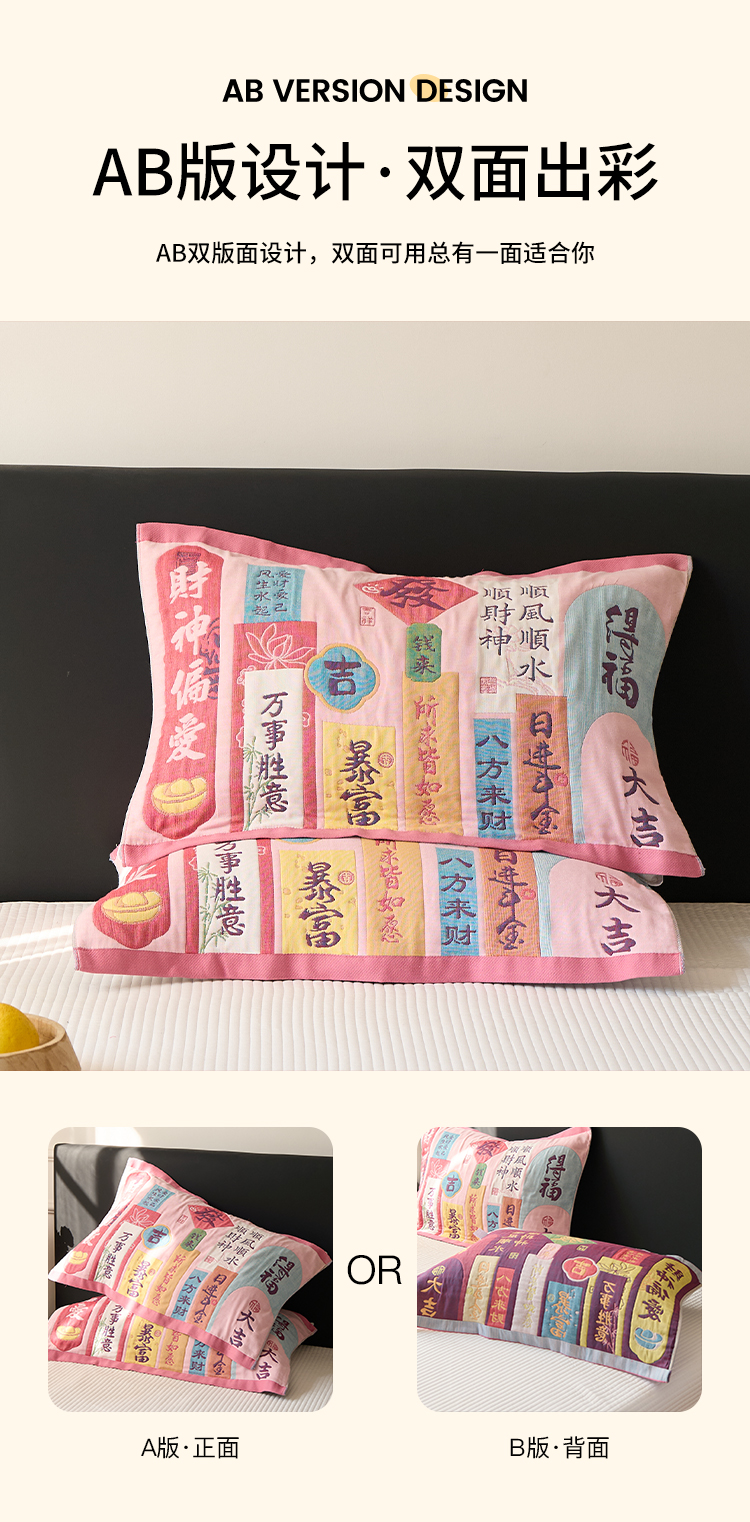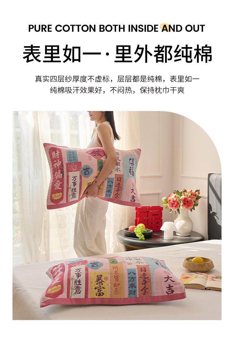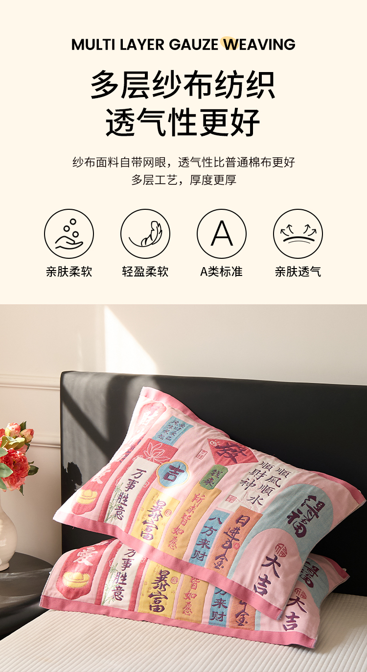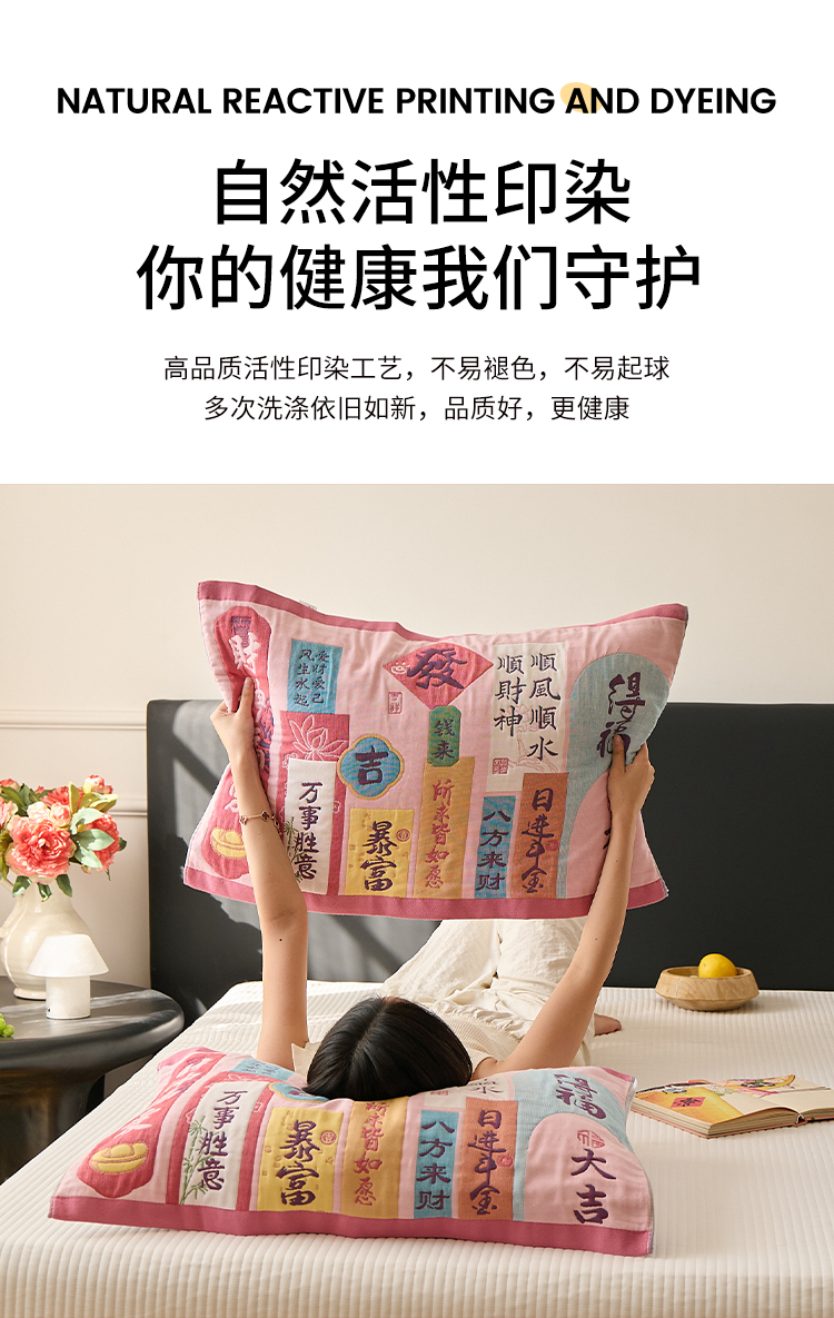 【品牌直发】加倍生活 A类纯棉纱布枕巾八层枕巾对装-發 2条装 马年限定系列 年货节焕新