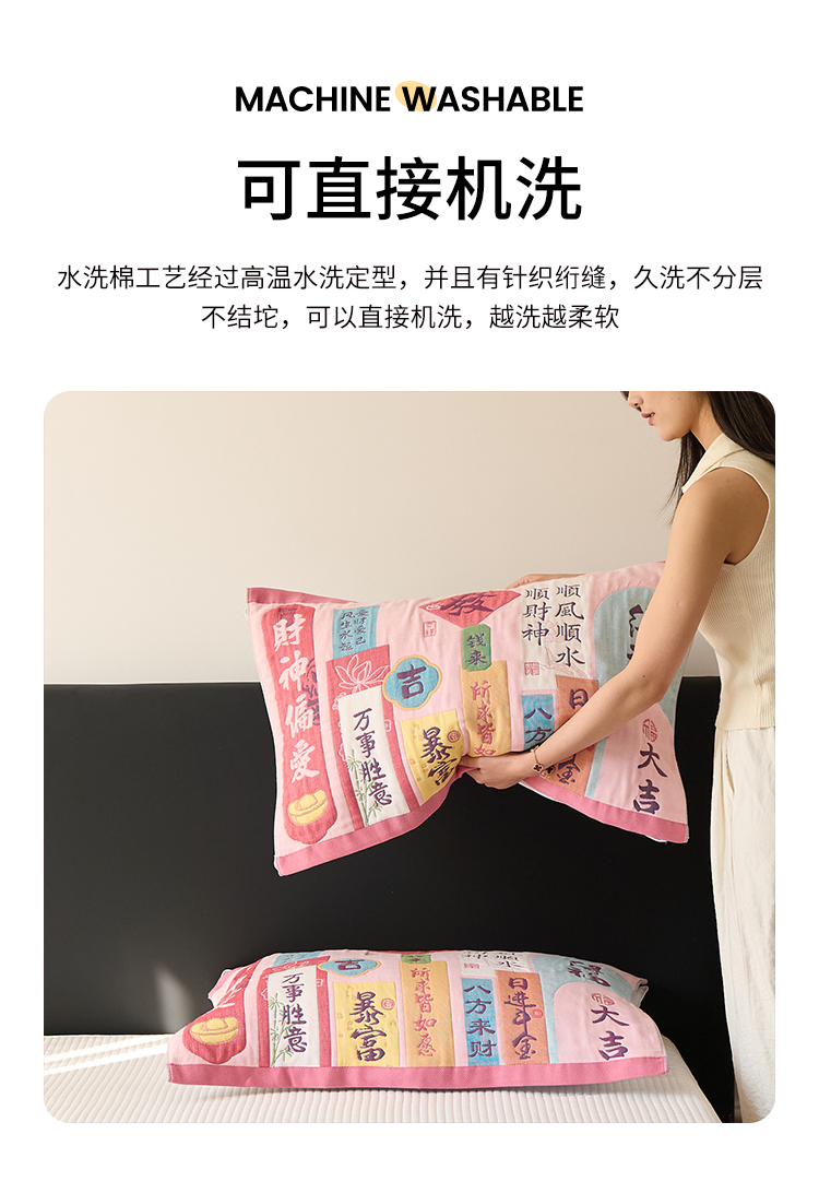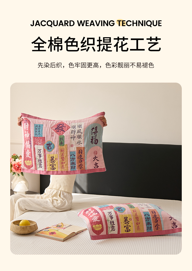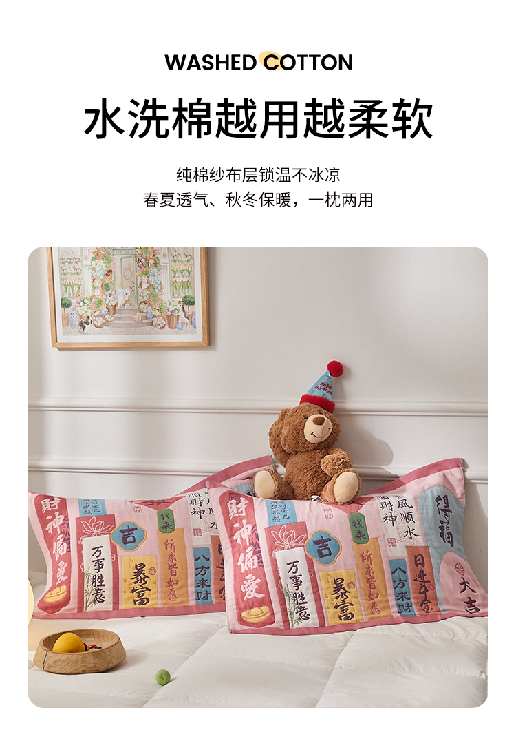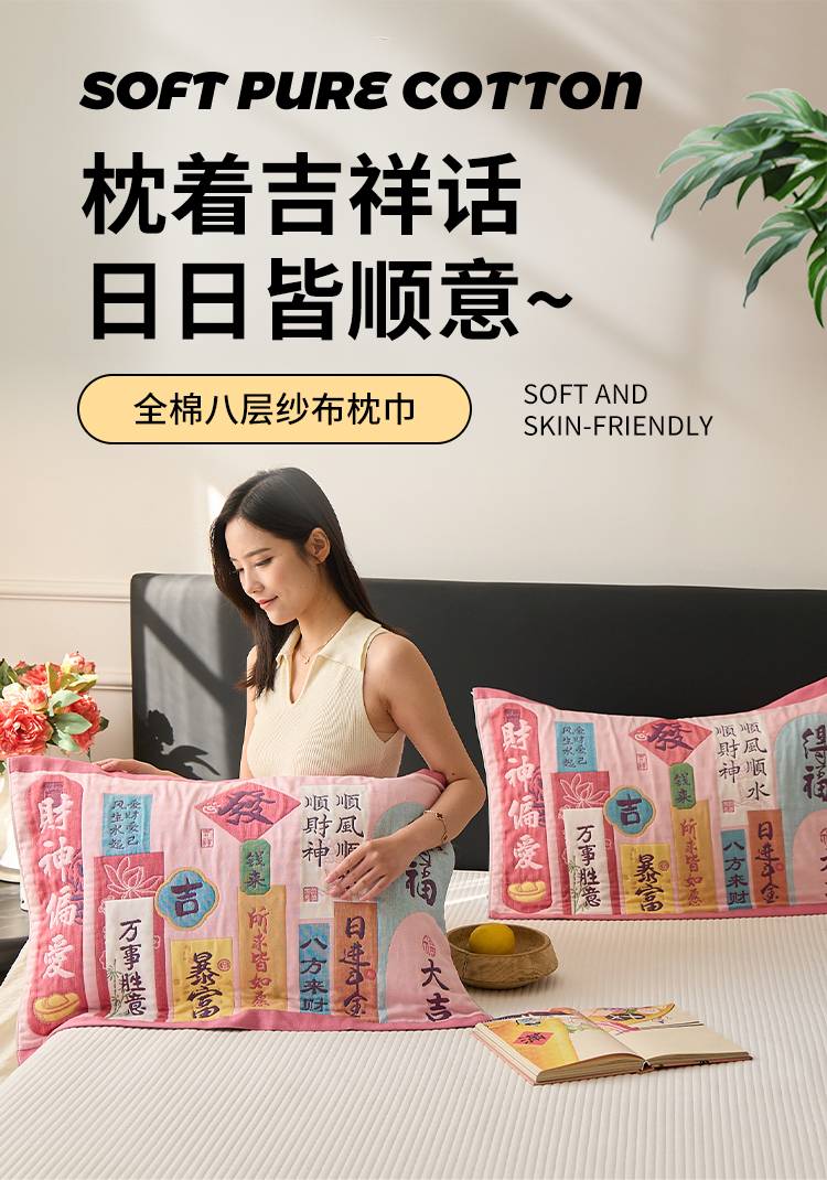 【品牌直发】加倍生活 A类纯棉纱布枕巾八层枕巾对装-發 2条装 马年限定系列 年货节焕新