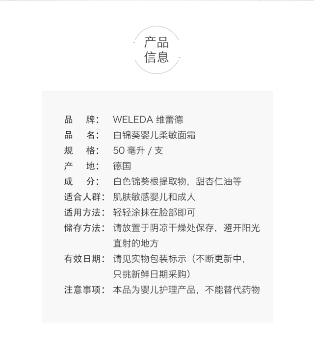 WELEDA维蕾德 白锦葵婴儿敏感肌面霜 50ml
