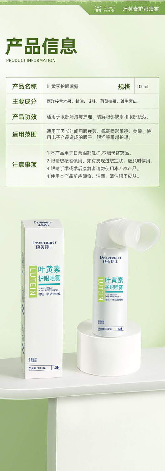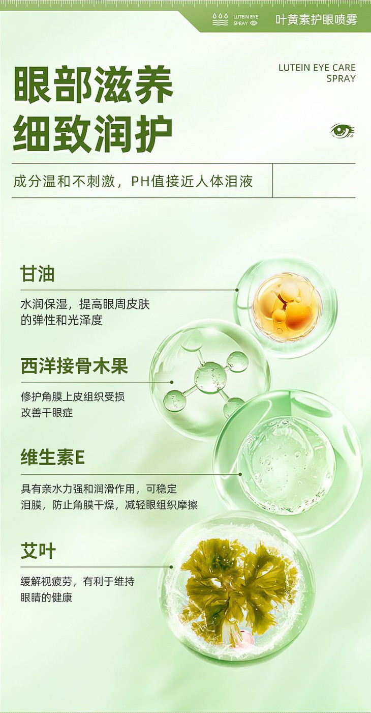 【叶黄素护眼喷雾】改善干涩酸胀红血丝疲劳黑眼圈深层清洁护眼喷雾