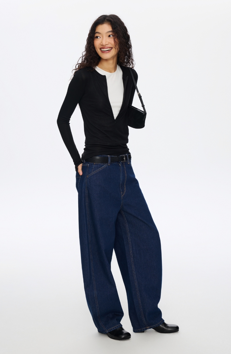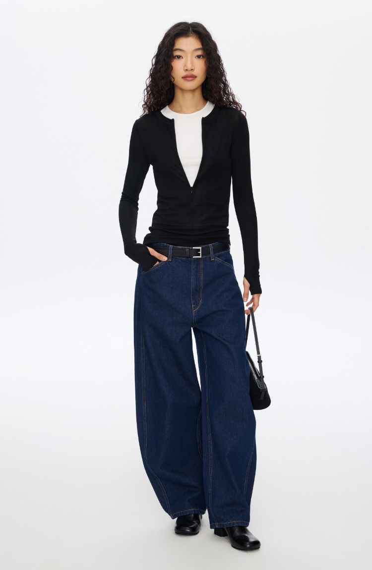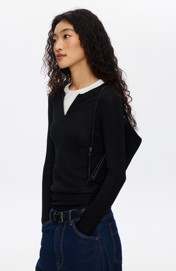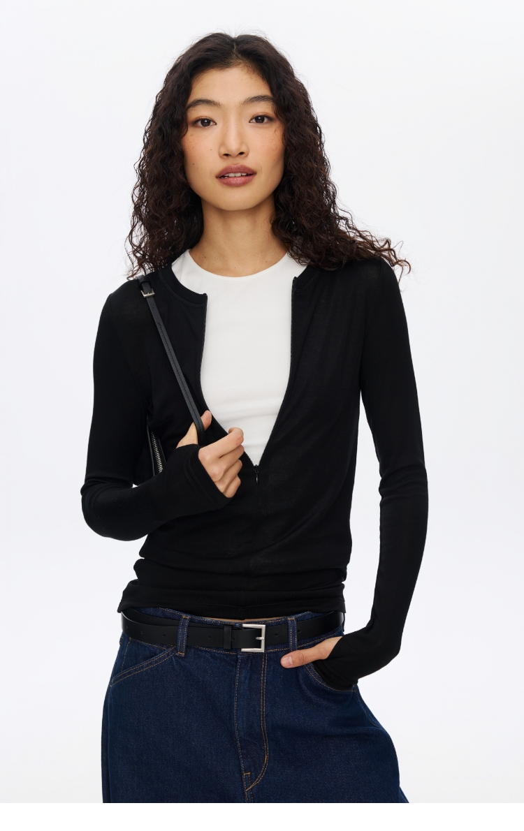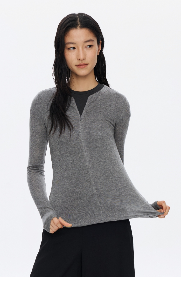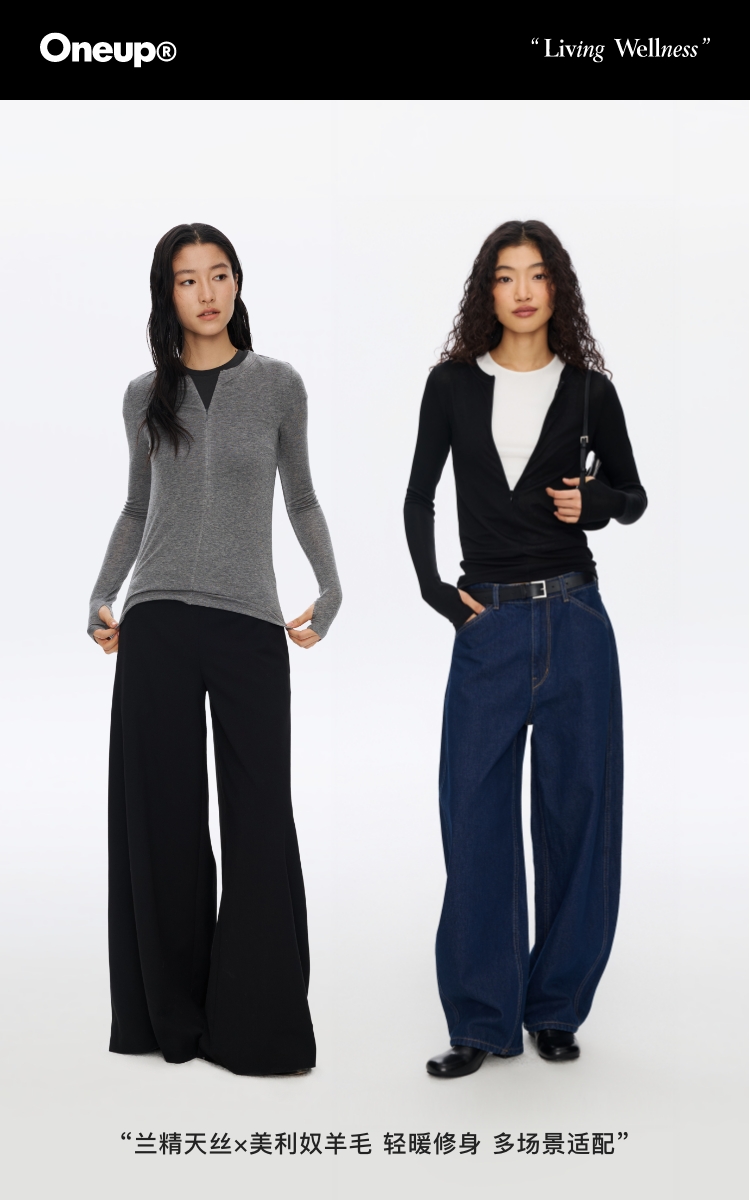 Oneup羊毛半拉链圆领修身长袖