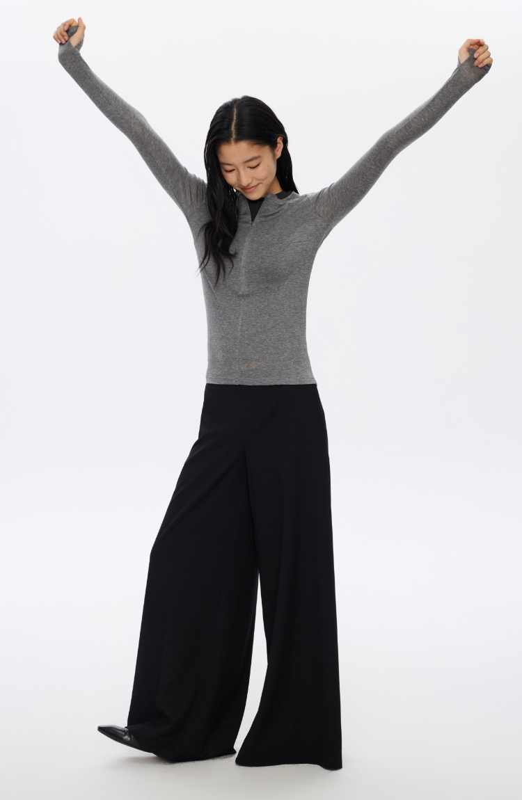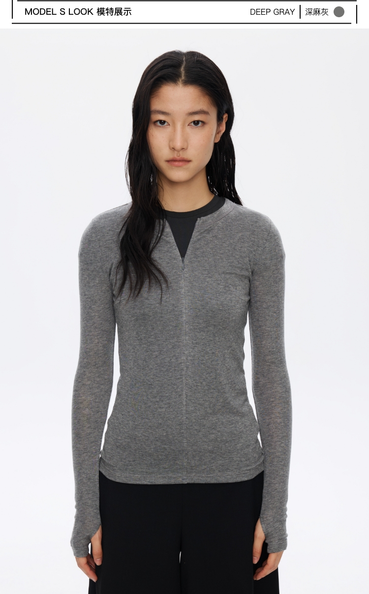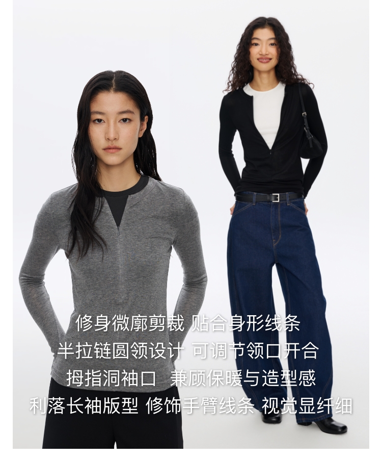 羊毛半拉链圆领修身长袖