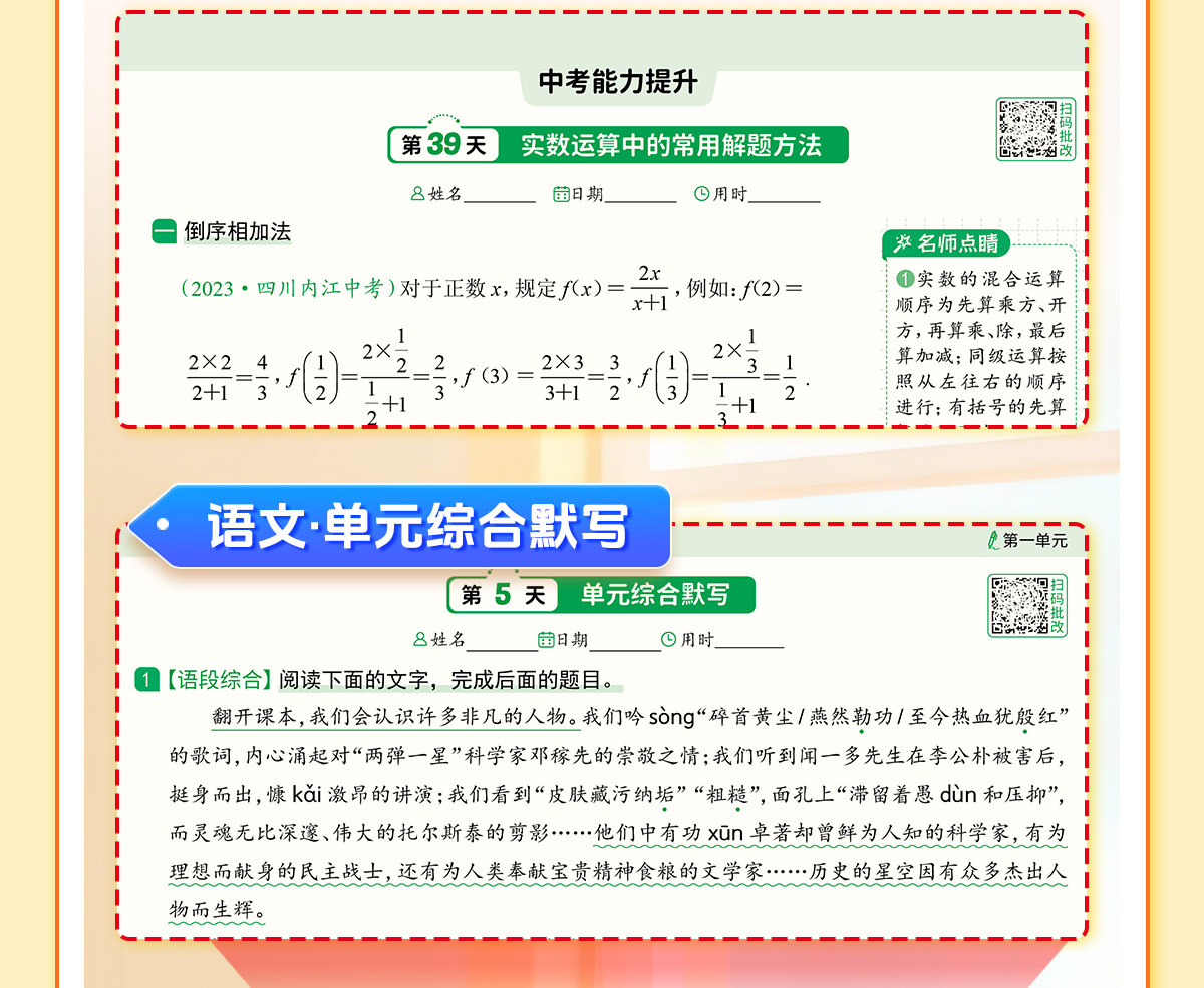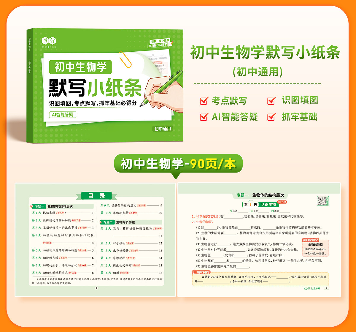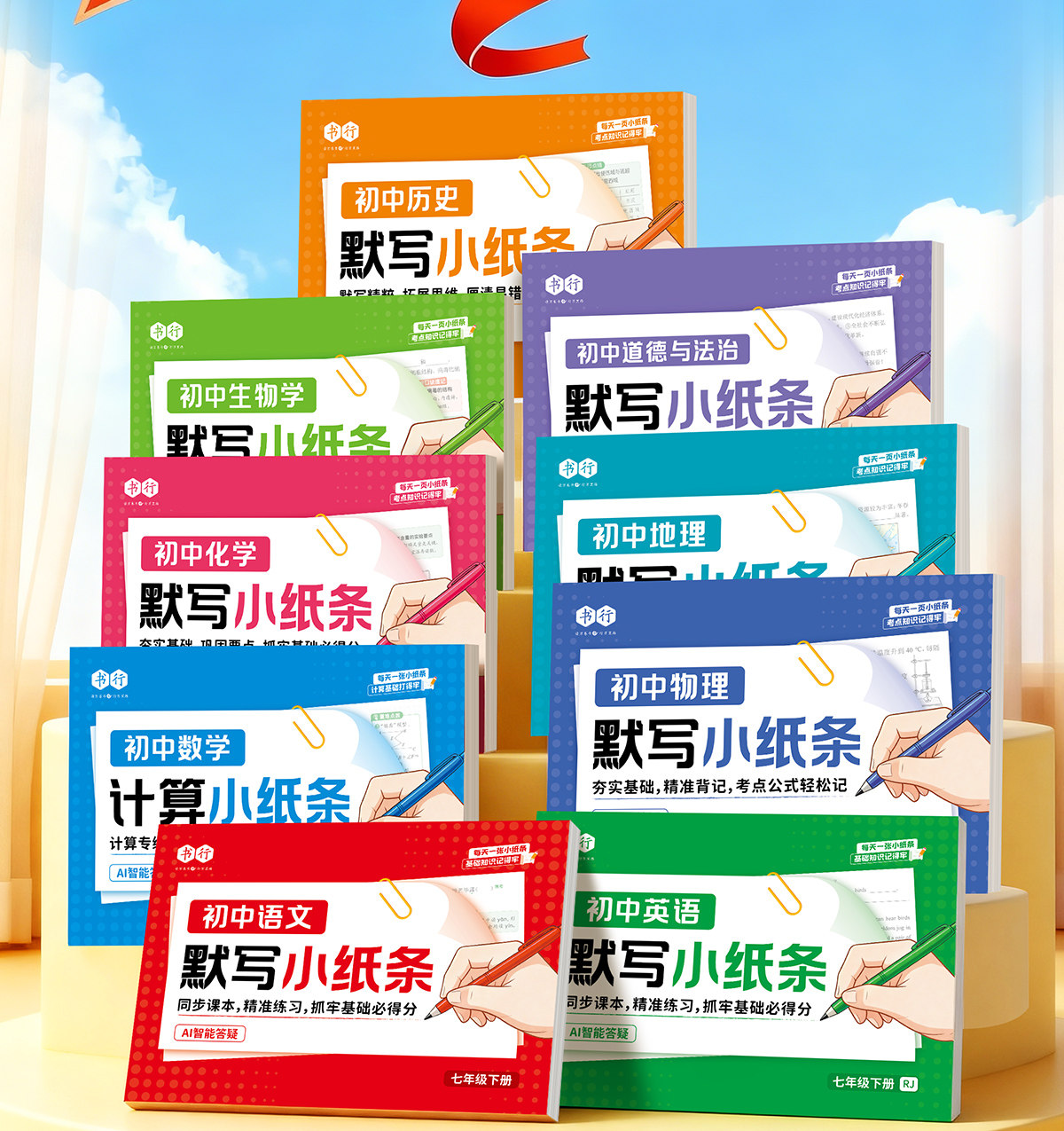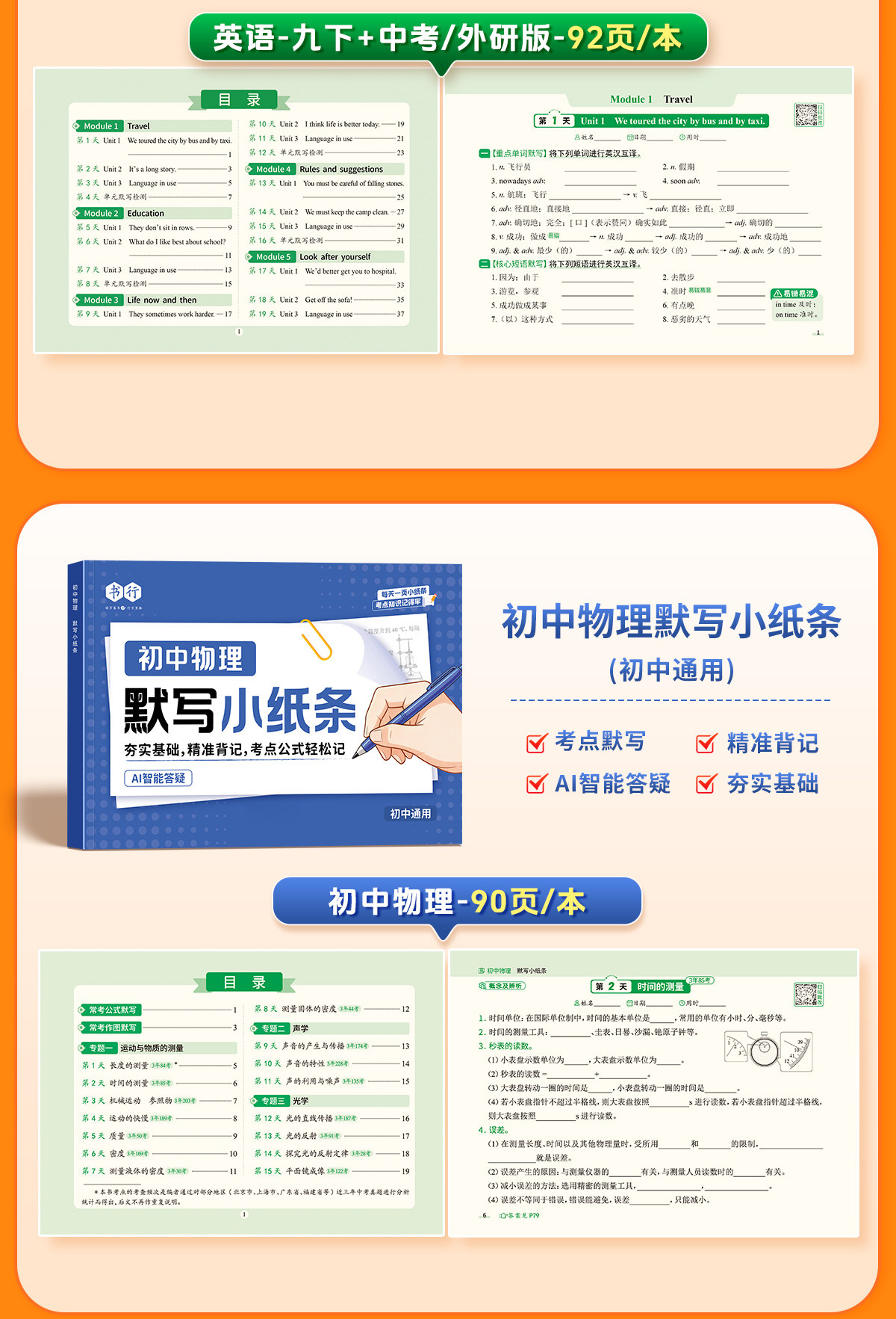 初中默写小纸条语数英同步默写中考物理化学生物历史地理道德与法制同步教材考点默写综合检测智能批改