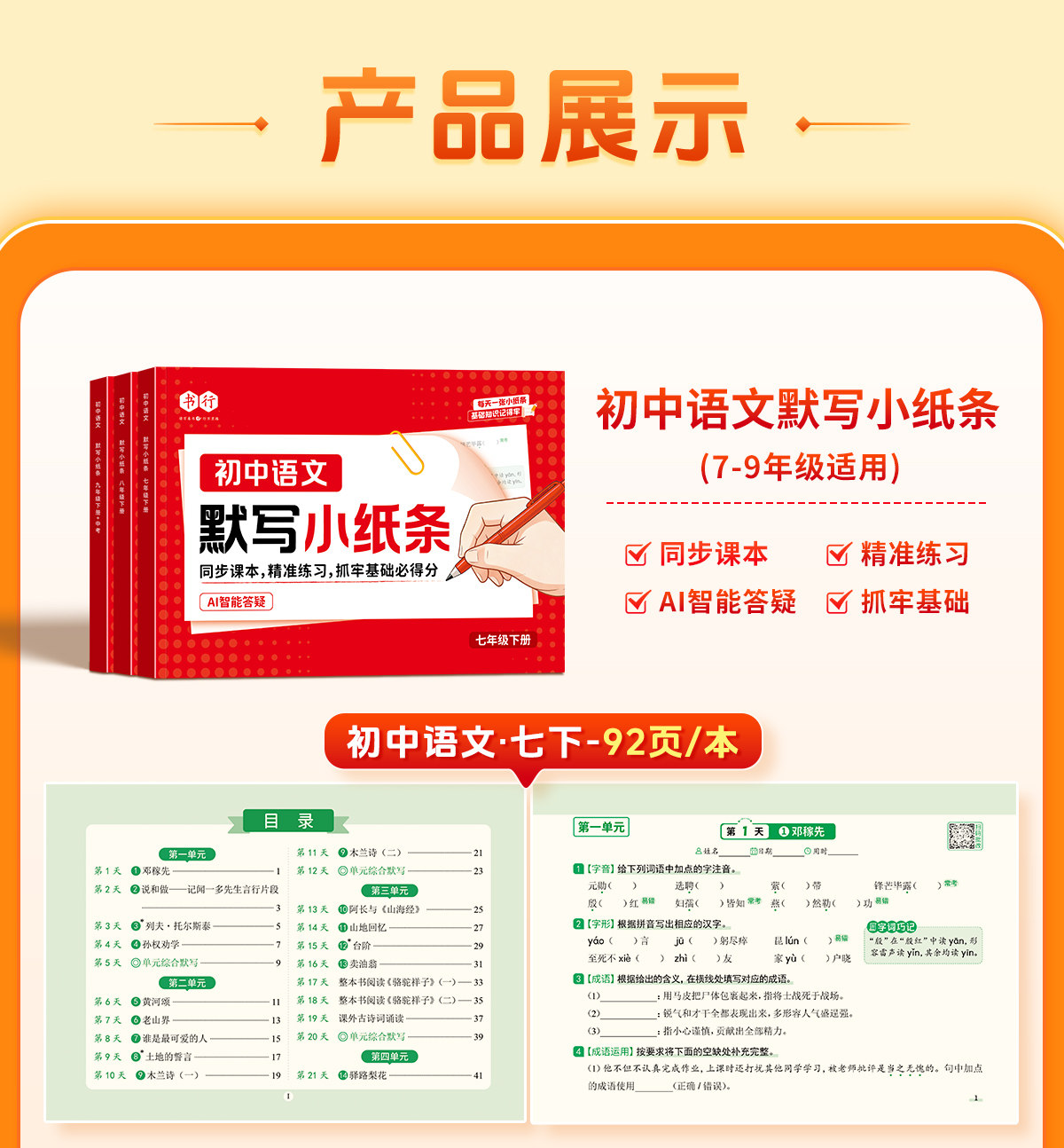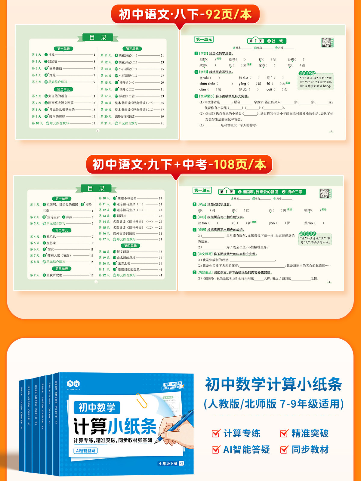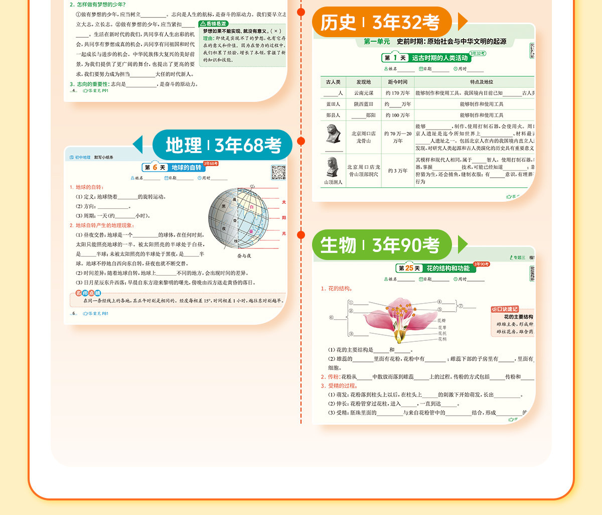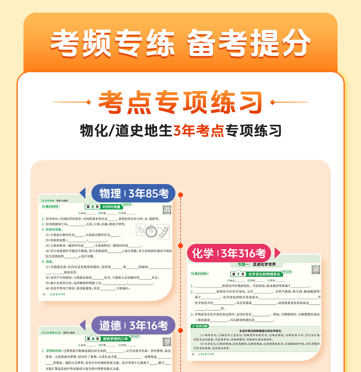 初中默写小纸条语数英同步默写中考物理化学生物历史地理道德与法制同步教材考点默写综合检测智能批改