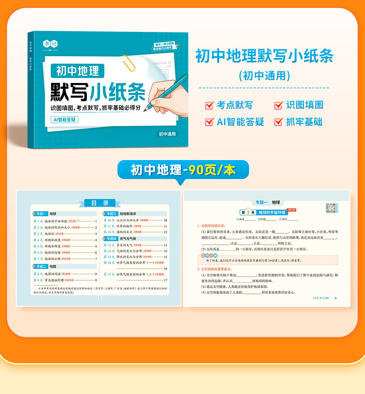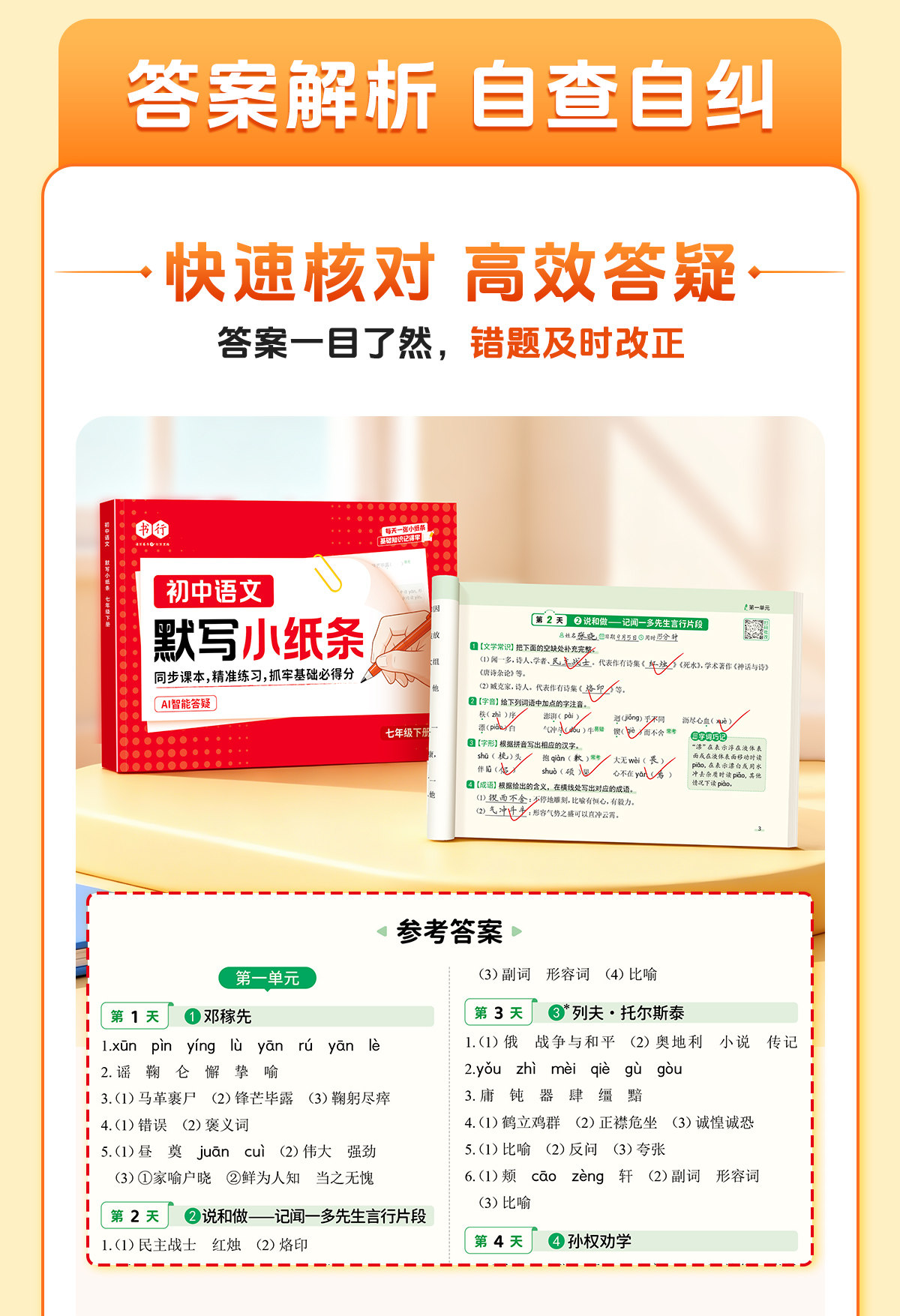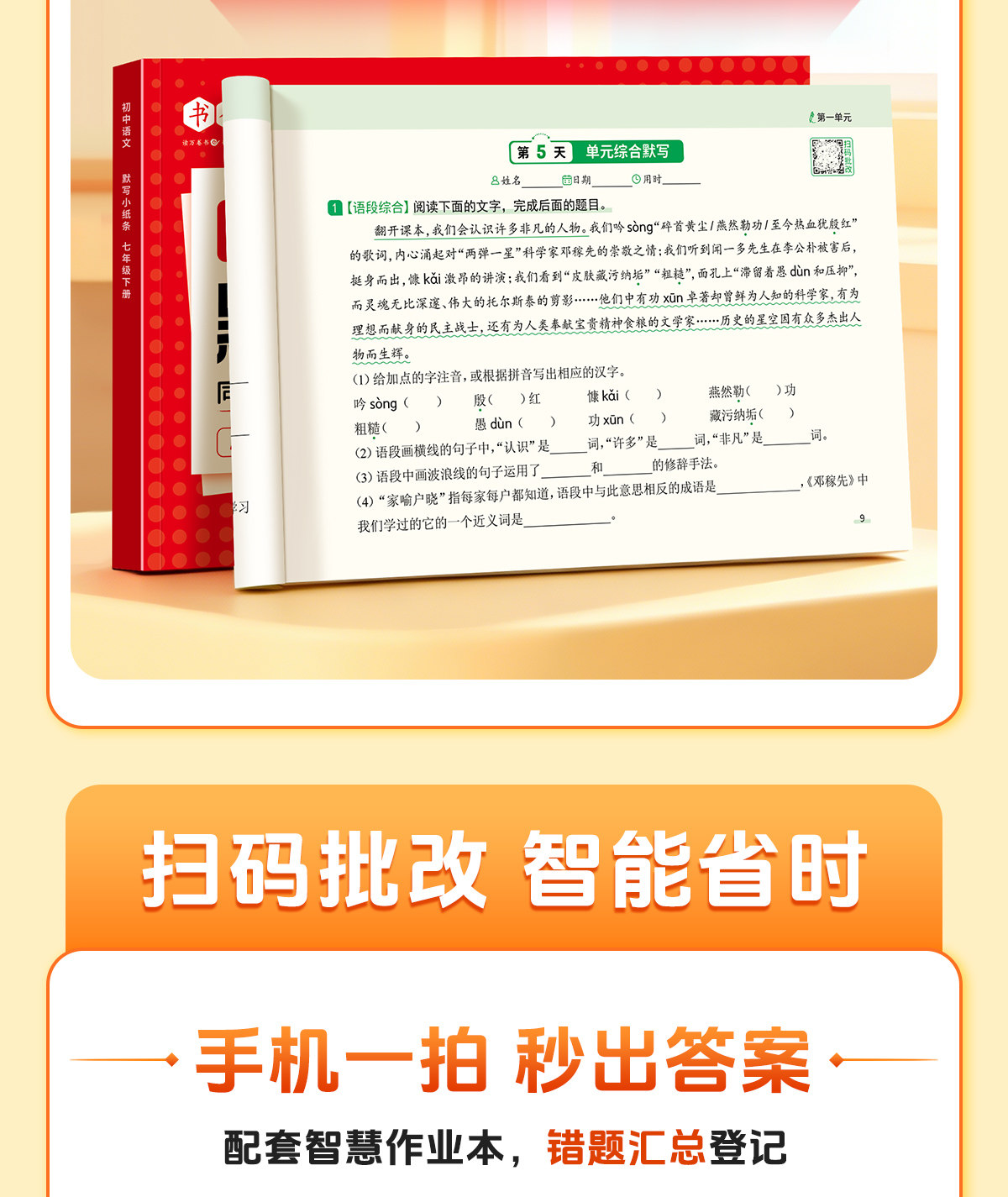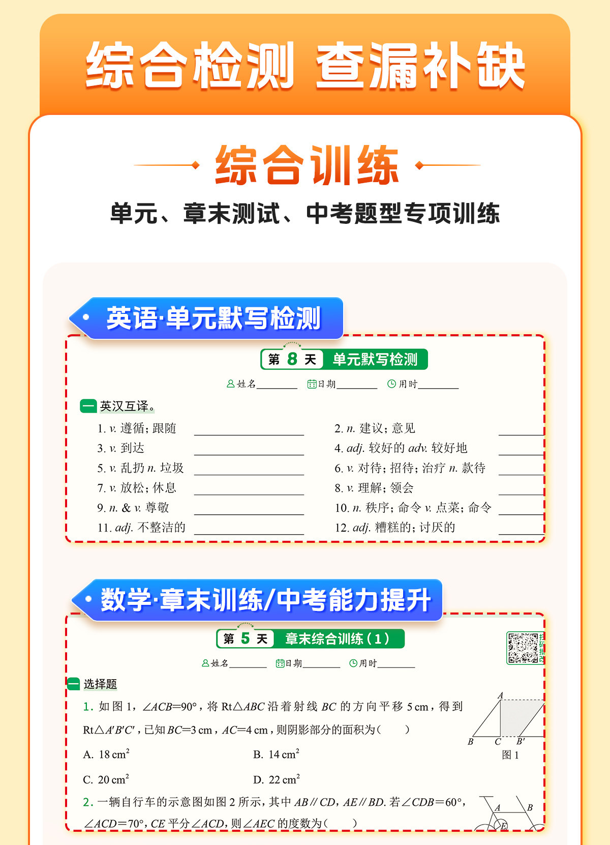 初中默写小纸条语数英同步默写中考物理化学生物历史地理道德与法制同步教材考点默写综合检测智能批改
