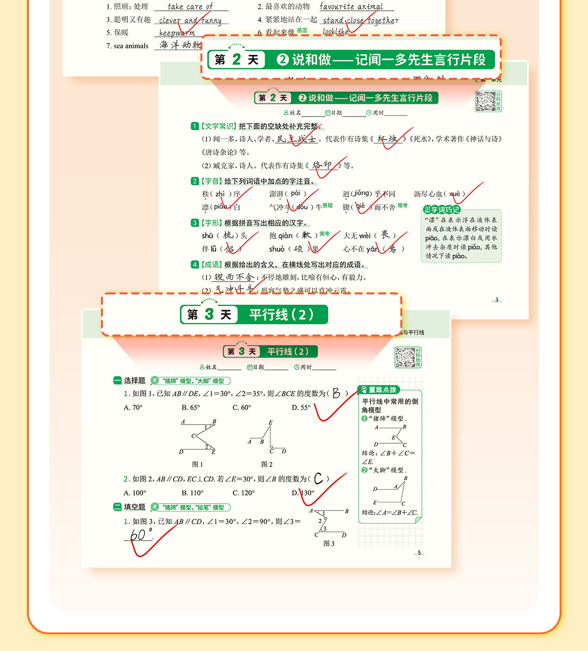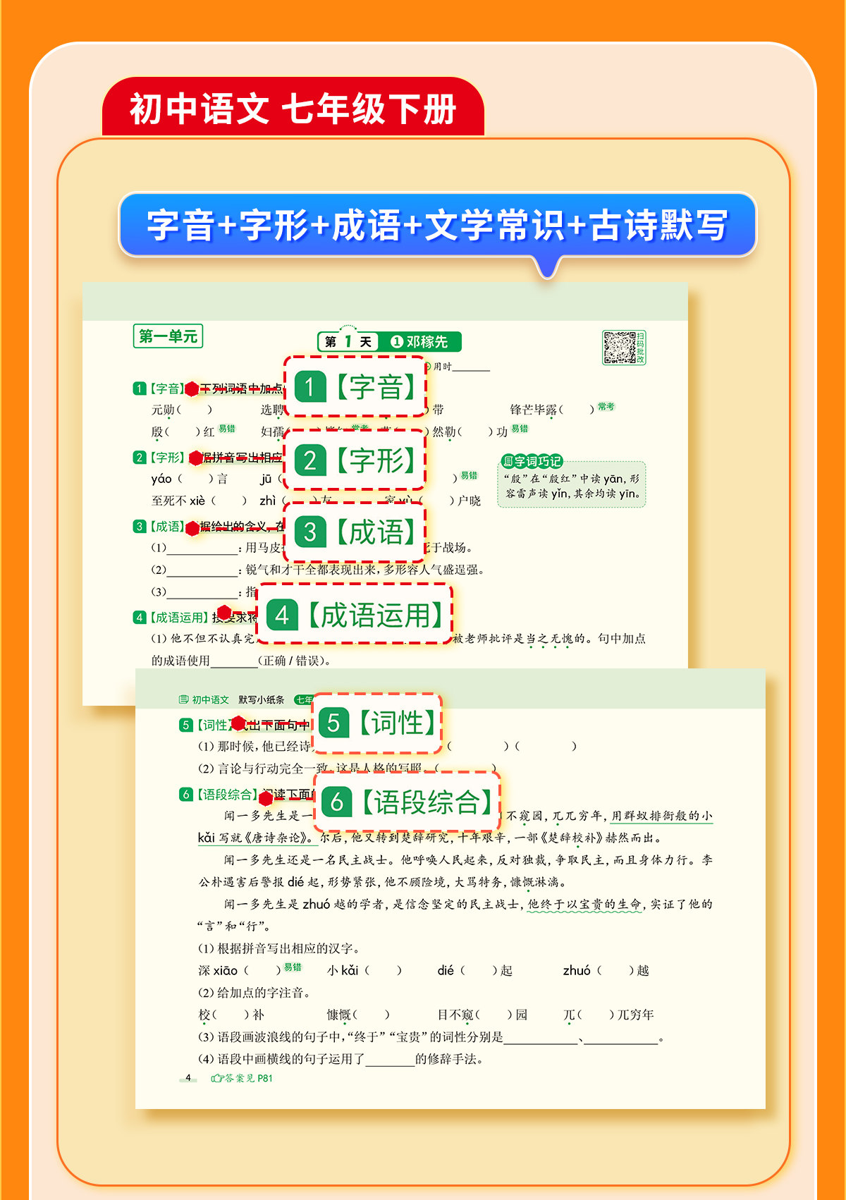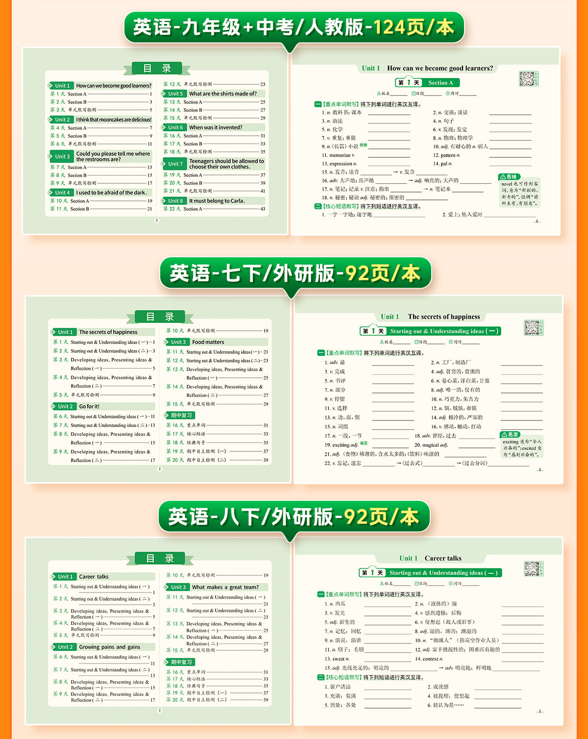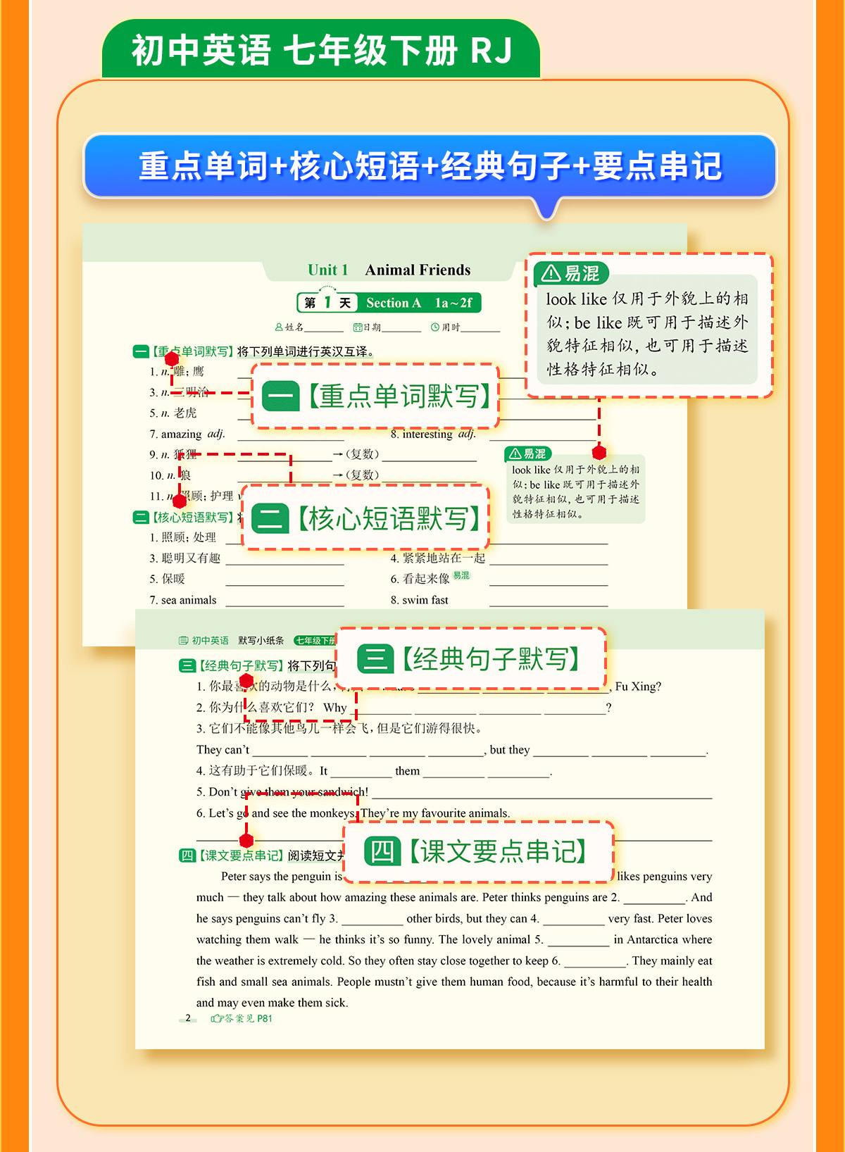 初中默写小纸条语数英同步默写中考物理化学生物历史地理道德与法制同步教材考点默写综合检测智能批改