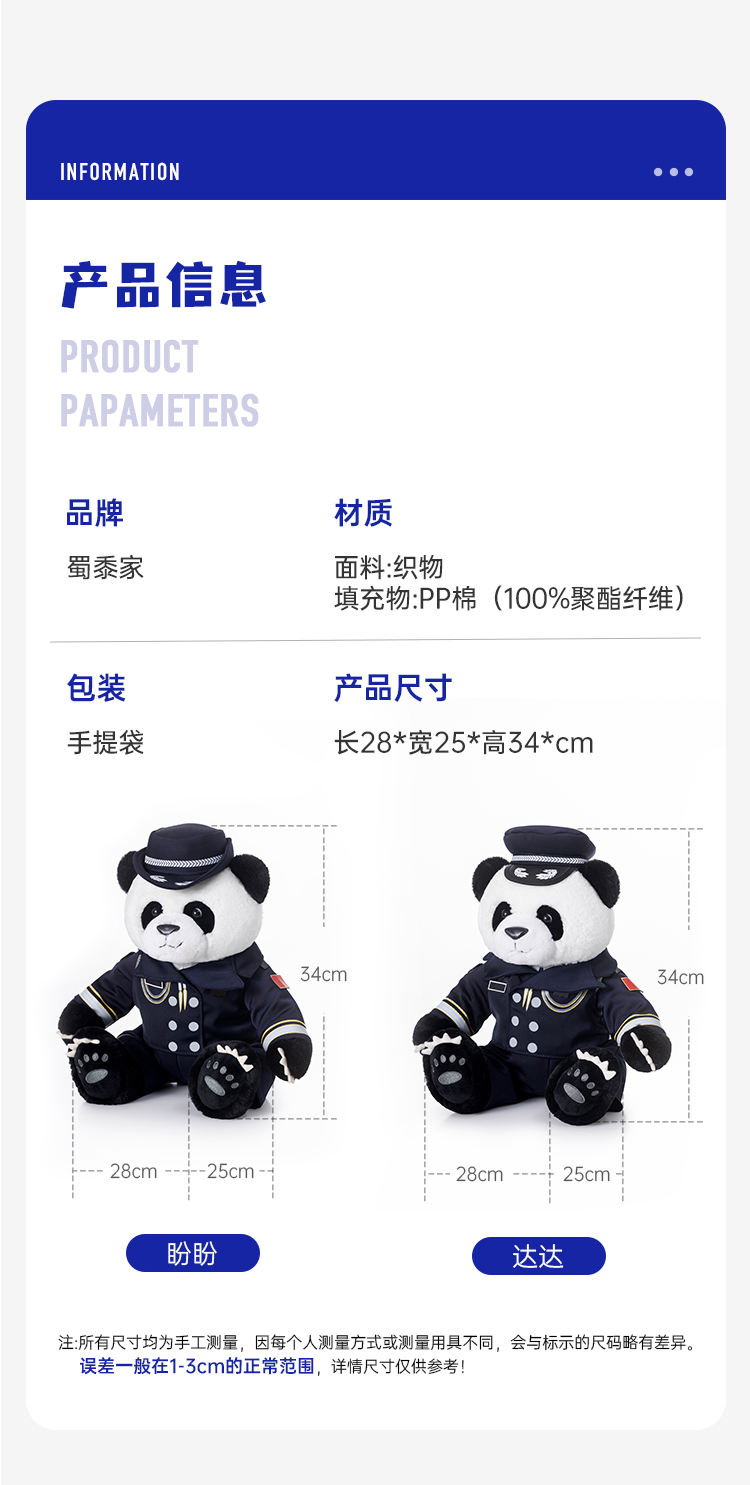 【盼盼达达礼服款】可定制创意熊猫玩偶毛绒玩具儿童公仔送礼礼品礼物