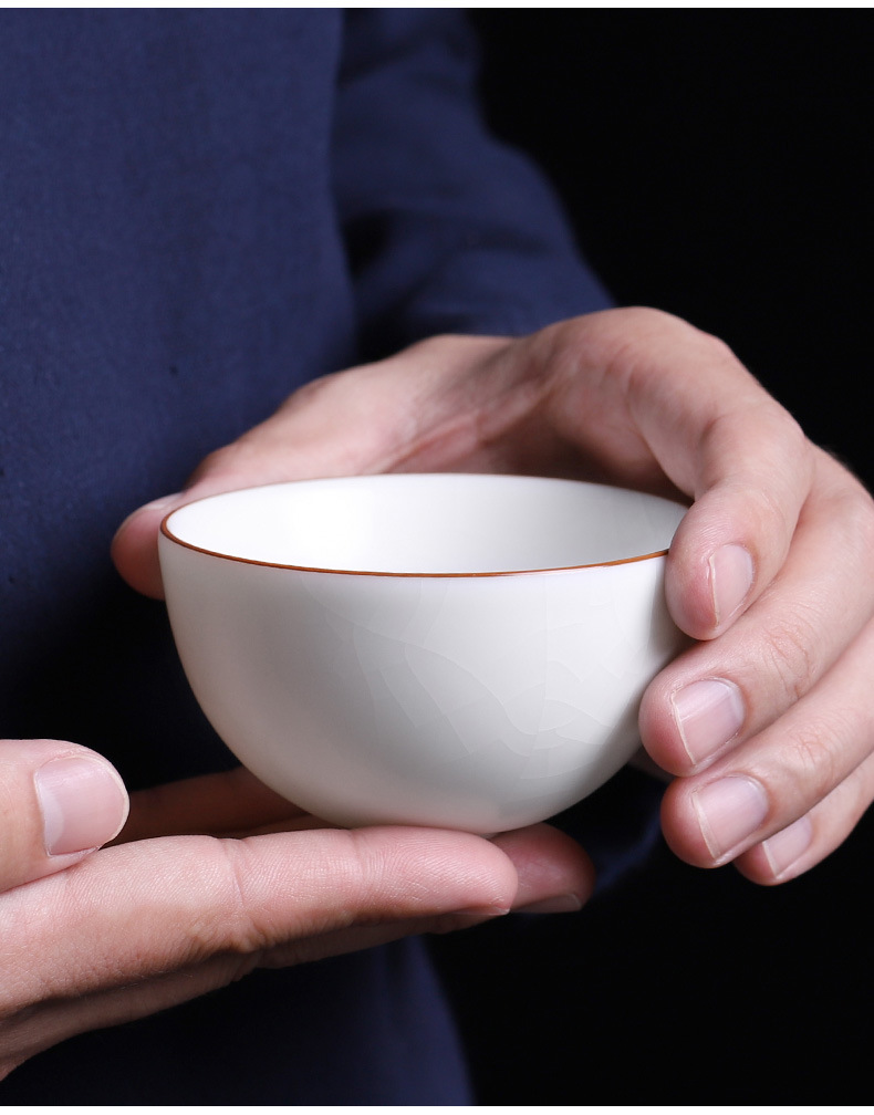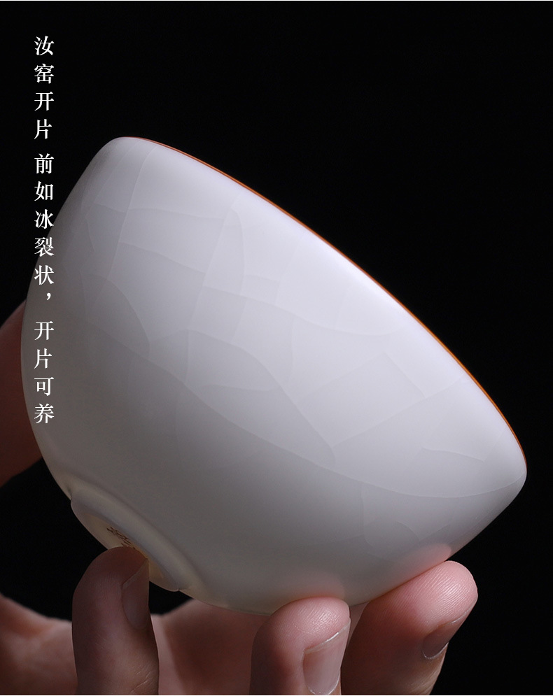 开片汝窑大茶杯可养主人杯大号纯手工冰裂釉陶瓷品茗杯个人单杯白