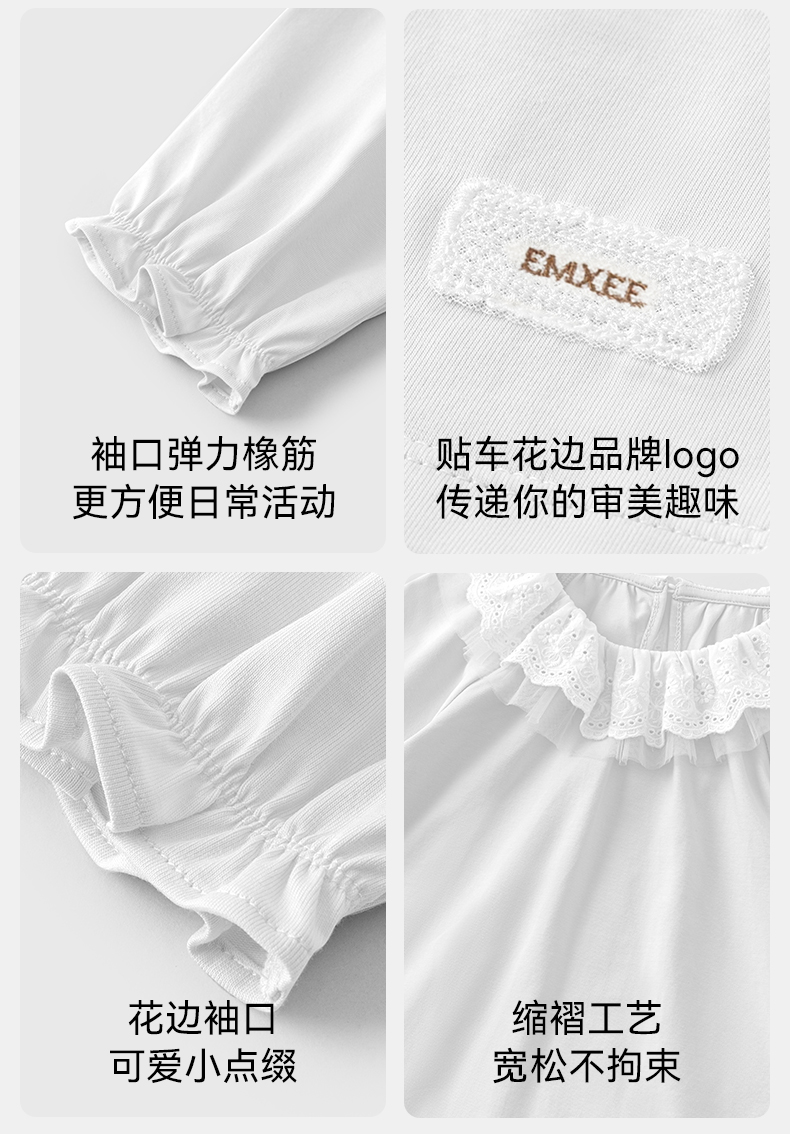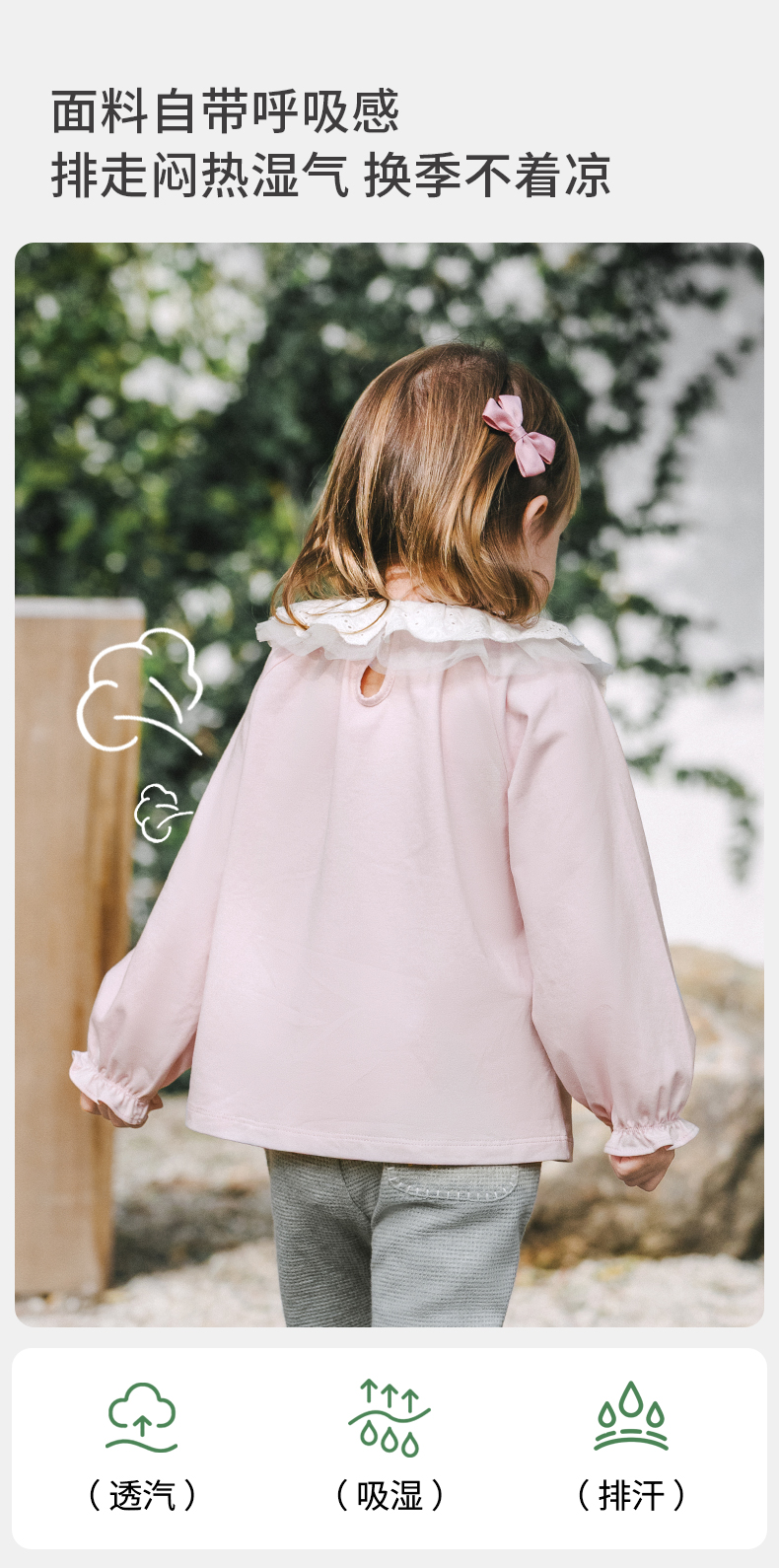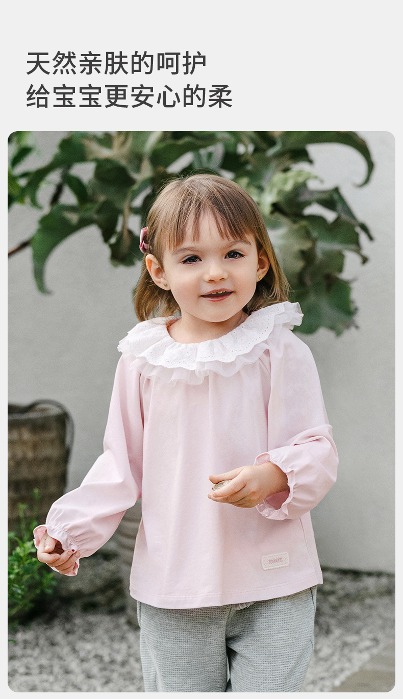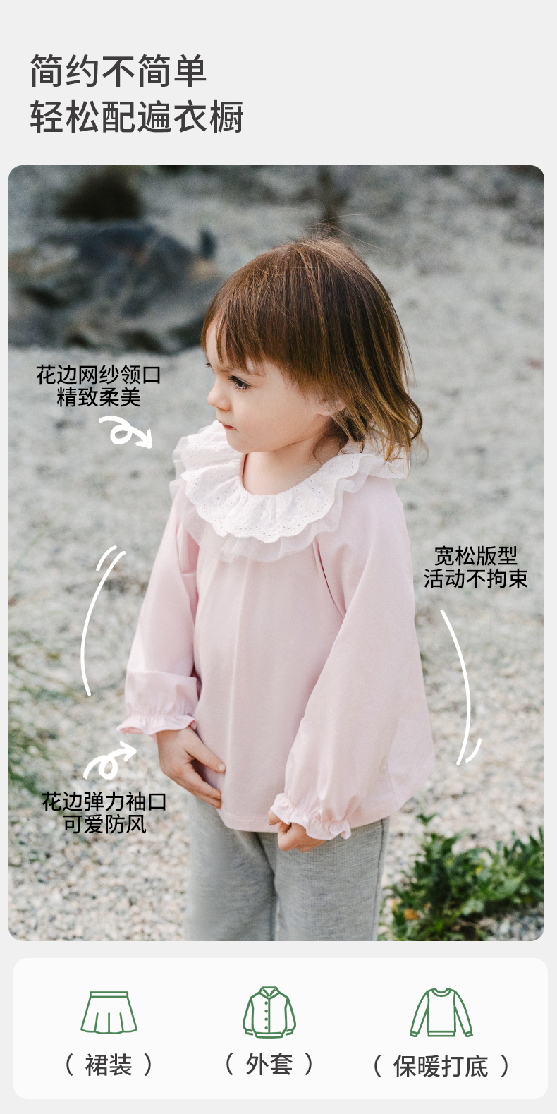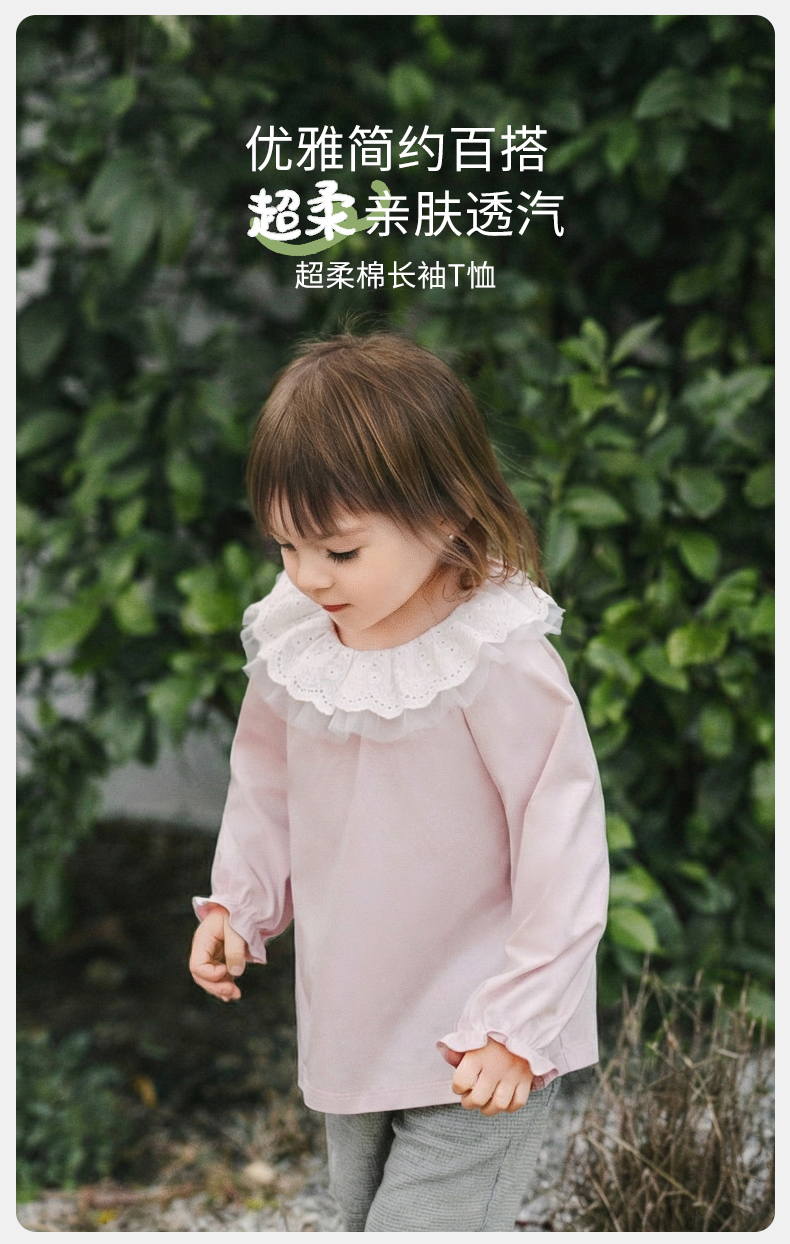 【宝宝服饰】嫚熙童装洋气长袖T恤女宝宝2026新款春季亲肤透气女童花边领上衣